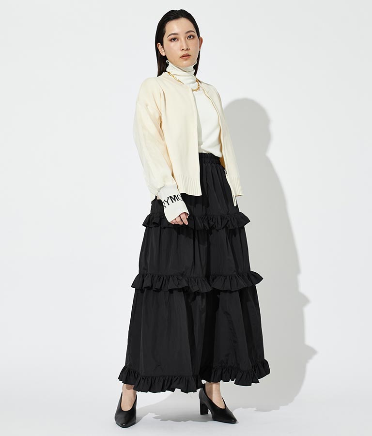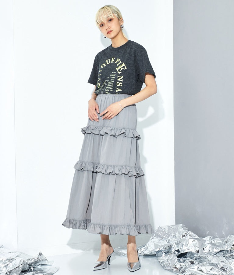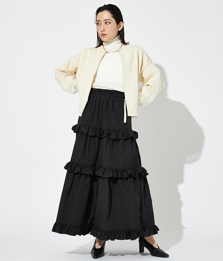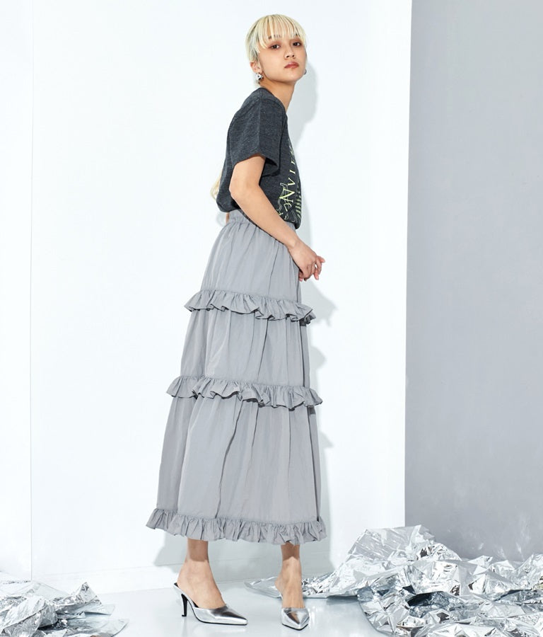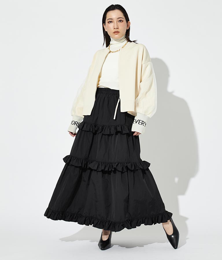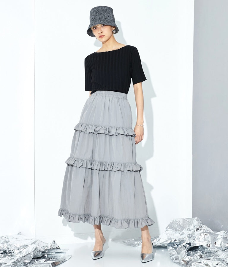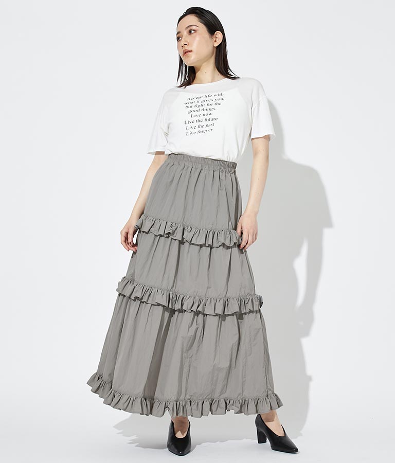 ナイロンタフタ フリル ティアード フレア スカート 361-9404