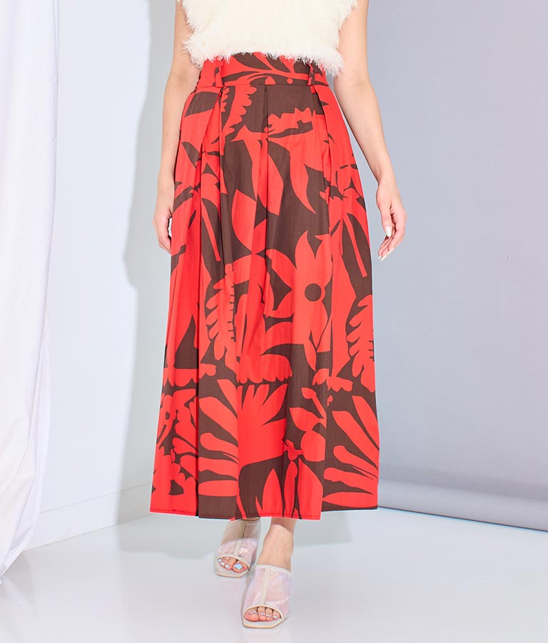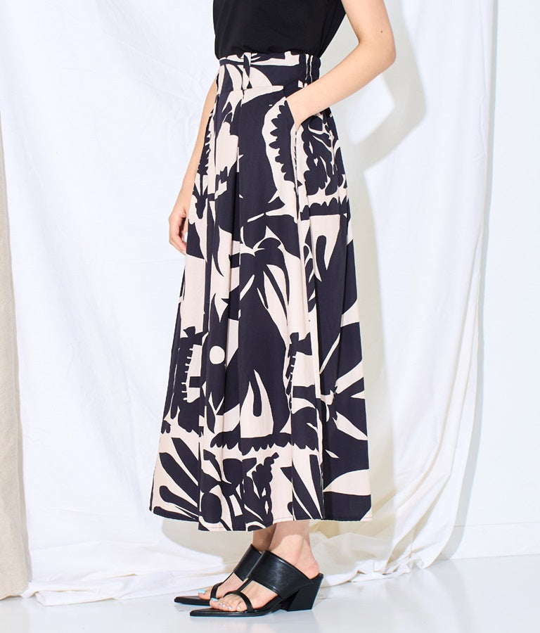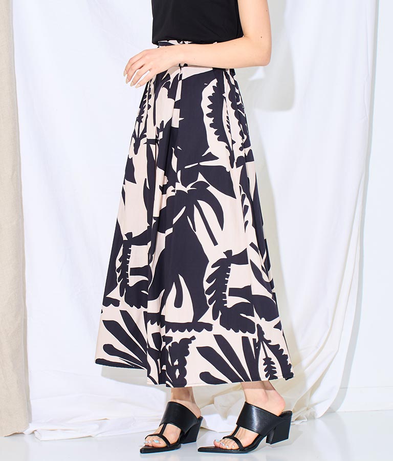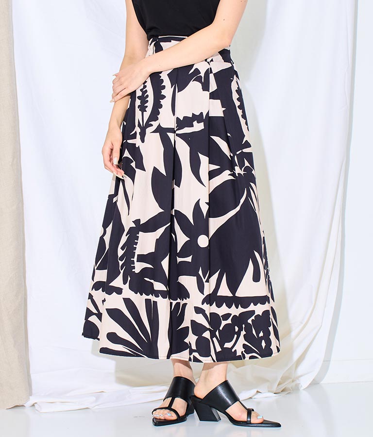 ITALY ボタニカル柄 プリント コットン フレア ロング スカート 391-2911