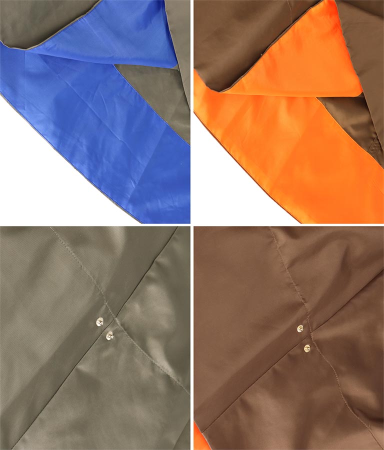 裾部分とポケットの裏地にあしらわれたビビットカラーが全体の雰囲気を引き締めます。