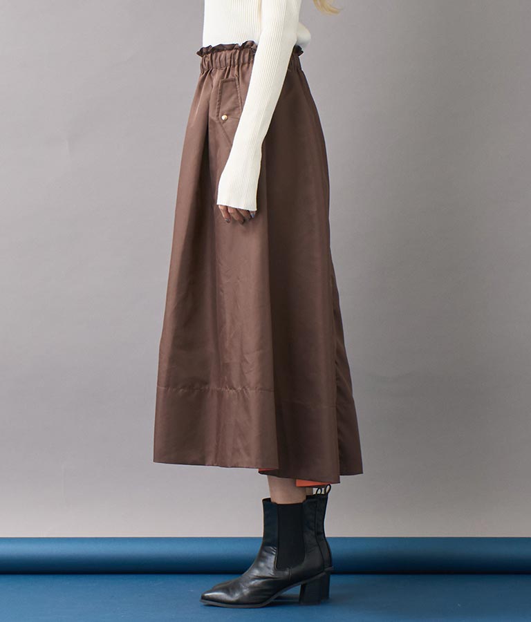 動くたびに覗く裏地の差し色で一味違った表情を楽しめるカーゴスカート。