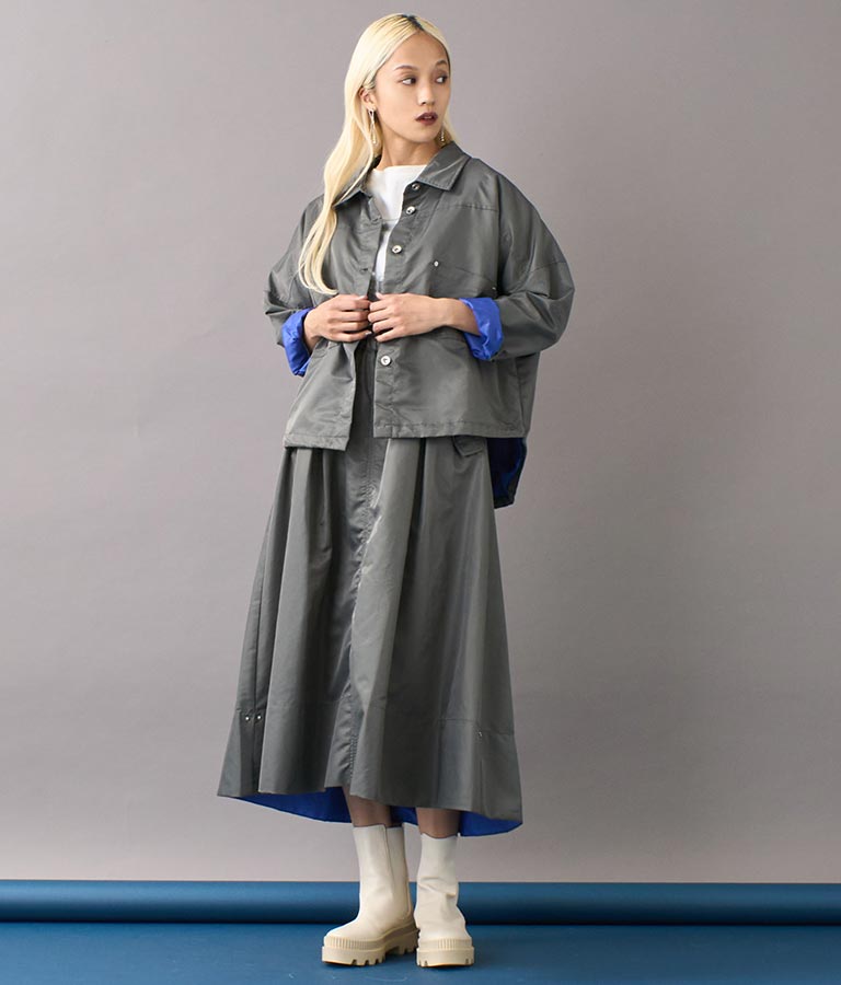 同素材を使用した別売りの【ナイロンワークシャツブルゾン】とセットアップでの着用も可能です。
