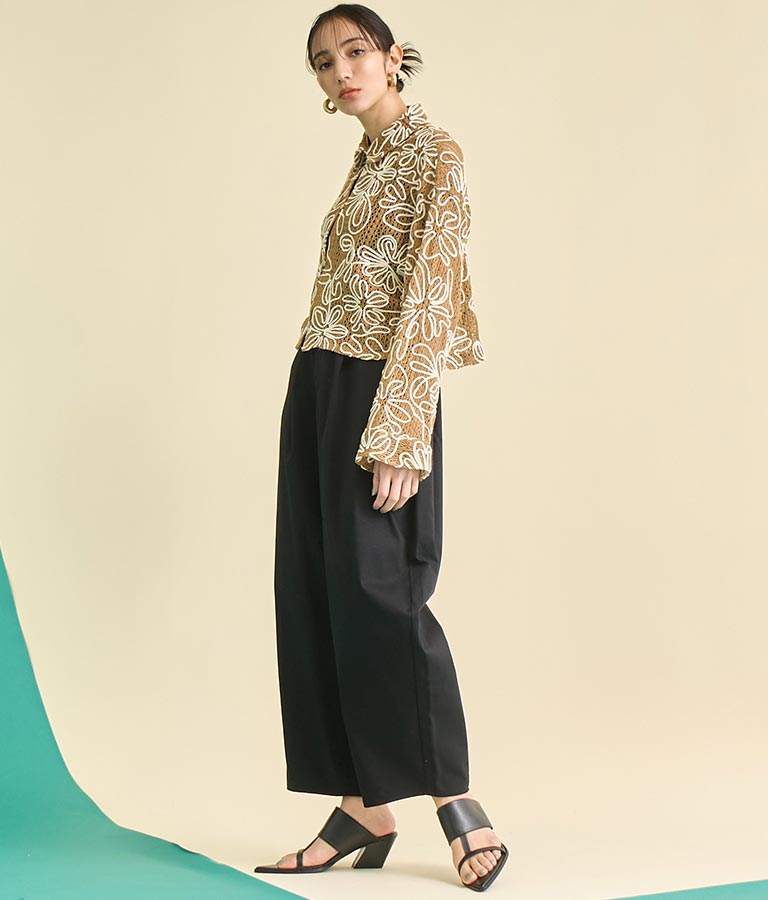 サイドに施されたタックが立体的なシルエットと絶妙なラインを描き、脚を綺麗に魅せてくれます。