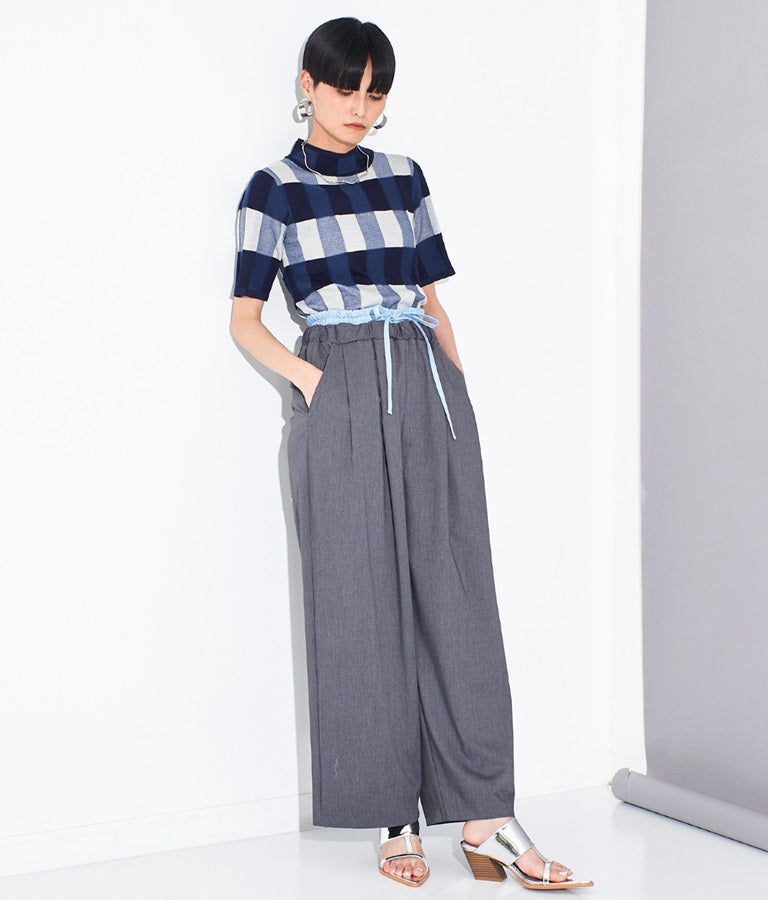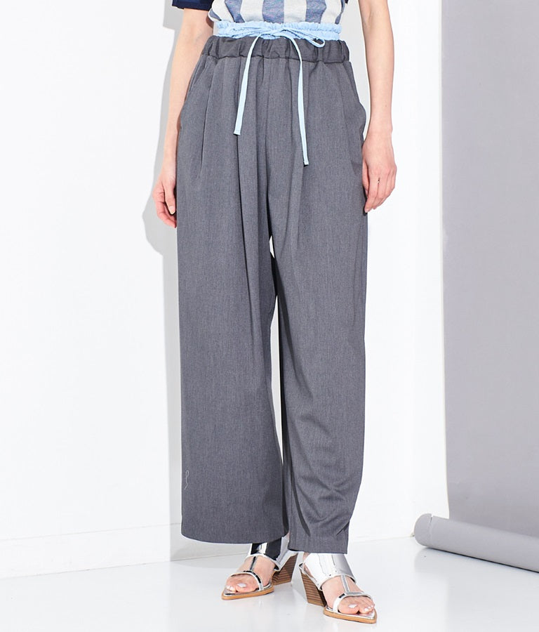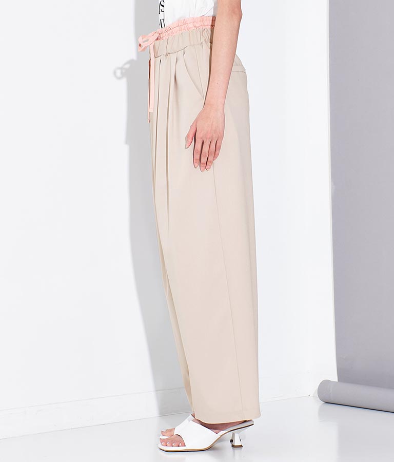 1枚でレイヤードスタイルを楽しめるダブルウエストパンツ。