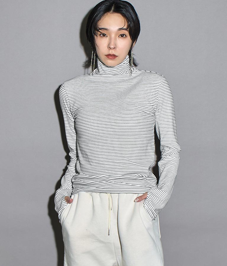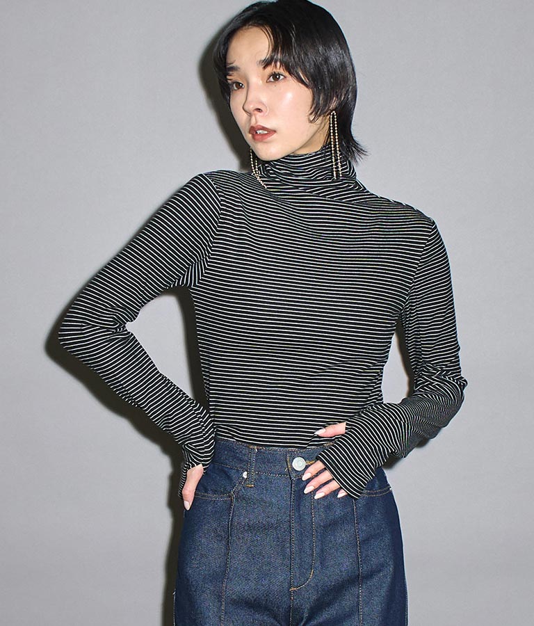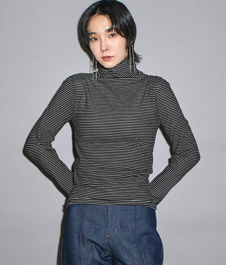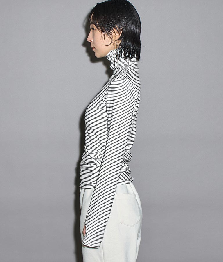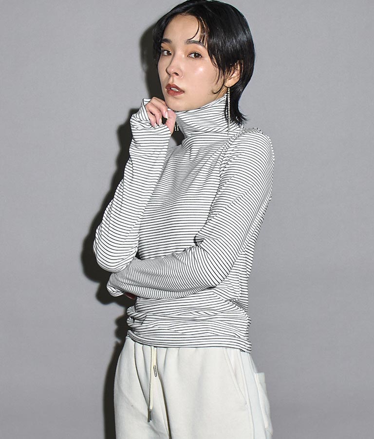 タートルネックは折り返したりそのままくしゃっとさせたり、お好みのアレンジで着用いただけます。