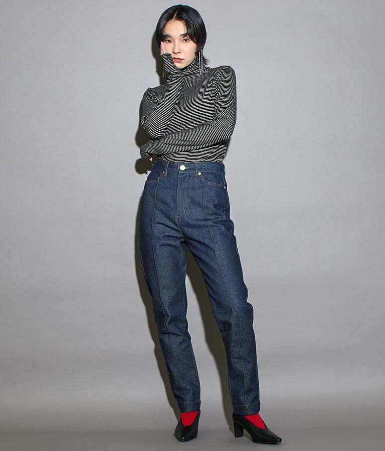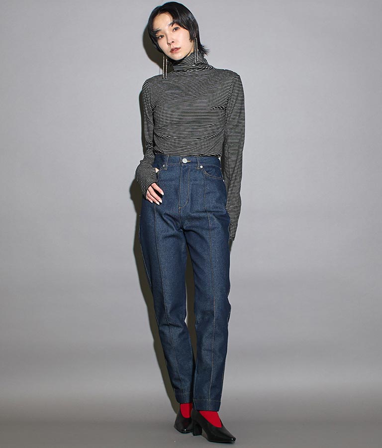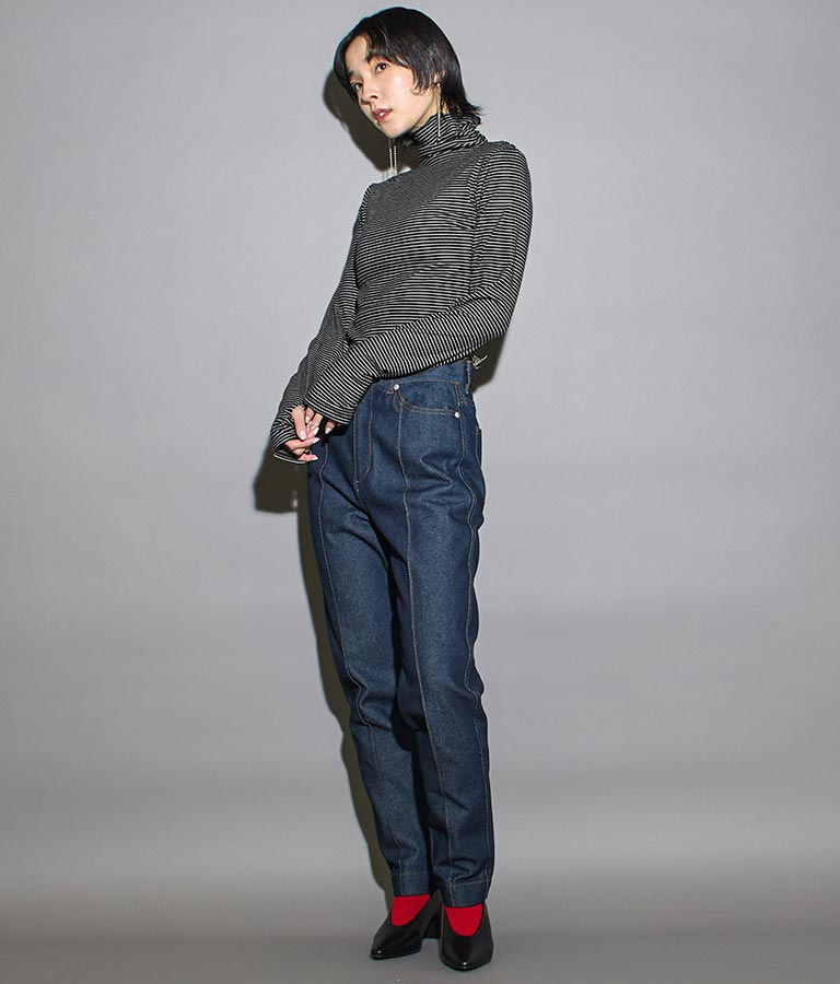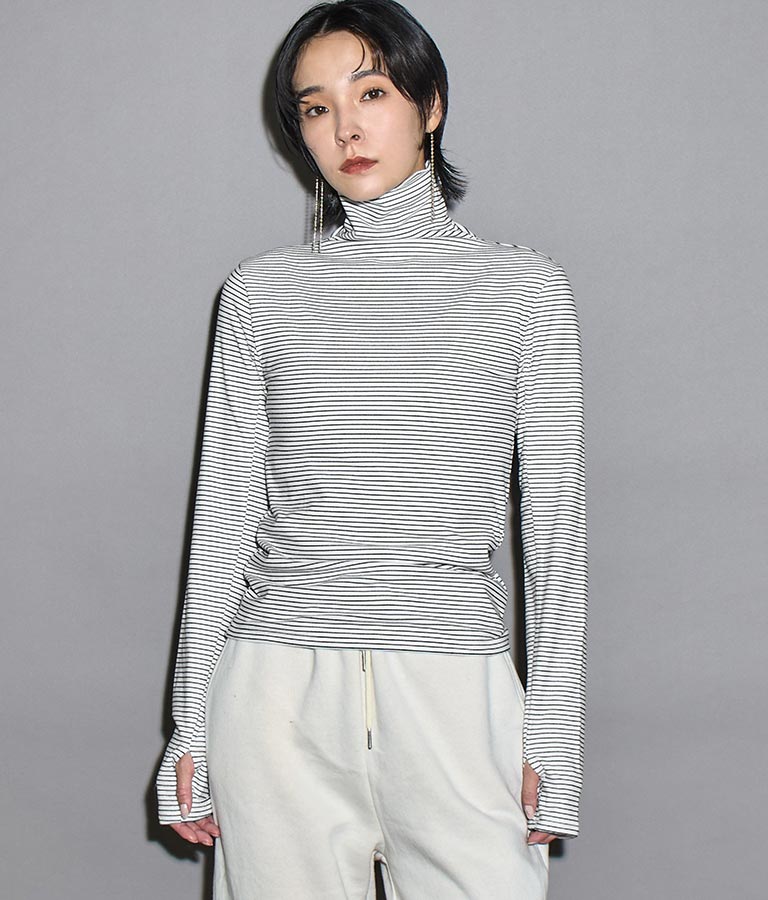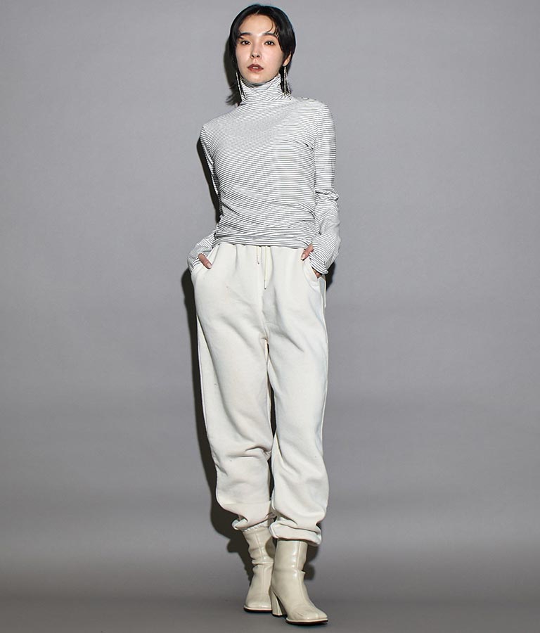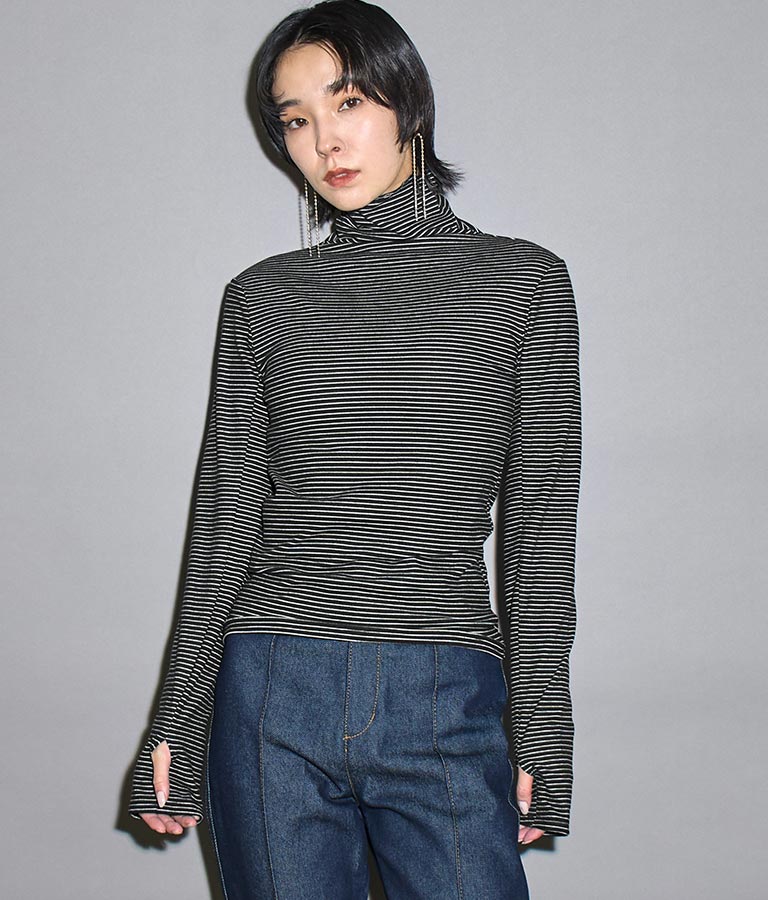 タートルネックは折り返したりそのままくしゃっとさせたり、お好みのアレンジで着用いただけます。