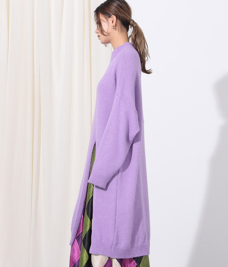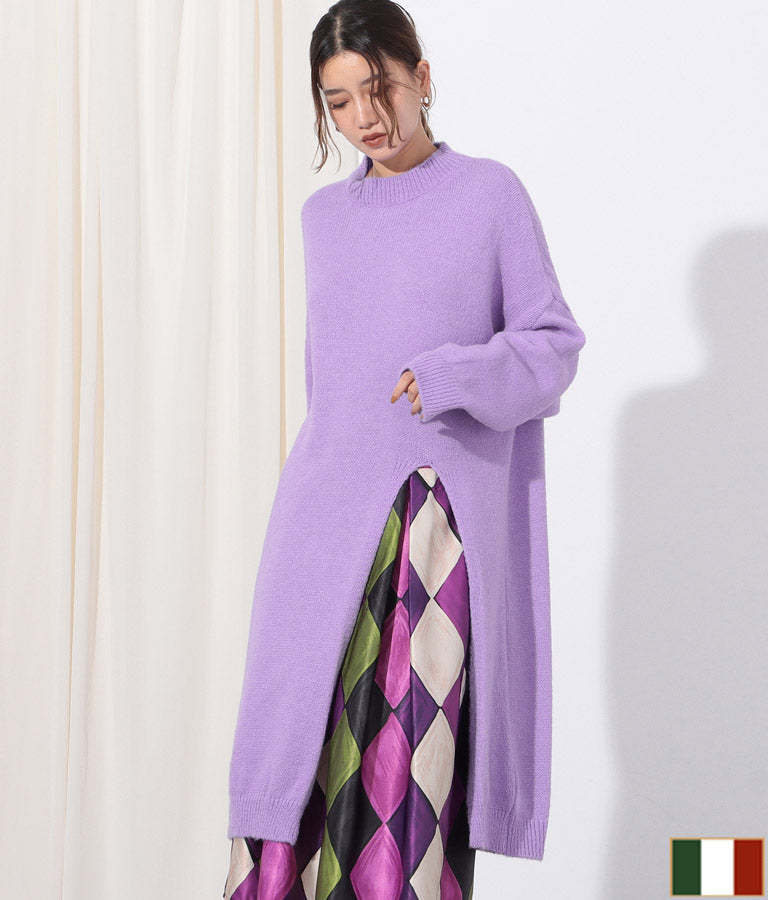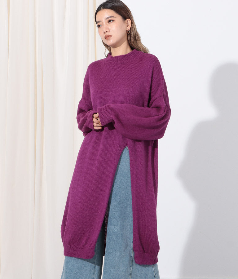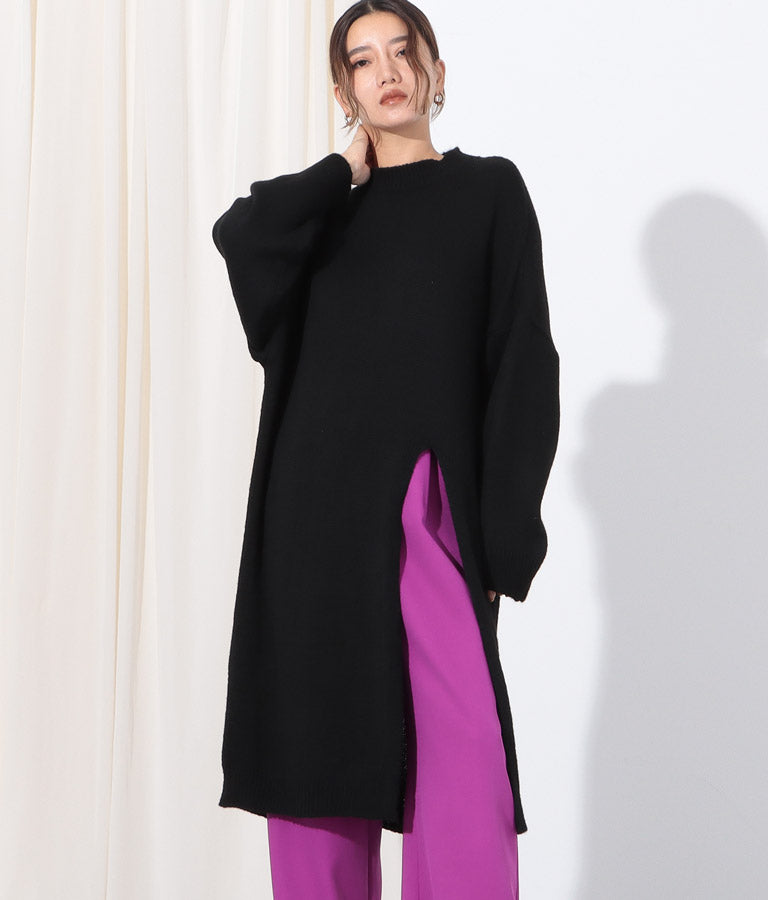 サイドスリットがアクセントを効かせたロングニットトップス。
