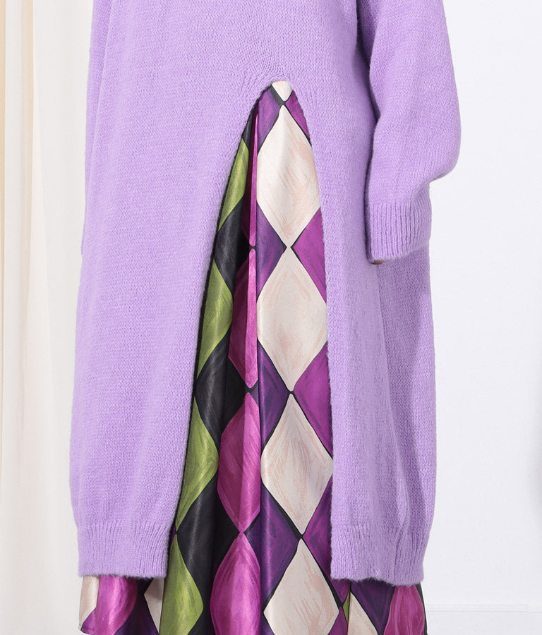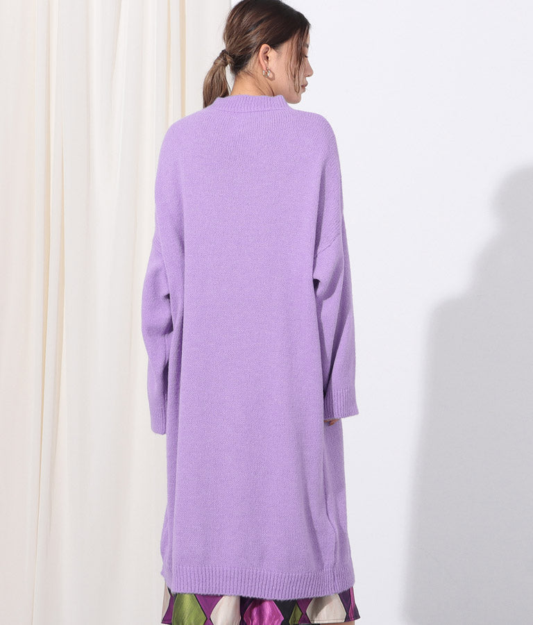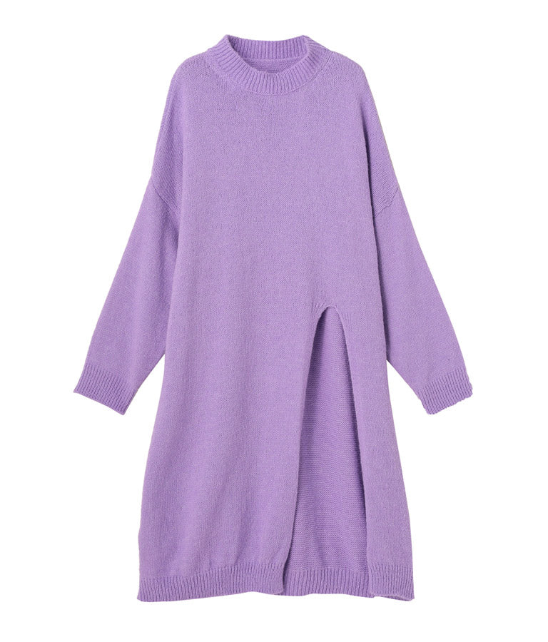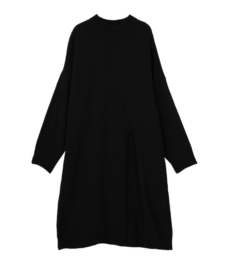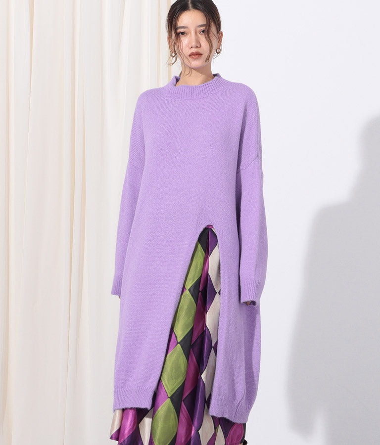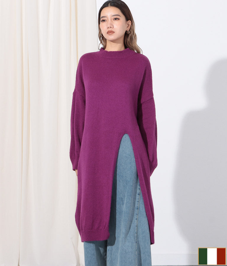 ウール混フロント片側スリットデザインロングニットトップス 393-2791