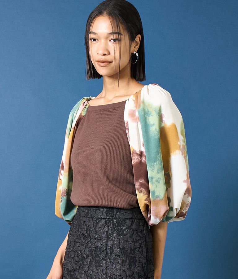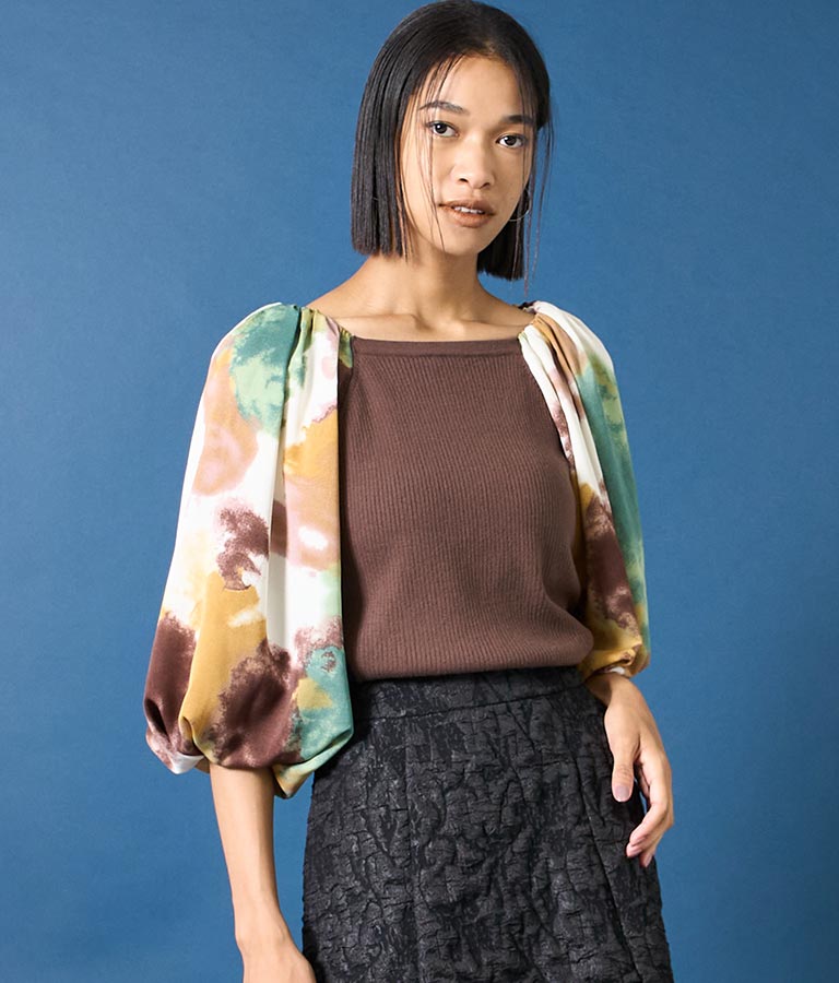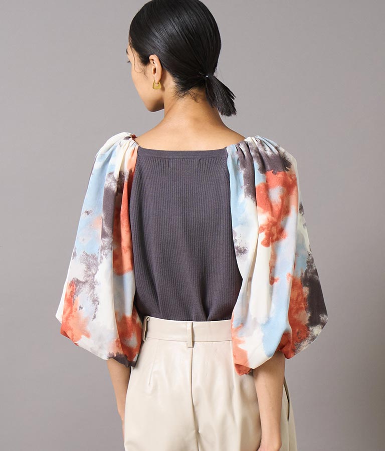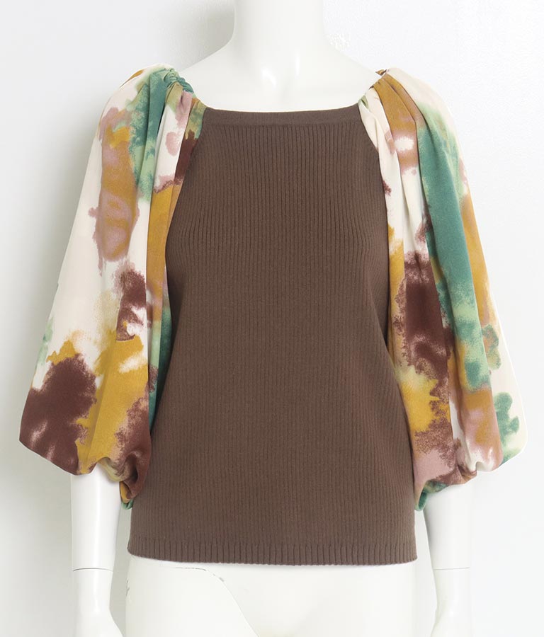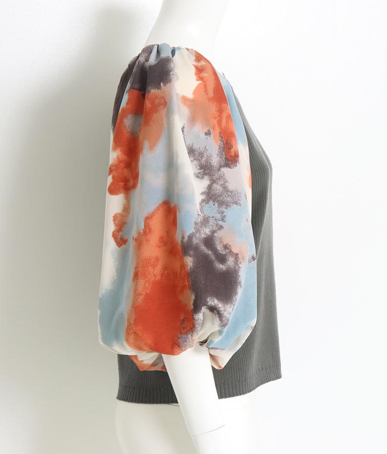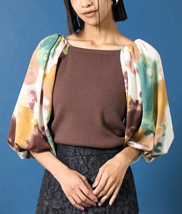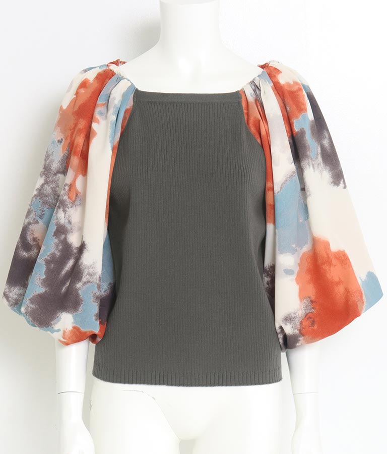 バルーン スリーブ 異素材 ドッキング ニット プルオーバー トップス 363-9483