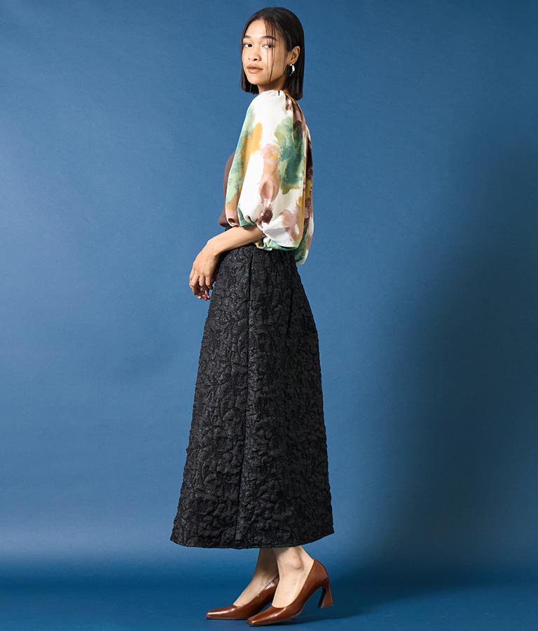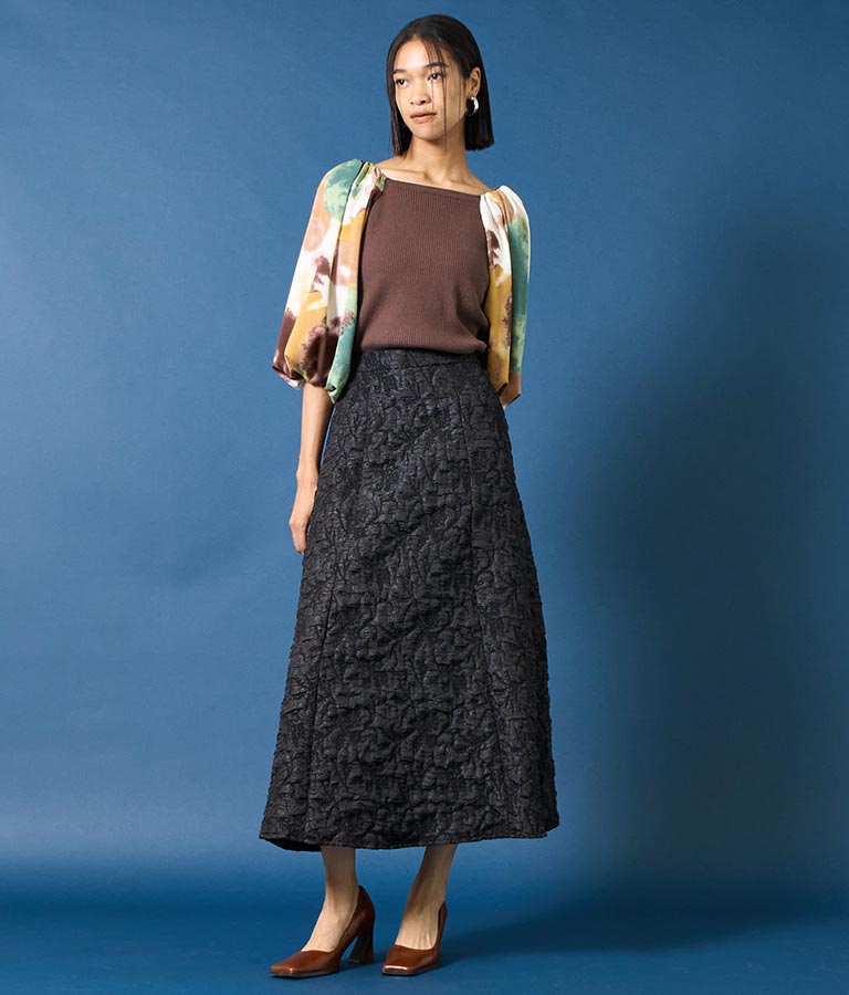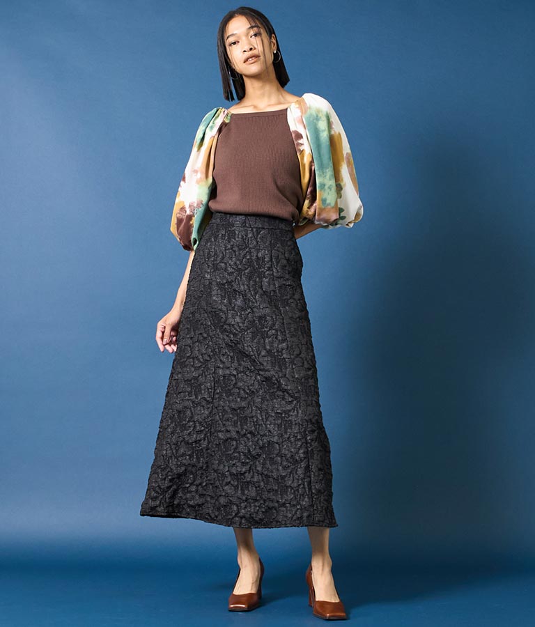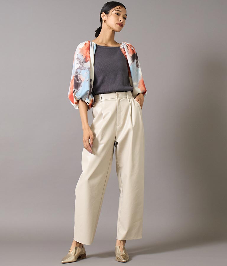 ふんわりとした肩口のデザインが女性らしさを引き立て、二の腕をしっかりカバーしてくれるボリュームスリーブは華奢見え効果も◎