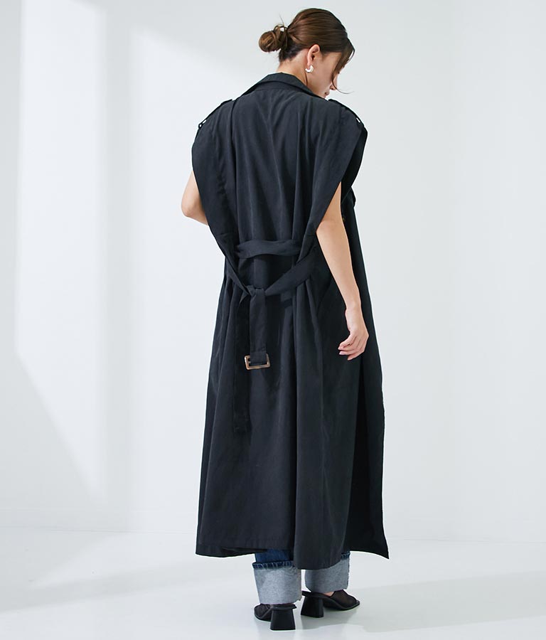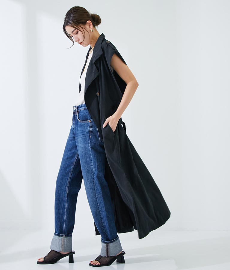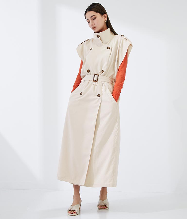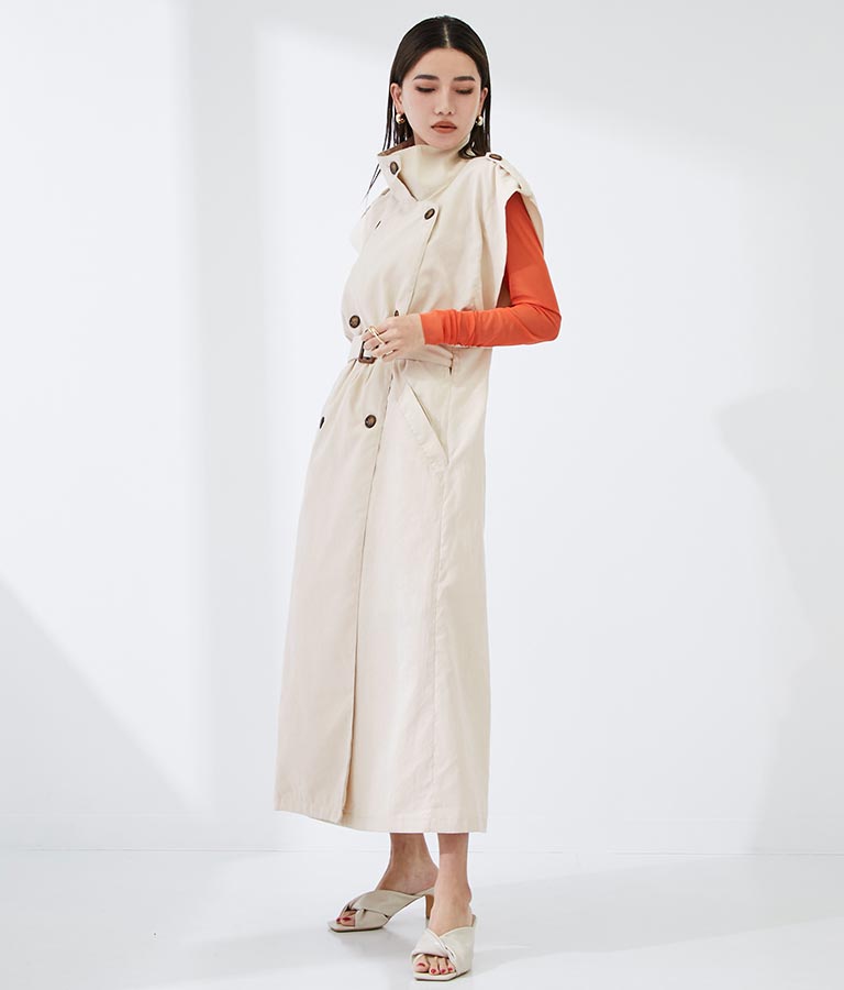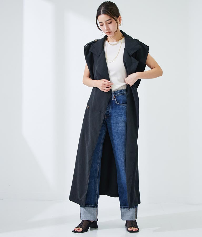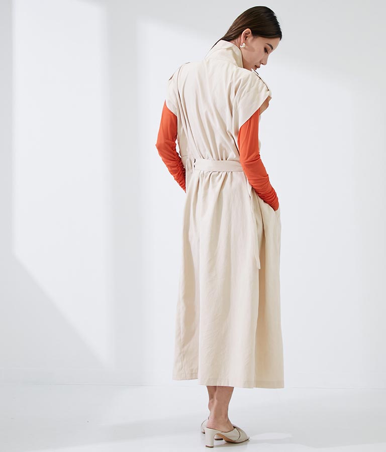 雰囲気のあるロング丈も、スリーブレスにすることで重たさを回避。