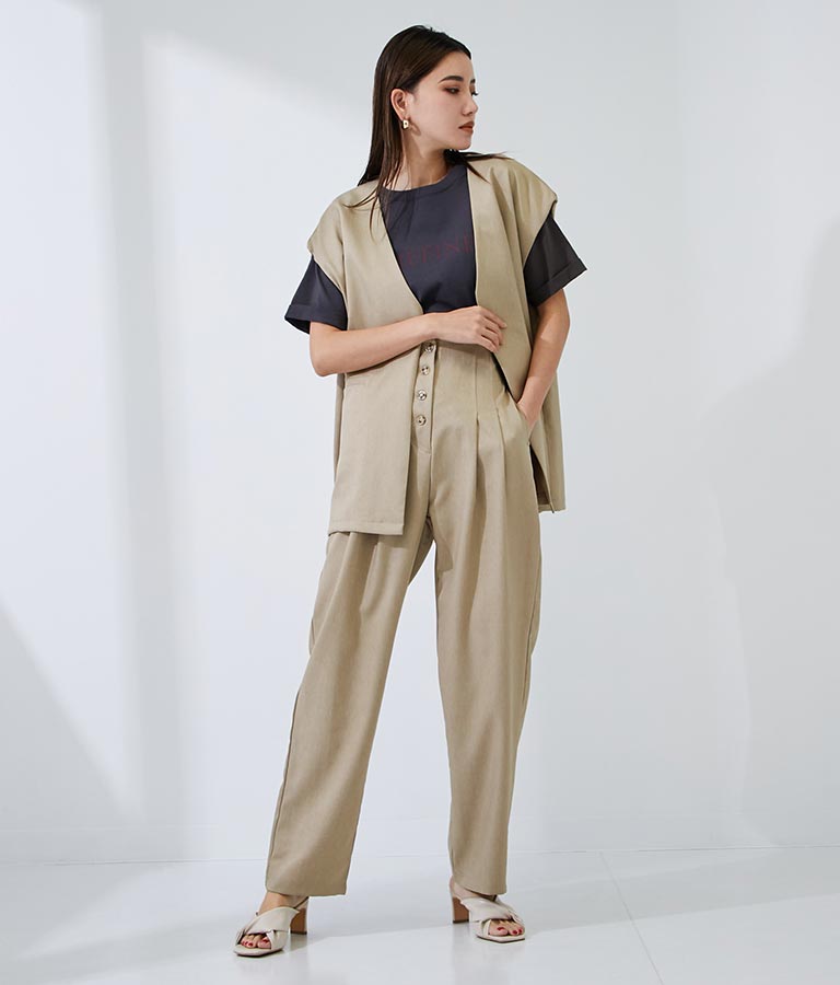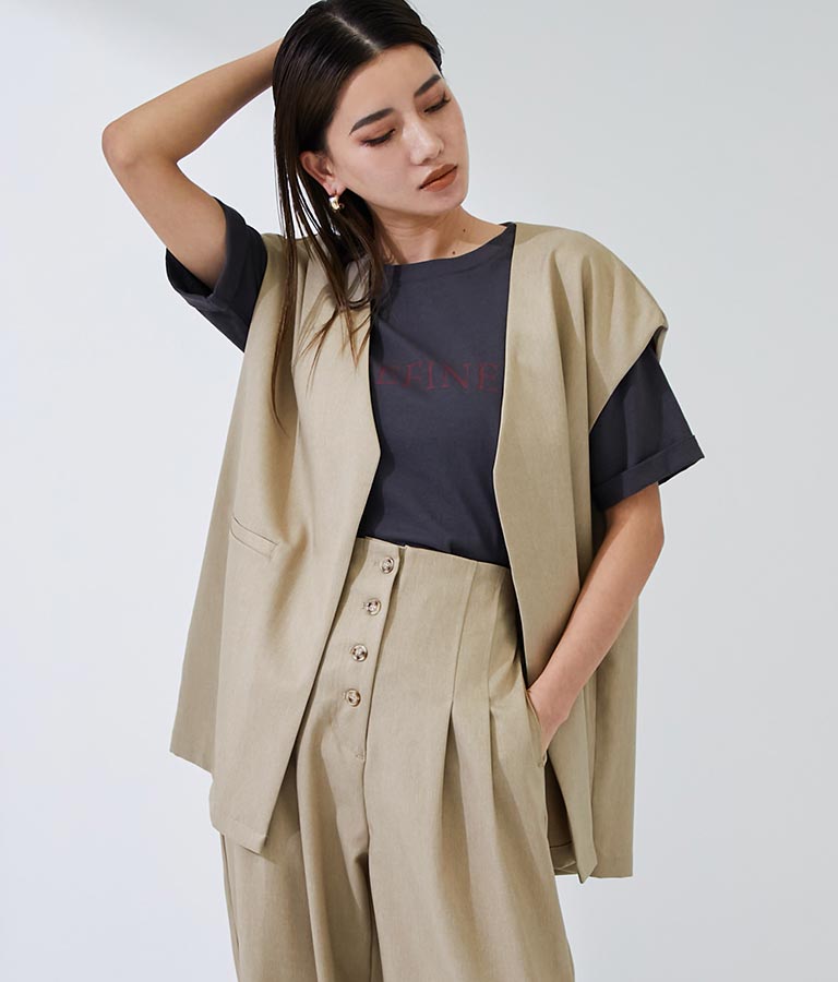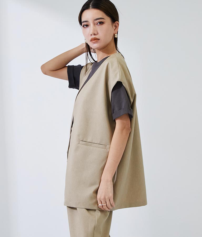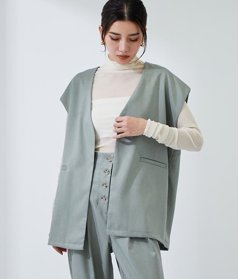 メンズライクな雰囲気を醸すオーバーサイズのジレ。