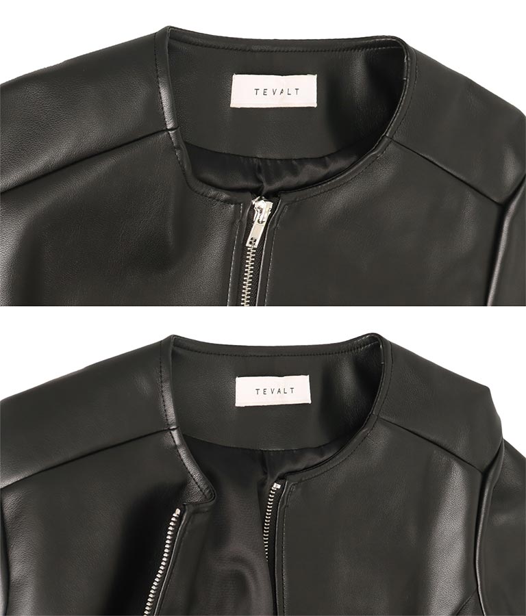エコファー ペプラム レザーライク ジャケット 365-9506
