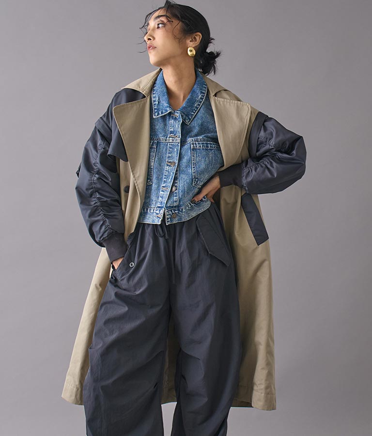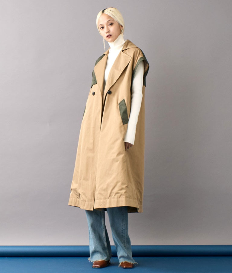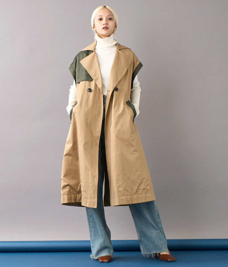 袖の取り外しが可能な2WAYデザインのトレンチコート。