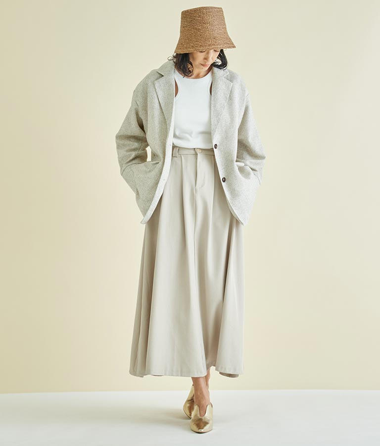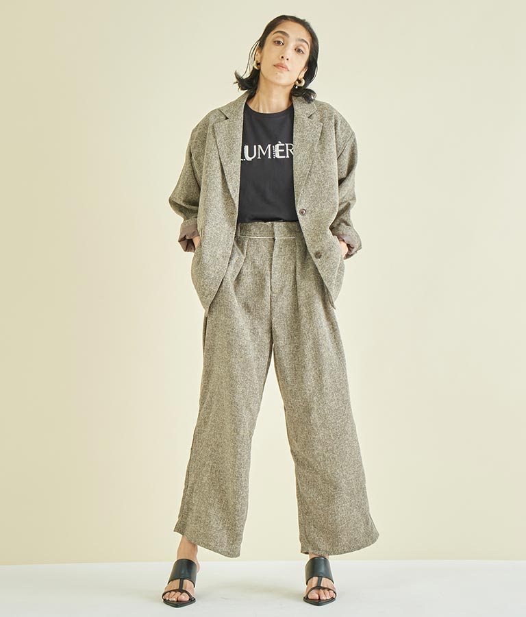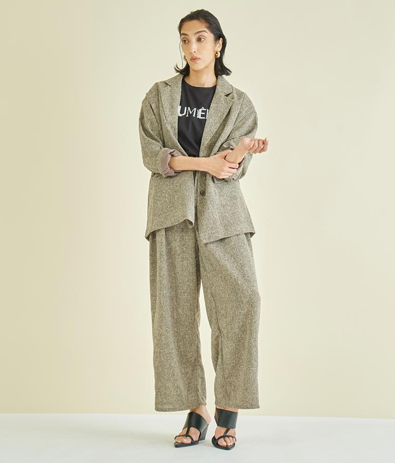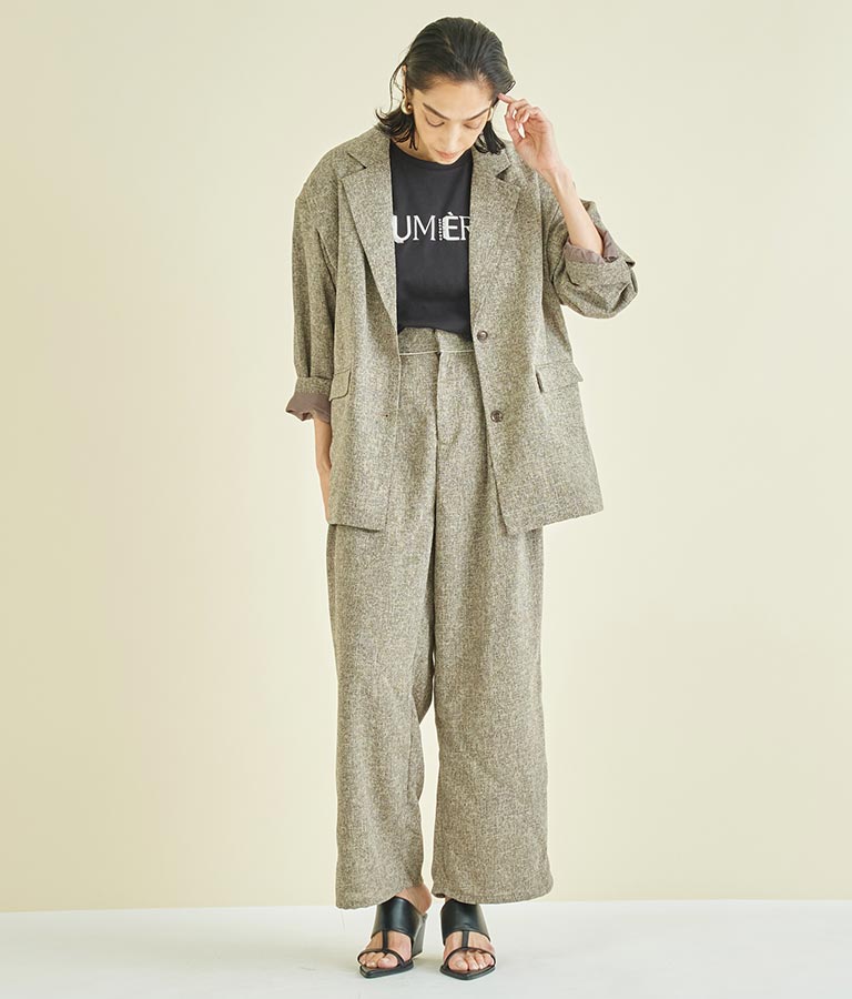 同素材を使用した【サマーツィ-ド ウエストタック ワイドパンツ】とのセットアップでの着用も可能!