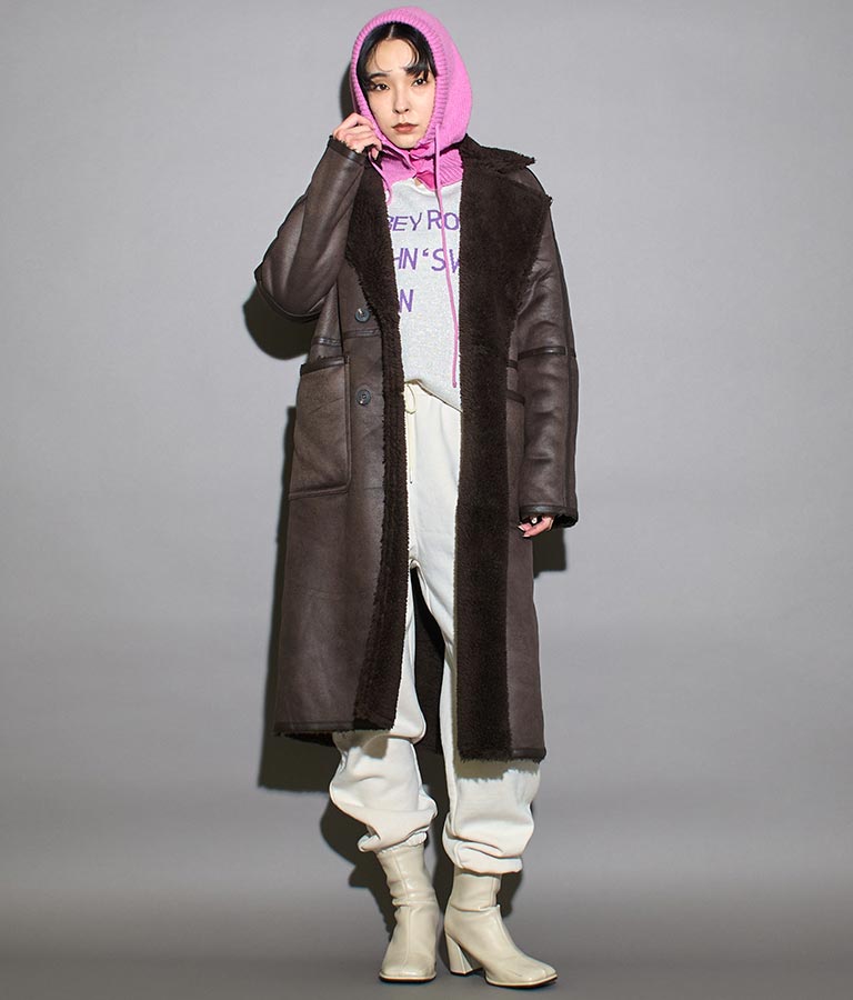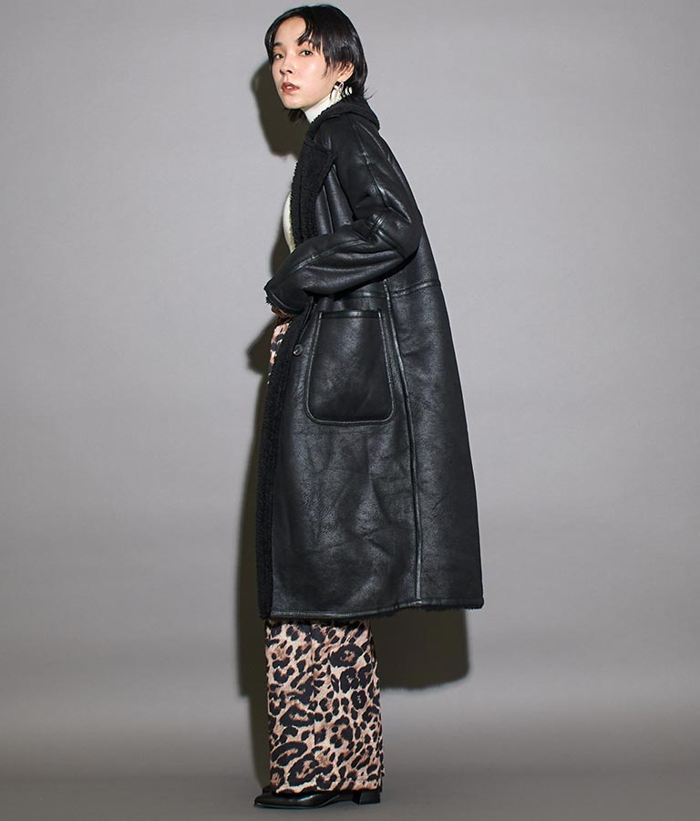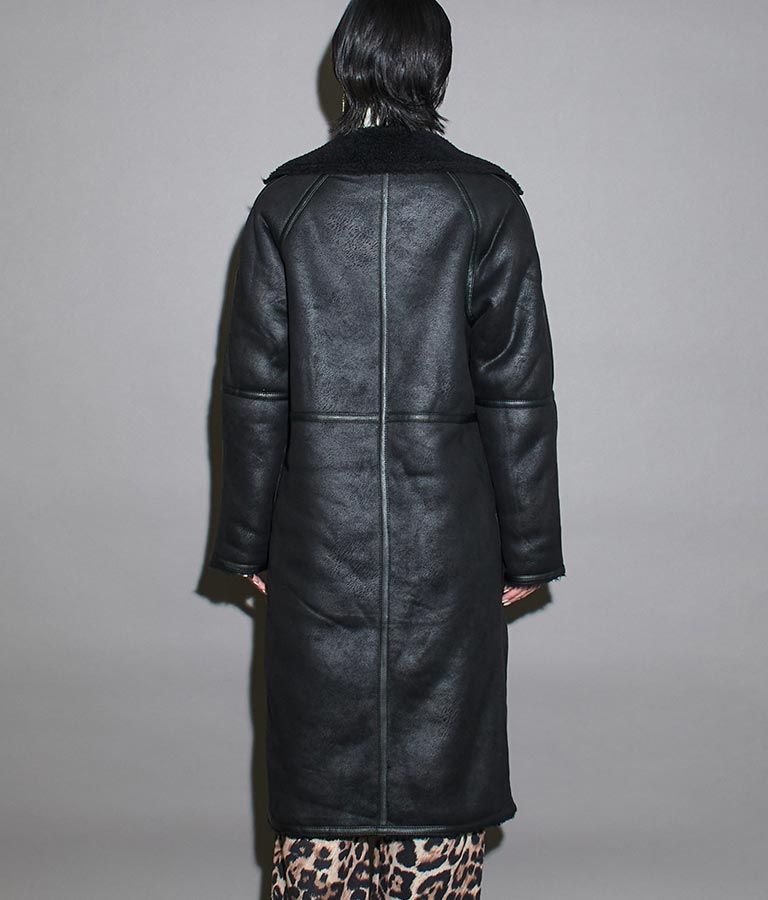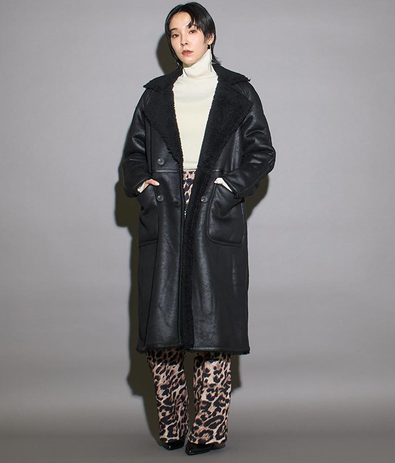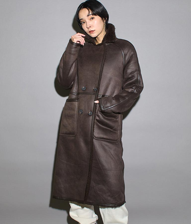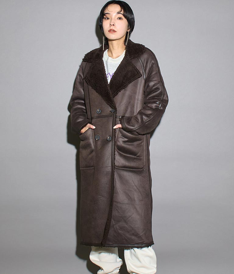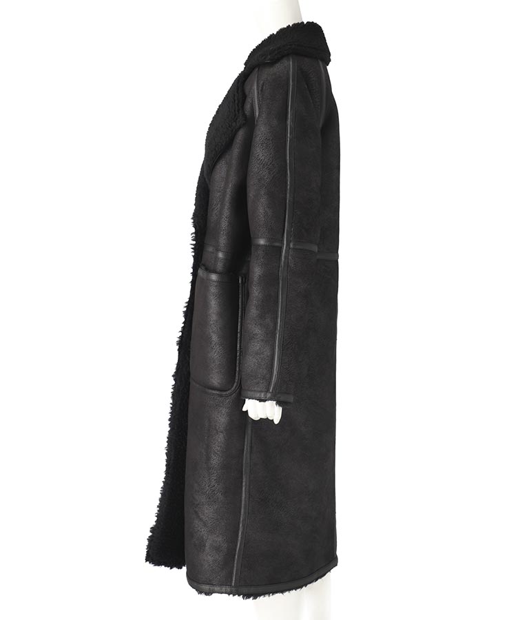 柔らかく暖かいムートン風の生地が防寒効果抜群のロングコート。