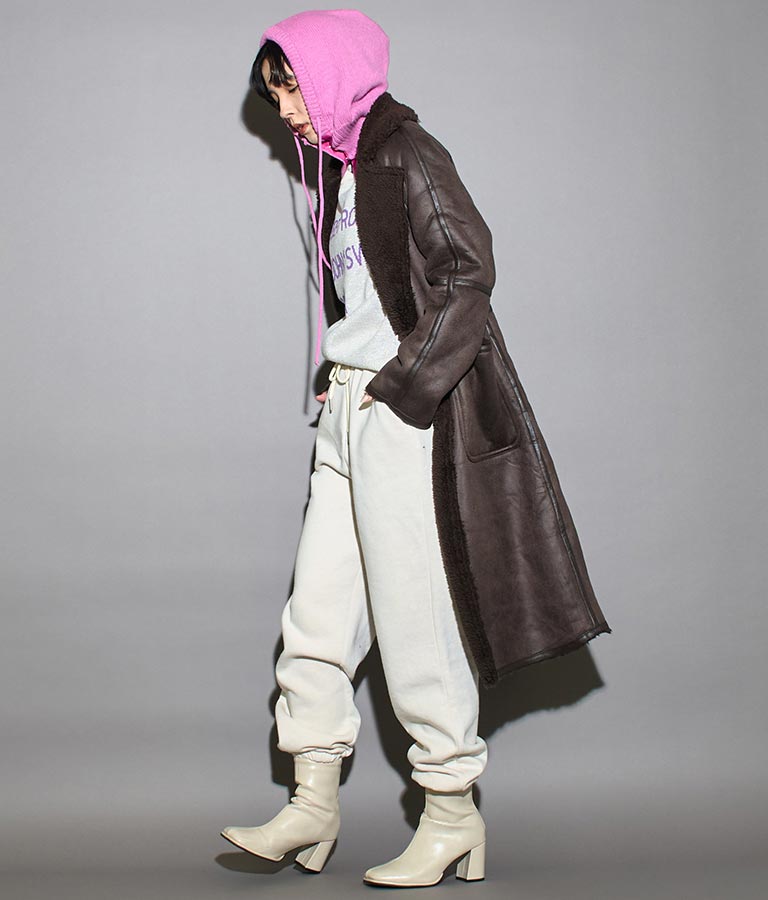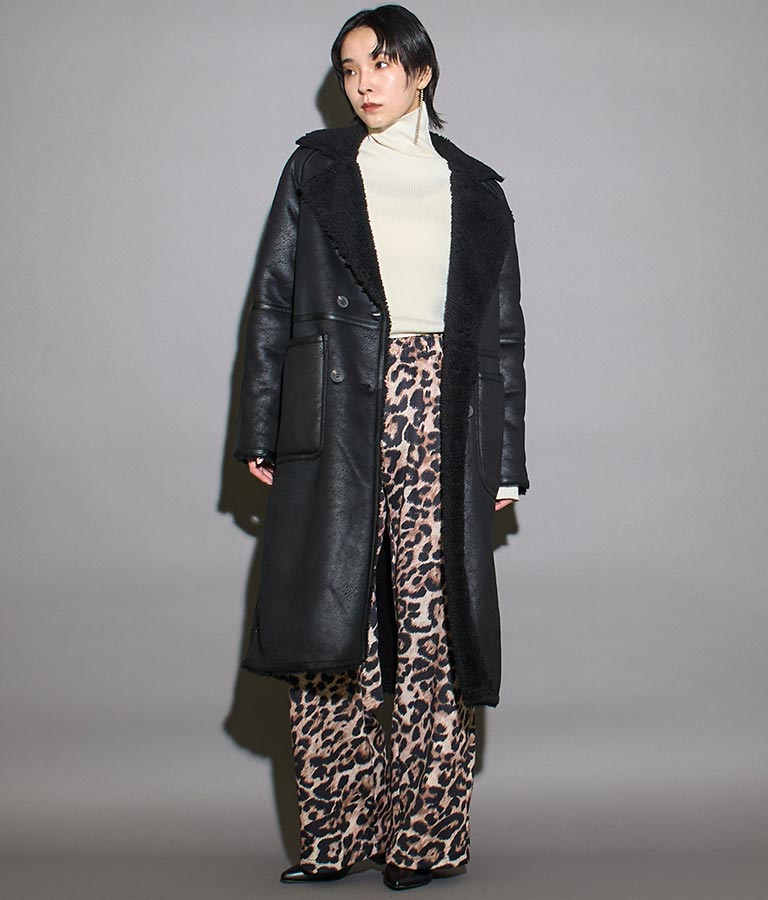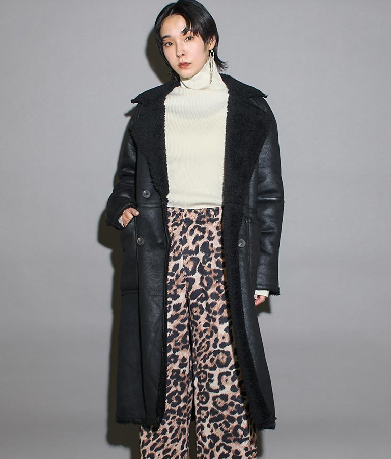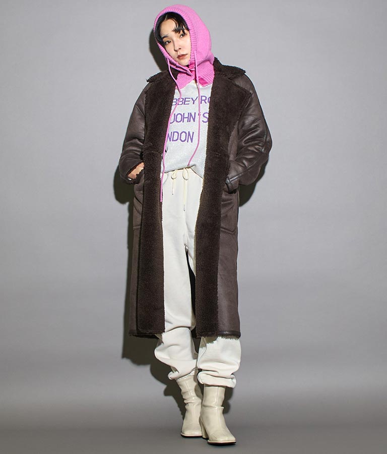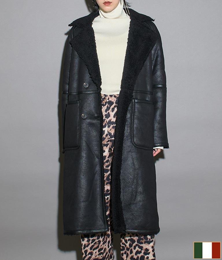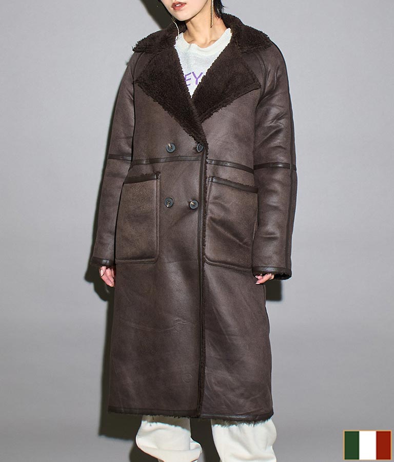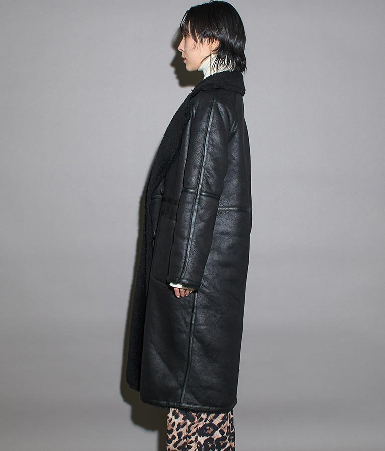 柔らかく暖かいムートン風の生地が防寒効果抜群のロングコート。