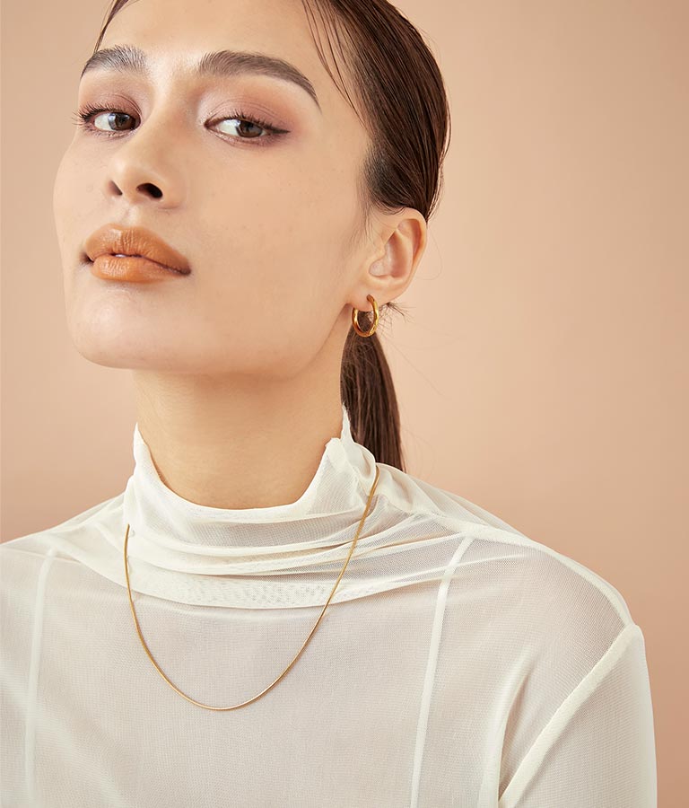 服を邪魔しない使いやすいデザインで、様々なテイストのコーディネートに合わせてお召しいただけます。