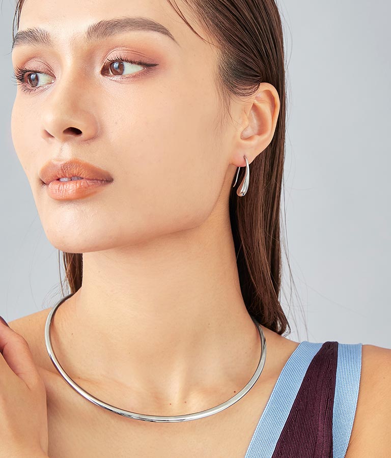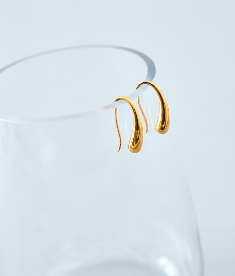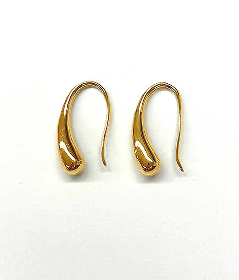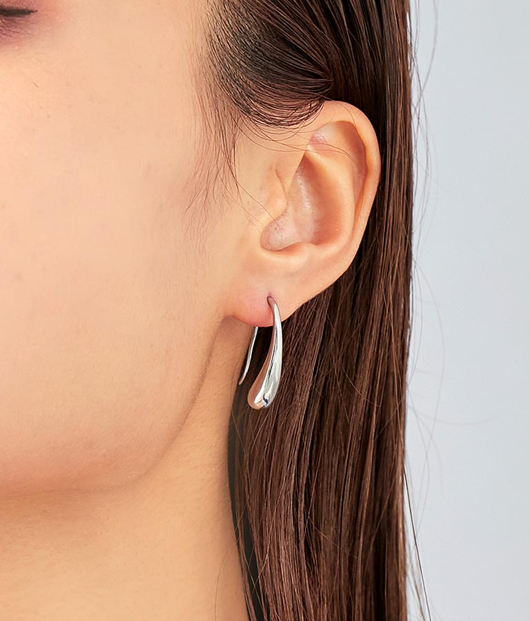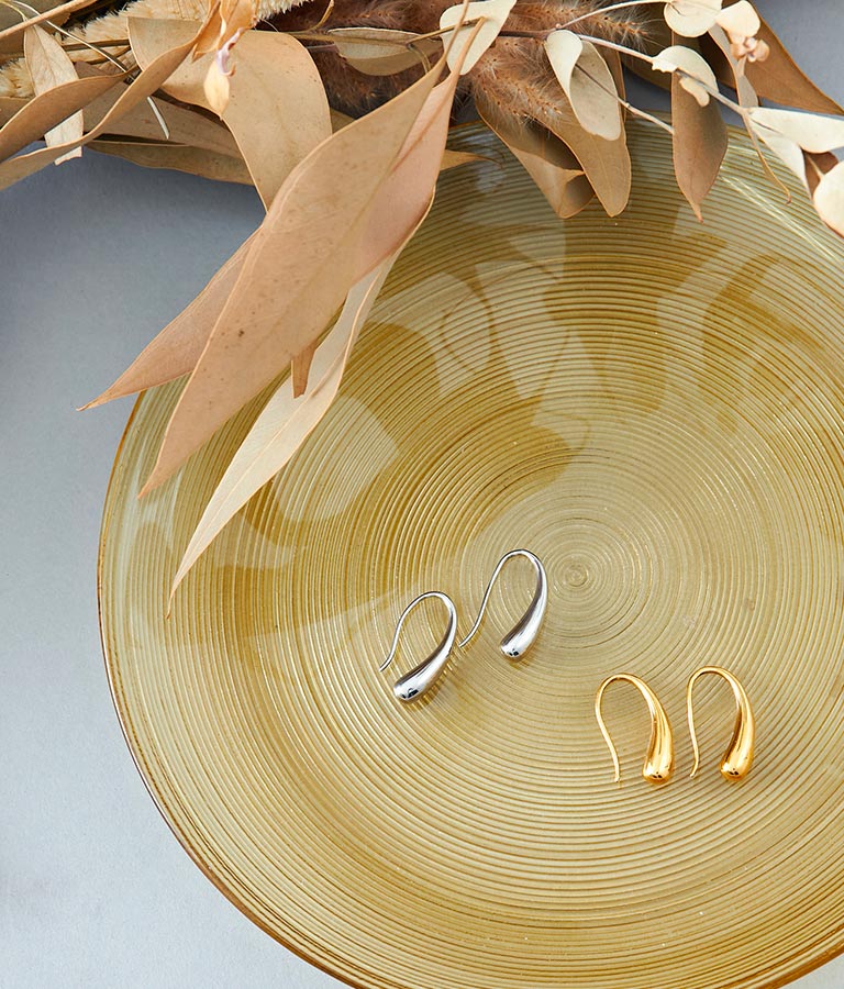 雫が滴るような細長い美しいシルエットのモチーフがポイントのピアス。