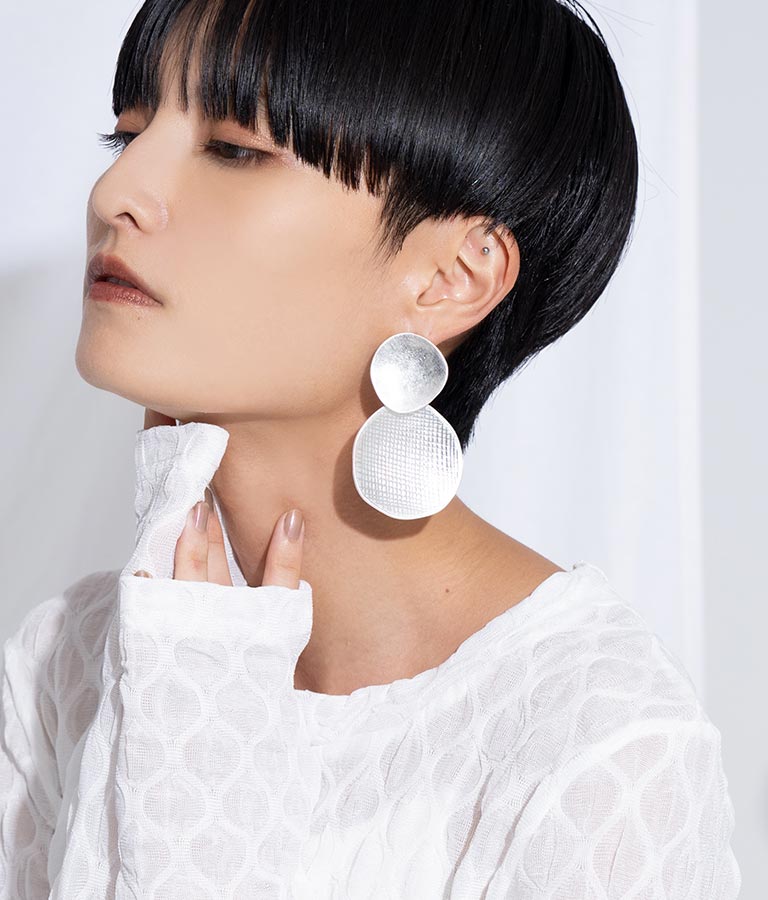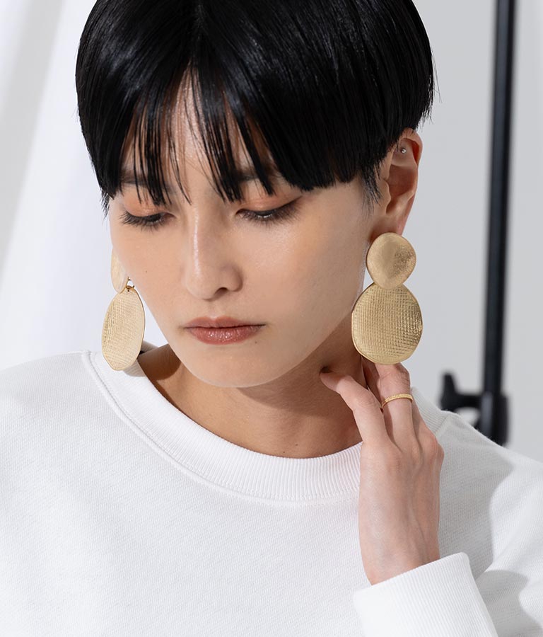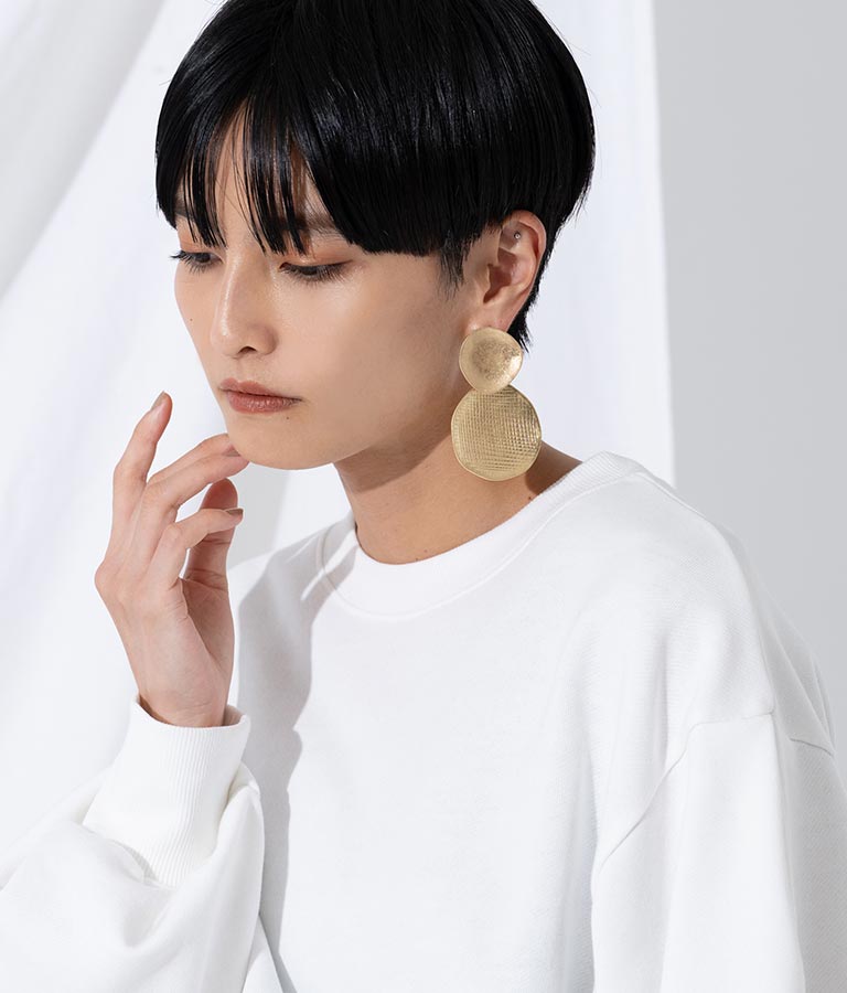 大ぶりの連なったサークルデザインは顔周りで上品に揺れ、軽やかな雰囲気を醸しだすだけでなく、小顔効果も期待できます。