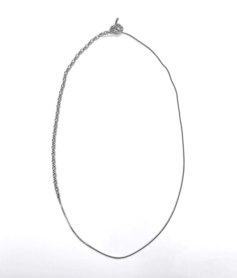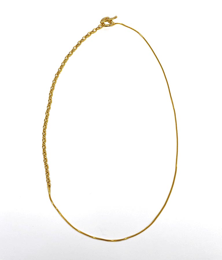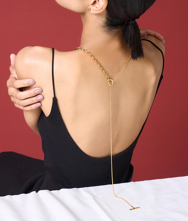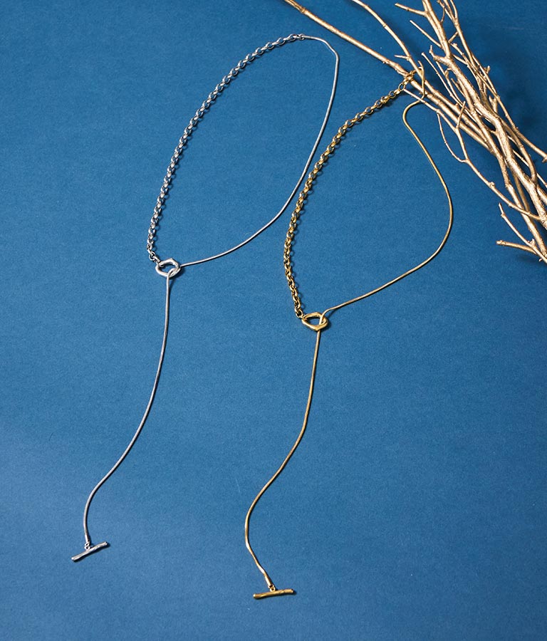 異なる2種類のチェーンが程よい存在感のあるラリエットネックレス。