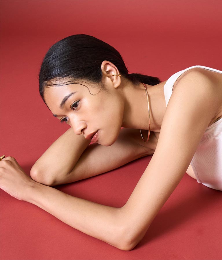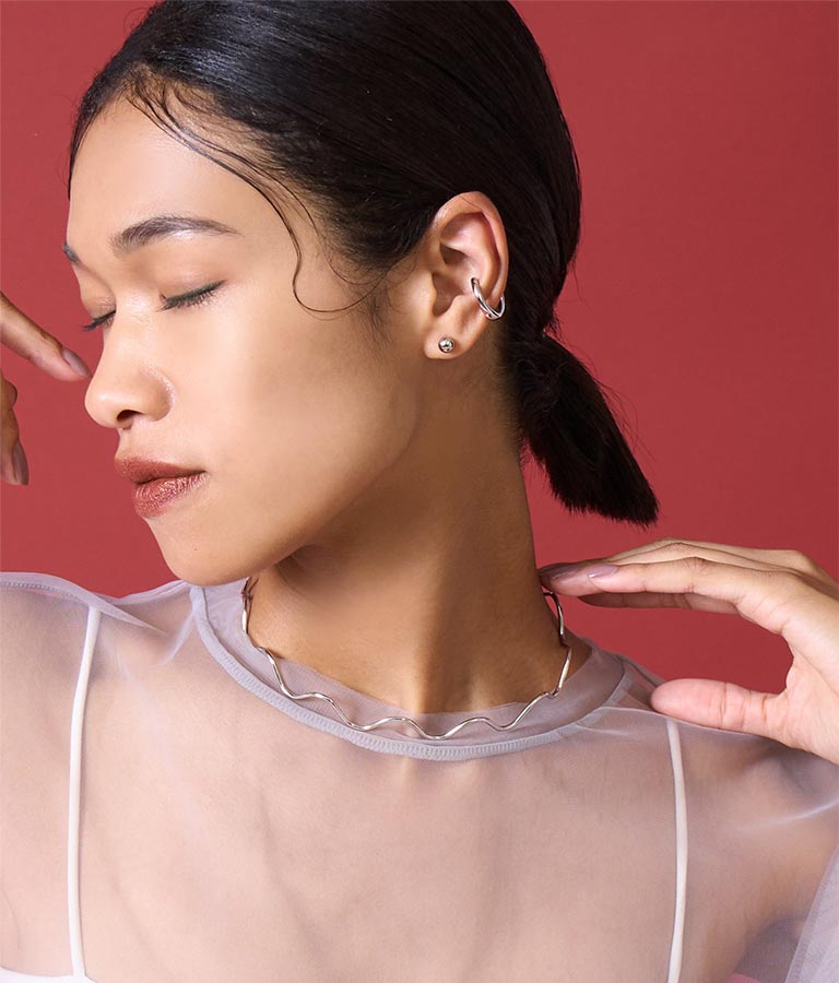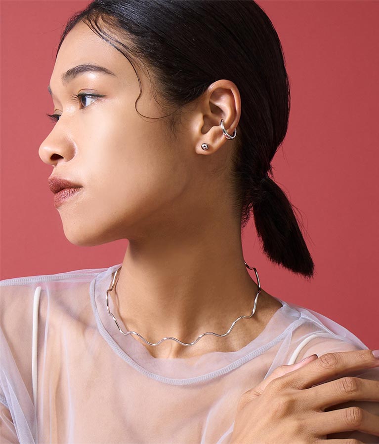 溶け出したようなやわらかなフォルムが耳元に添い、ほどよく女性らしさを演出します。