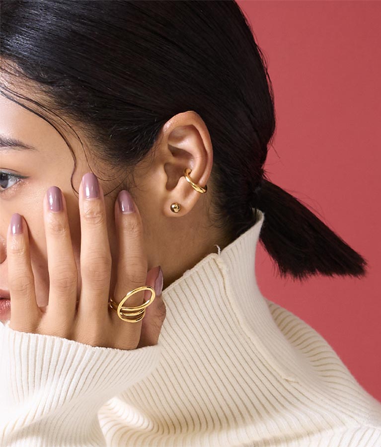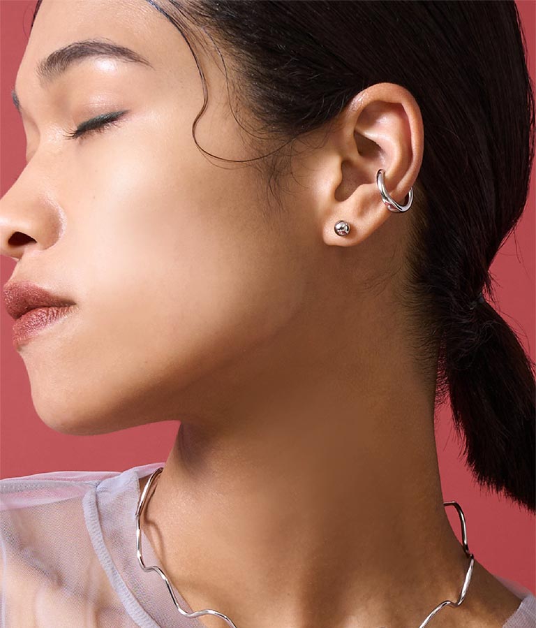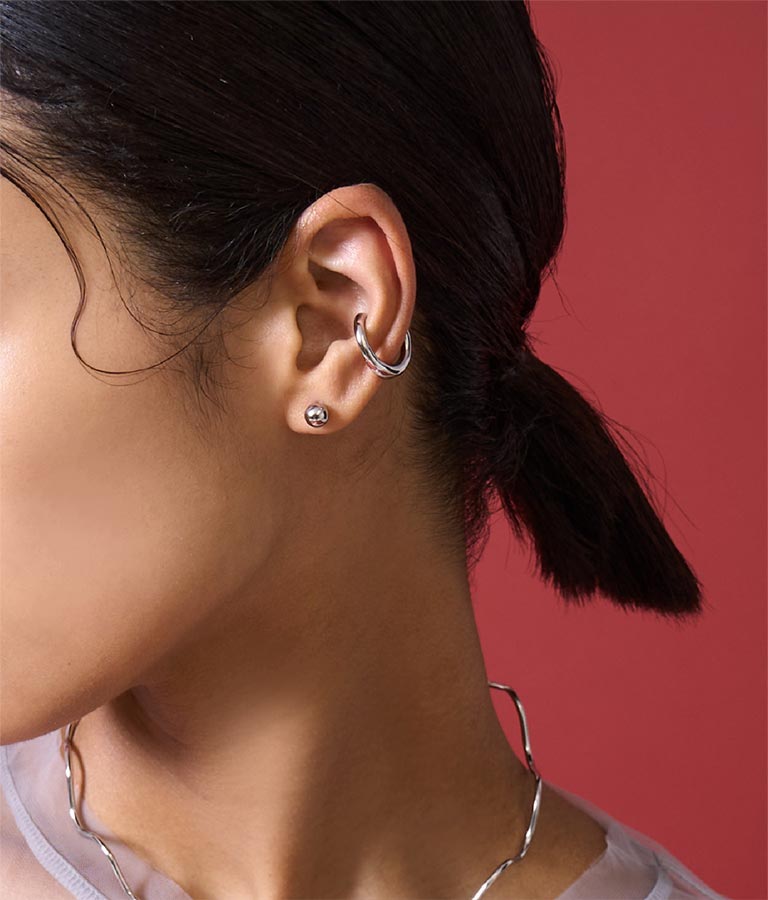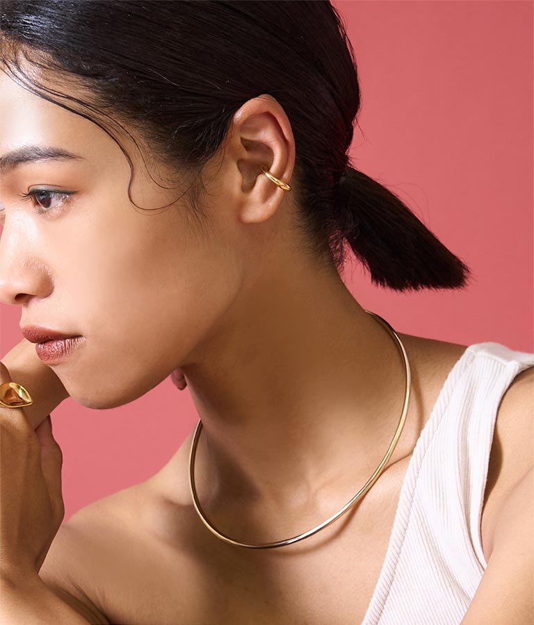 シンプルながらも飽きの来ない形状のイヤーカフ。