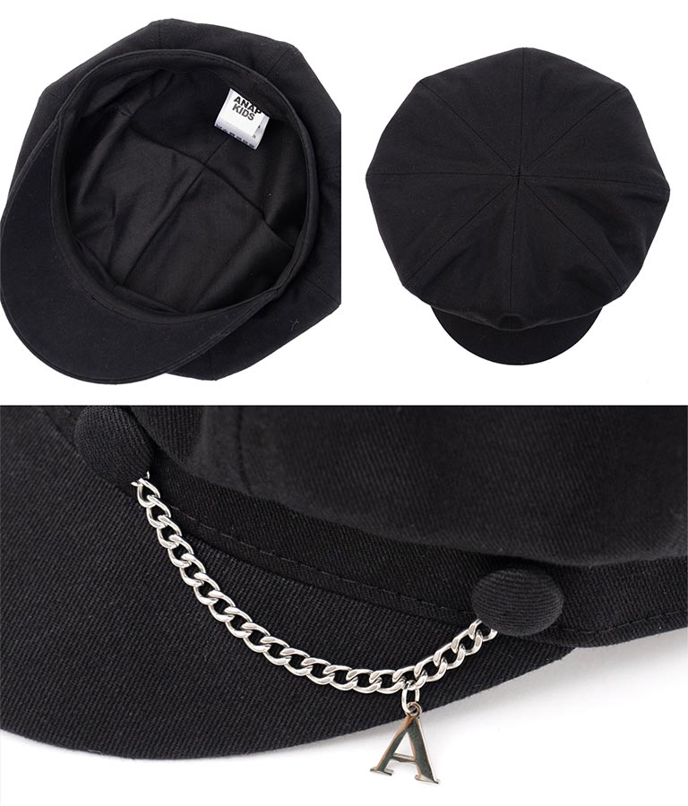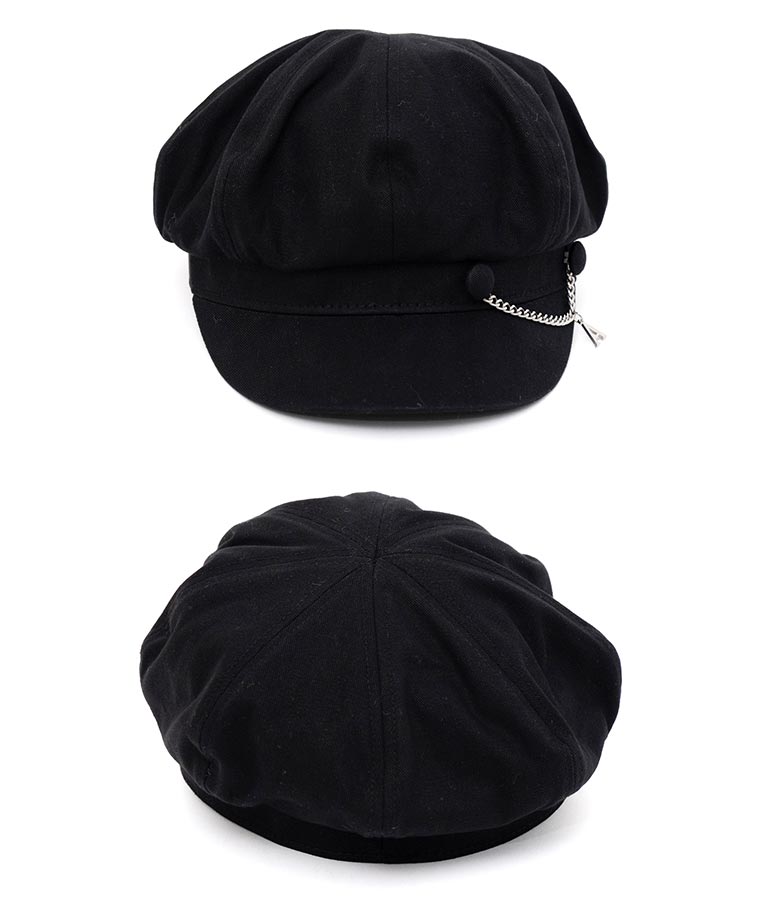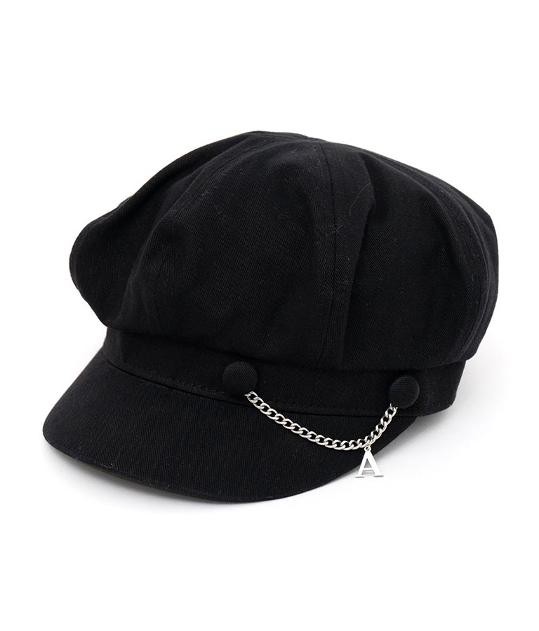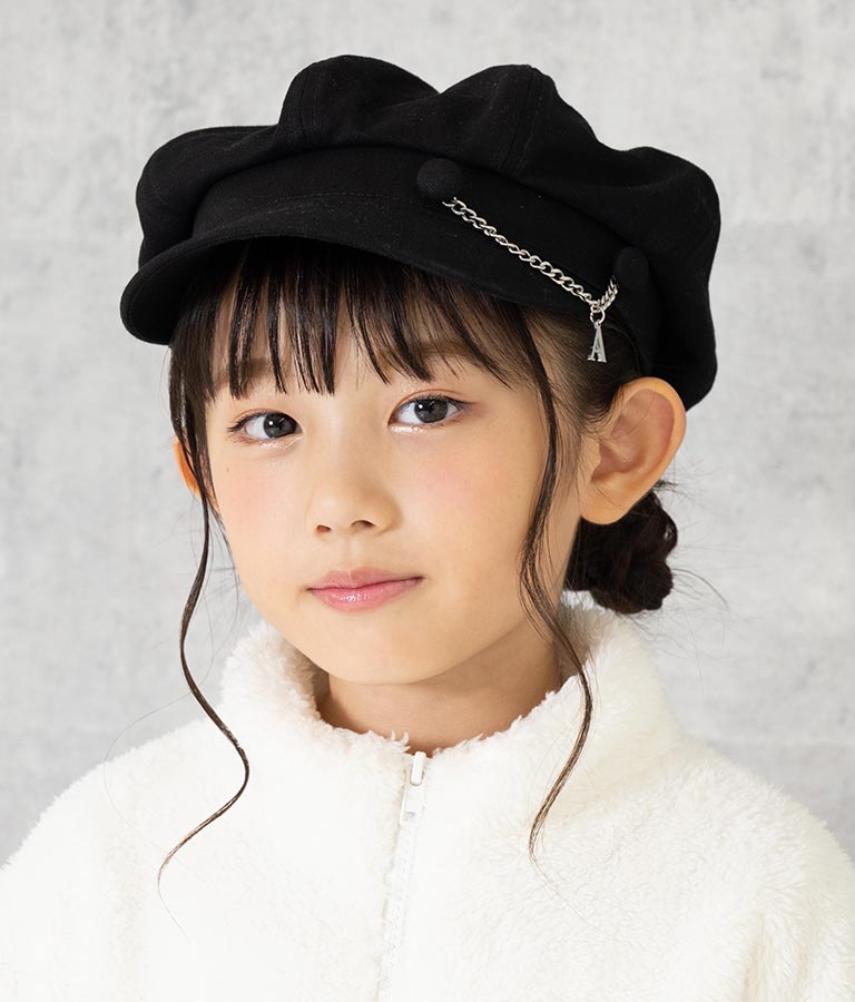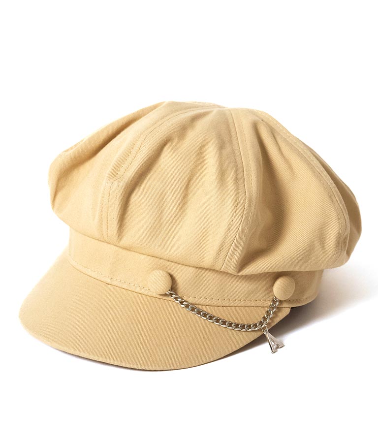 サイドのチェーンとチャームがワンポイントになったキャスケット♪