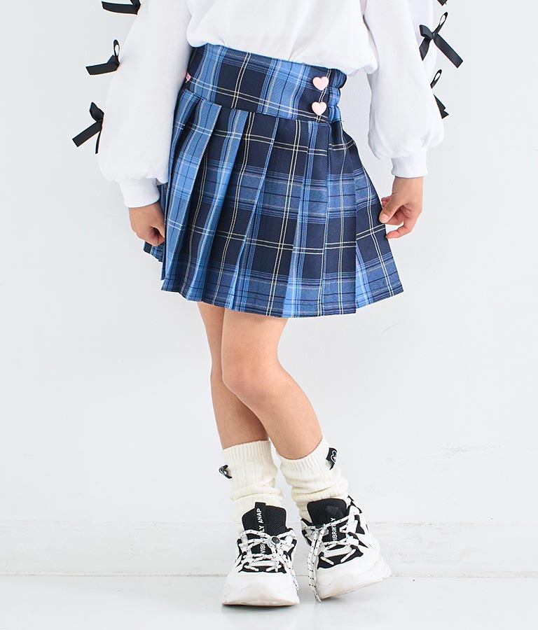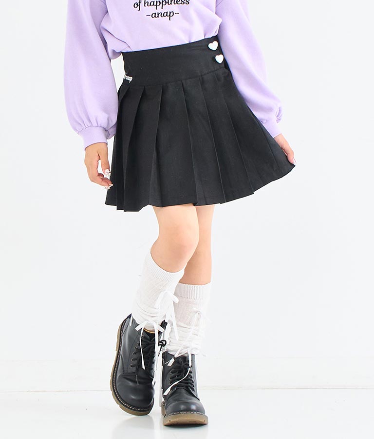ウエストのサイドに施したハートボタンがキュートなプリーツスカート☆
