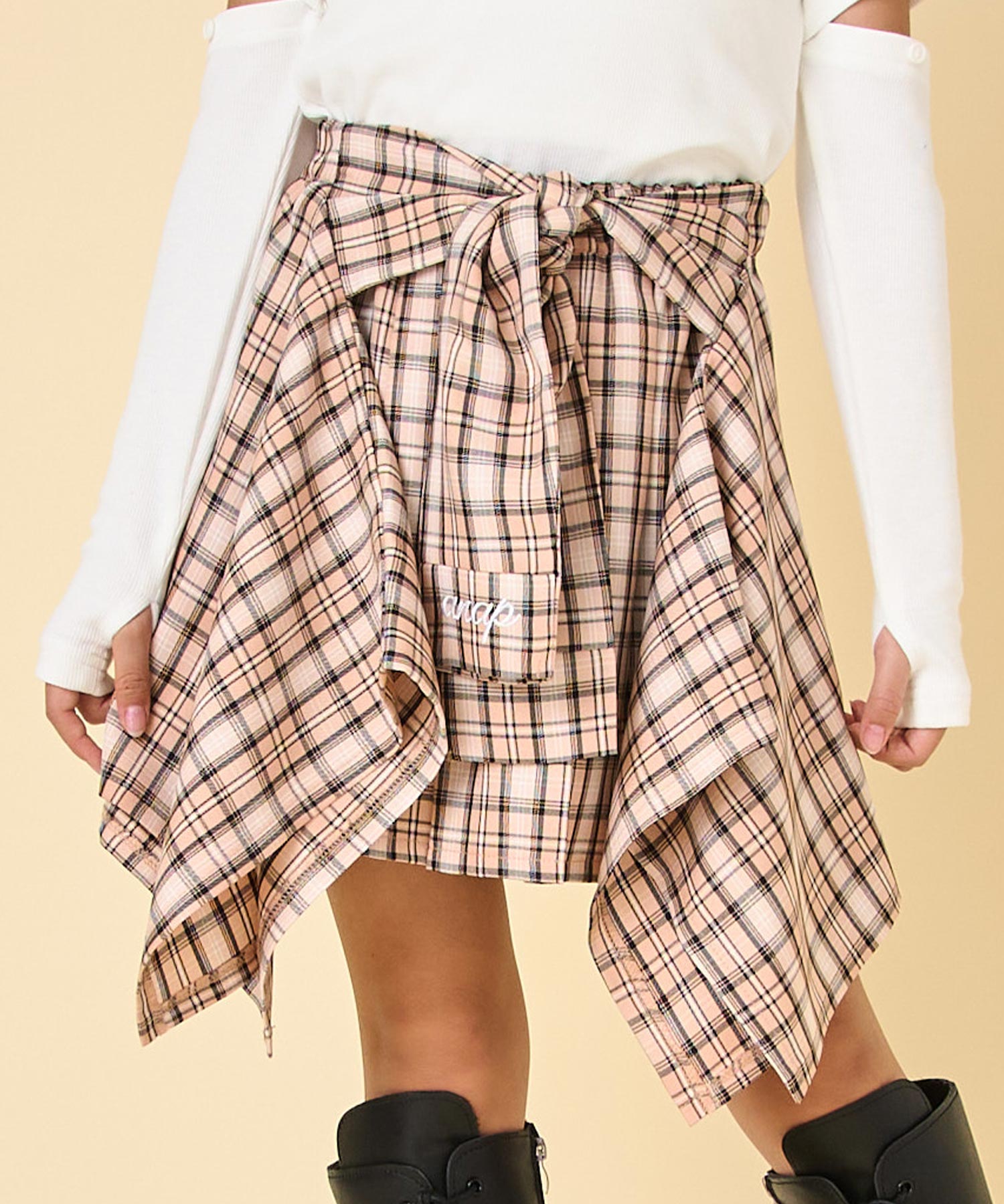 毎日のコーデにちょうどいい腰巻風チェックスカート
