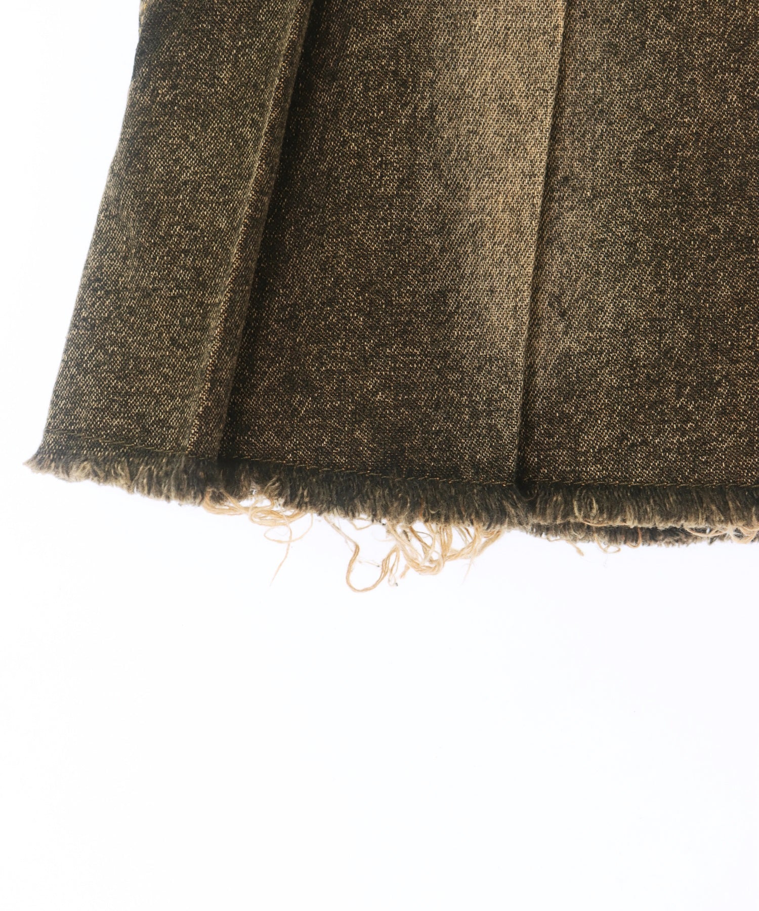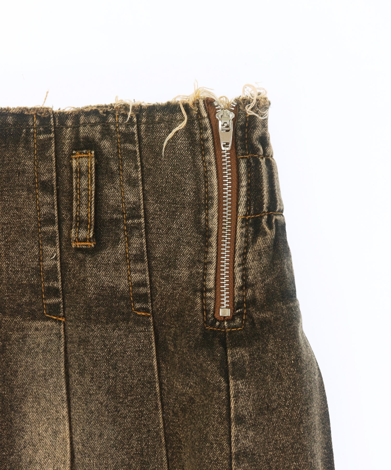 ダメージ加工×フリンジ裾でカジュアルに振り切ったデザインのデニムスカート。