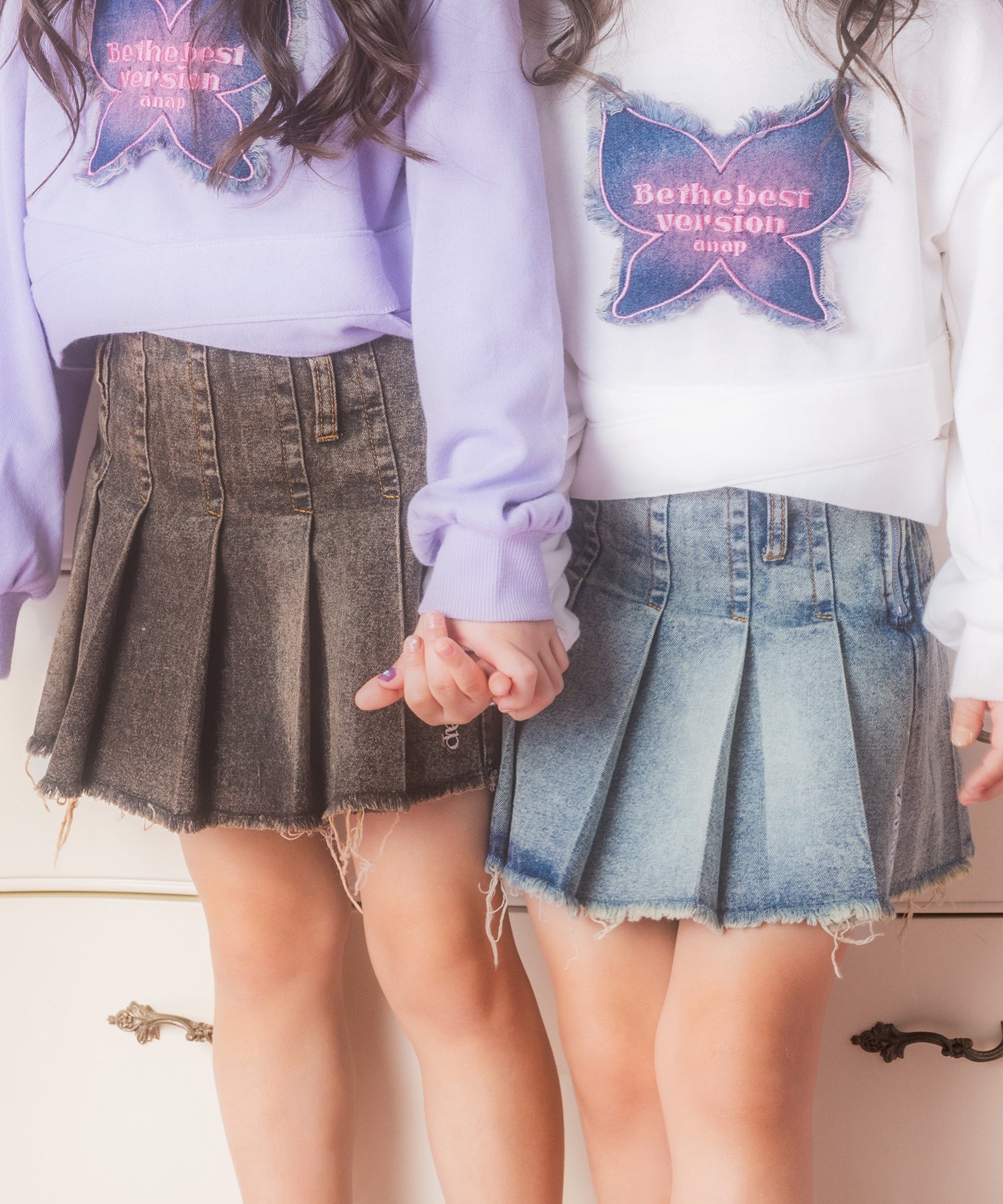 クラッシュ デニム プリーツ スカート【ジュニアお揃い】 421-3380