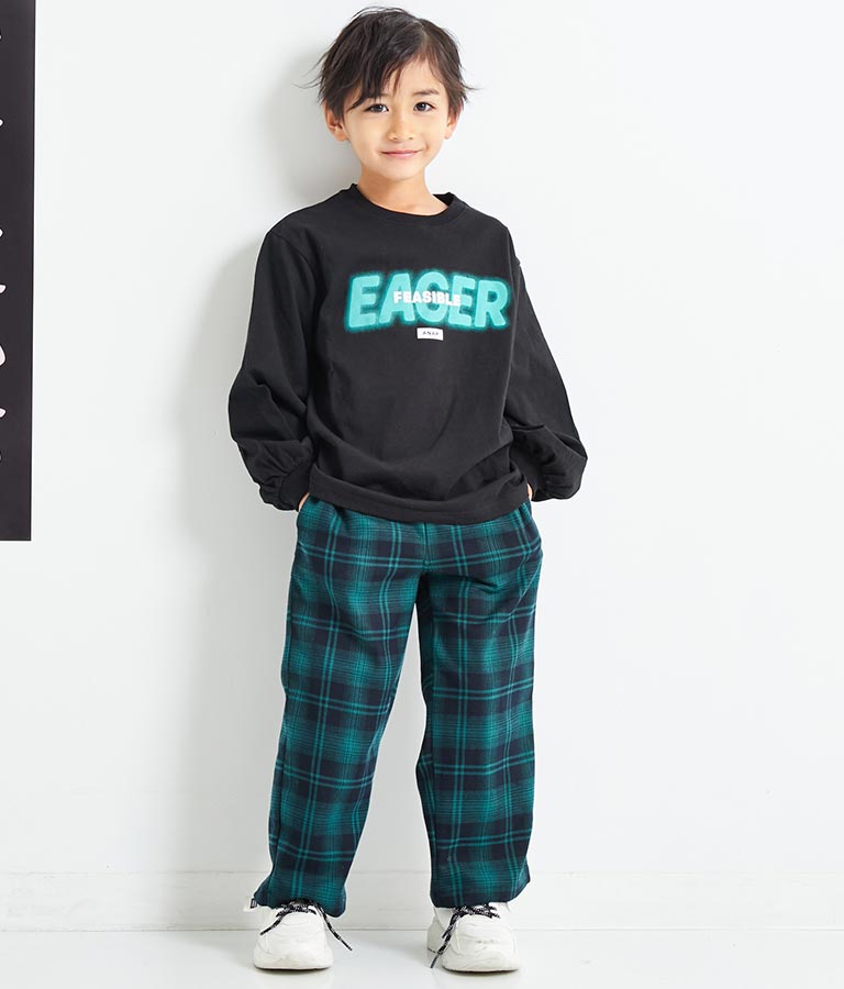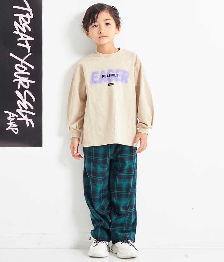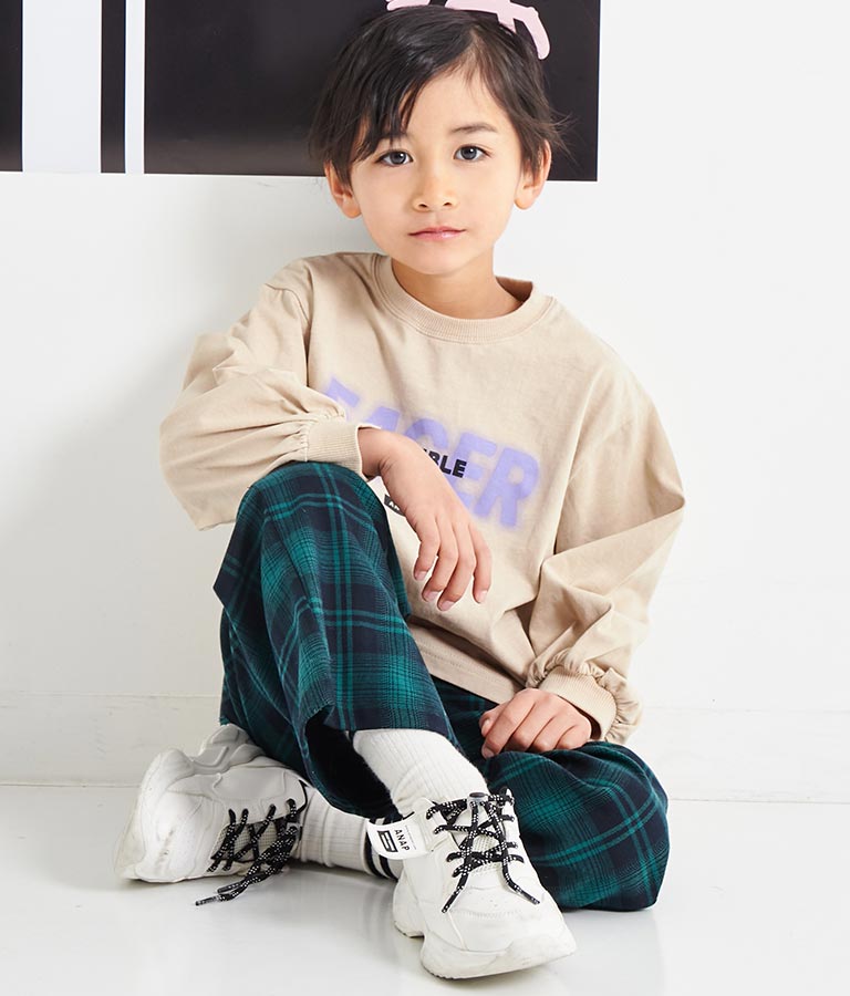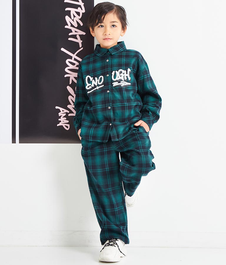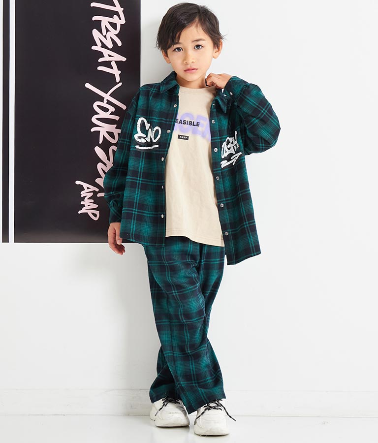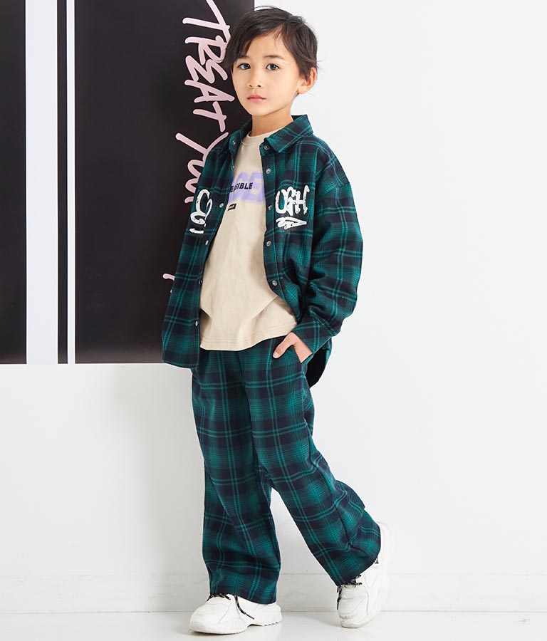 同素材を使用した【グラフィックかすれプリントチェックシャツ】とセットアップのコーデもおすすめです◎