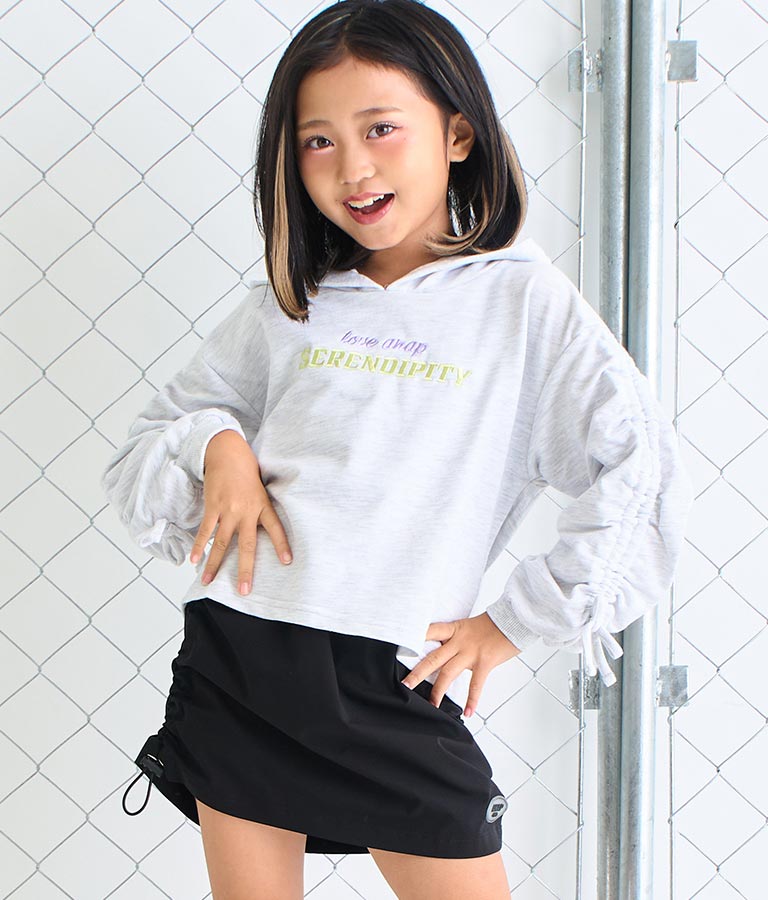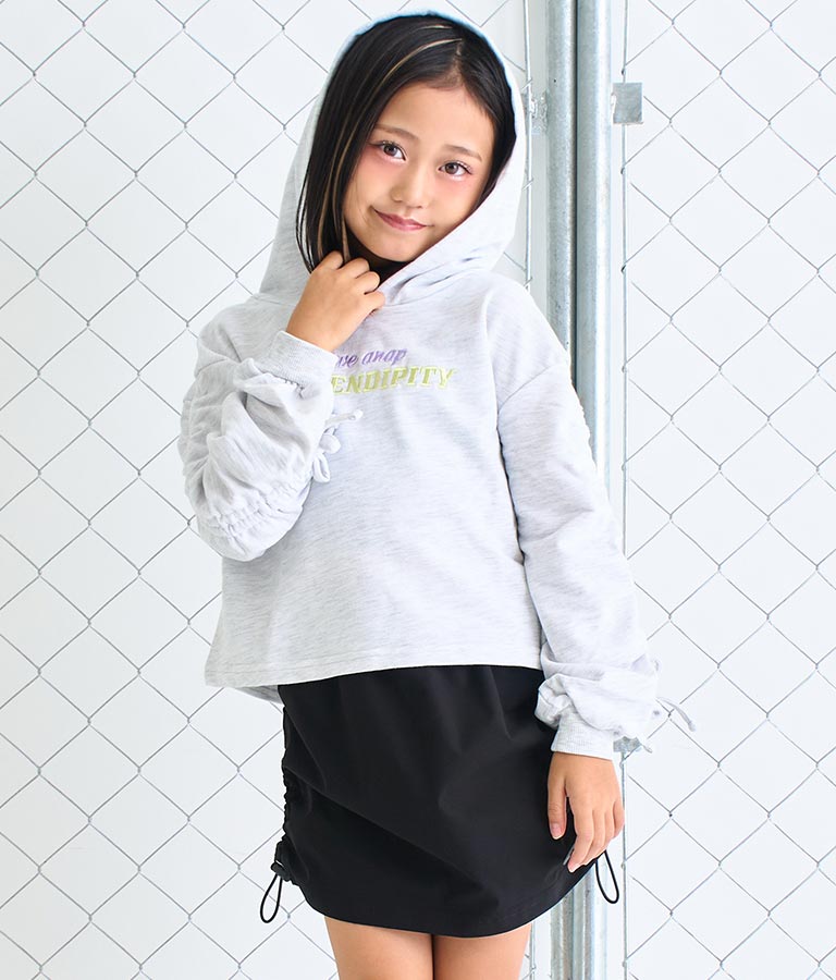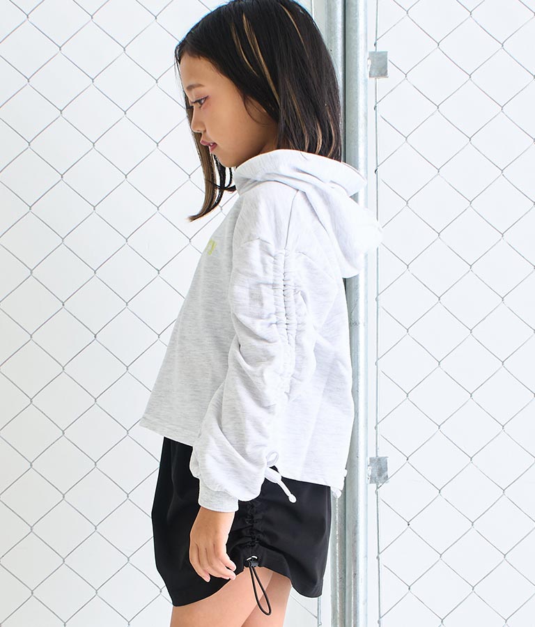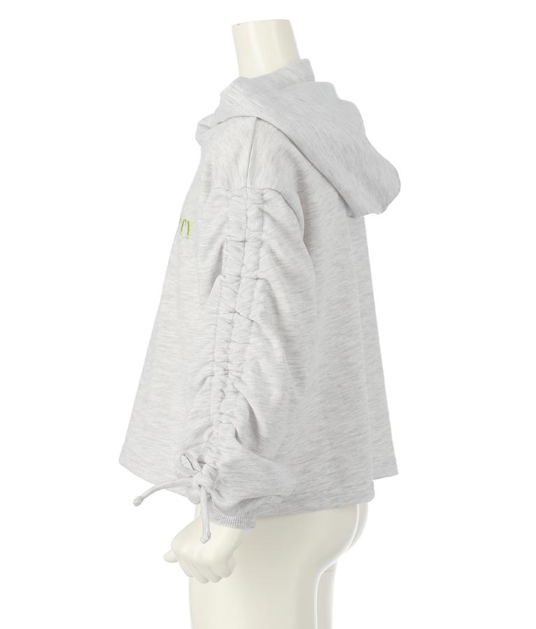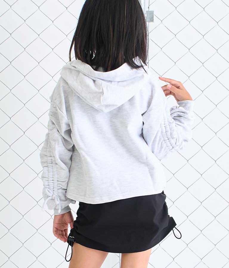 袖 シャーリング ミニ 裏毛 フーディ 423-3140