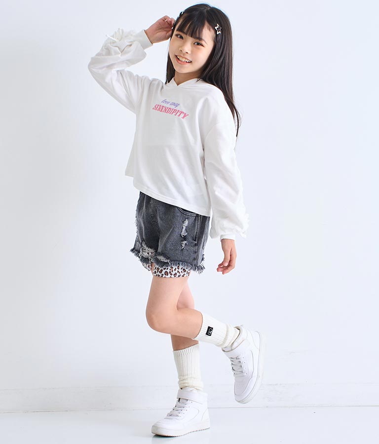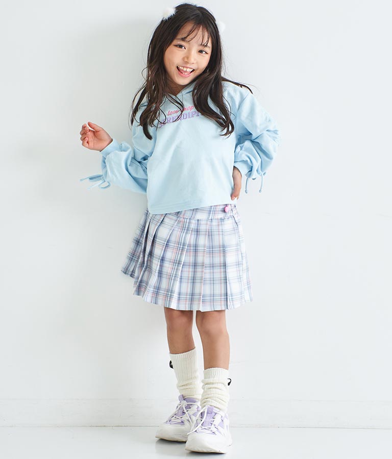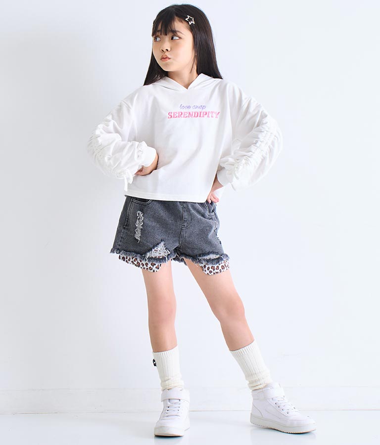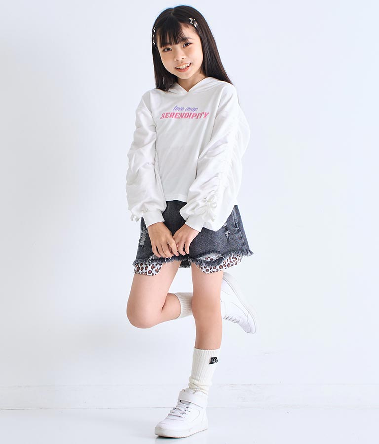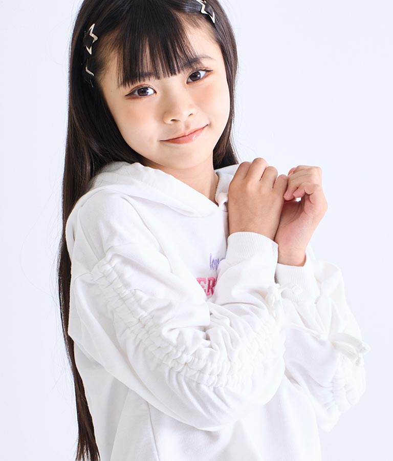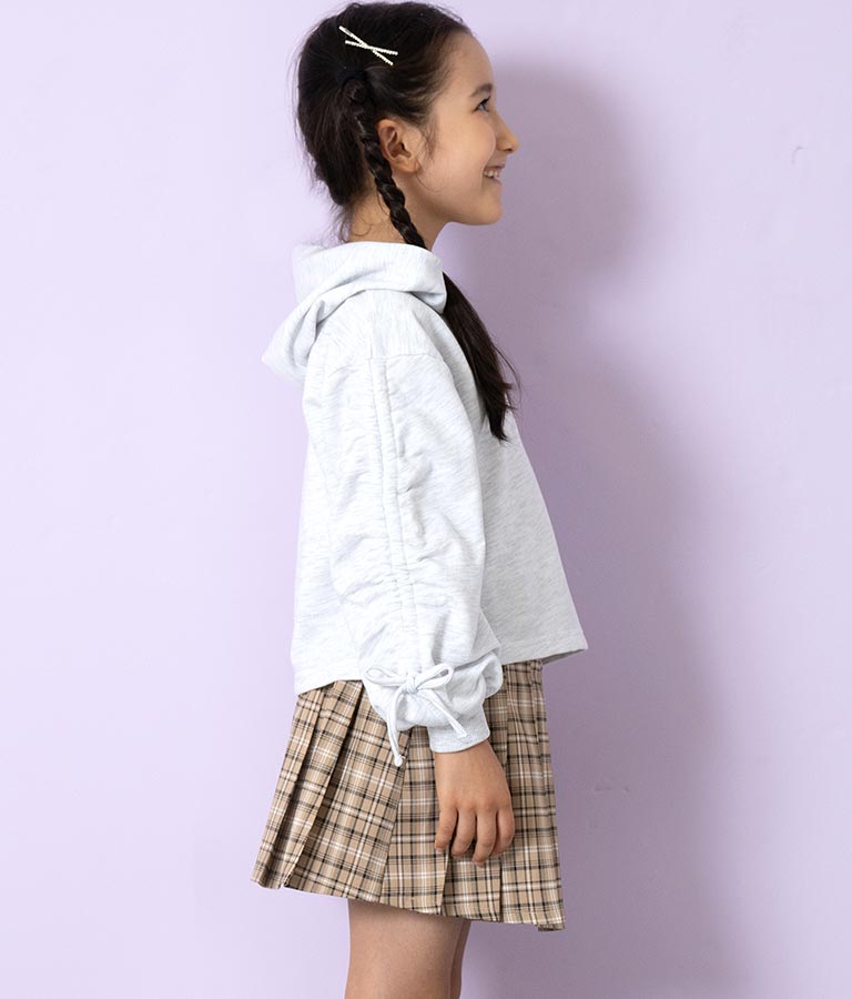 袖 シャーリング ミニ 裏毛 フーディ 423-3140