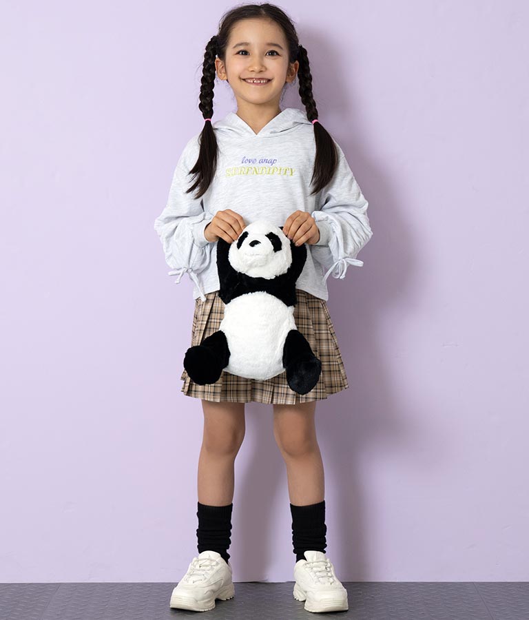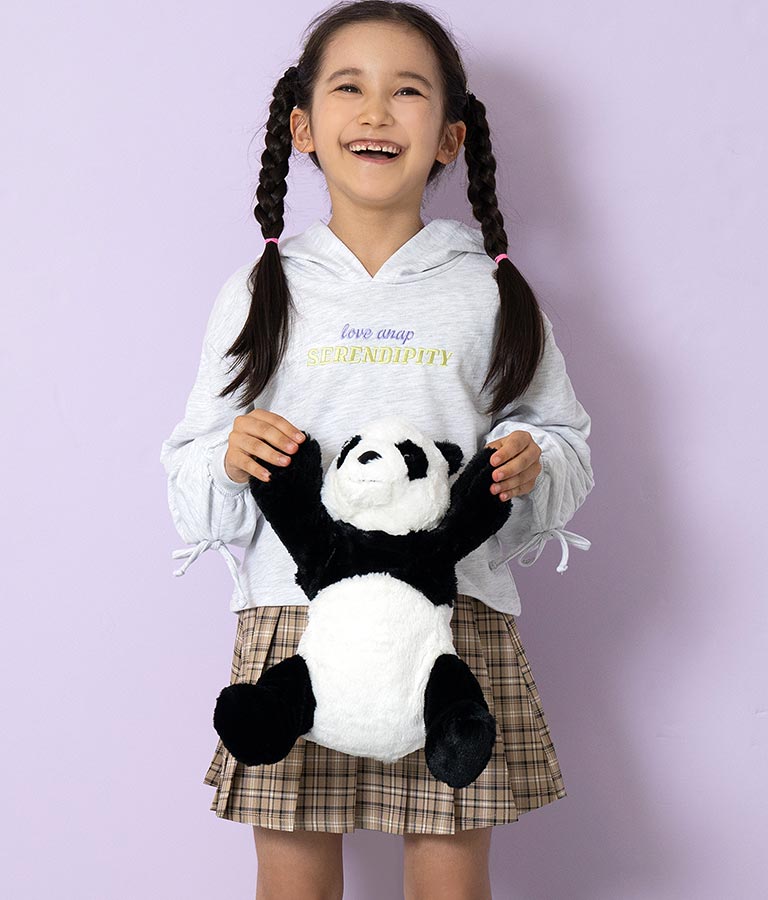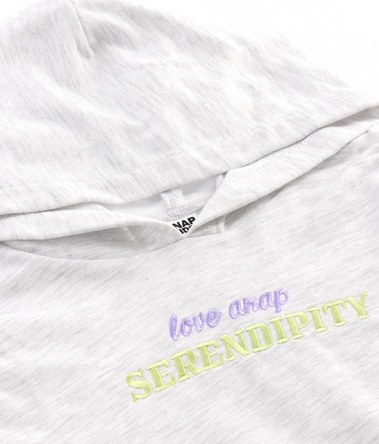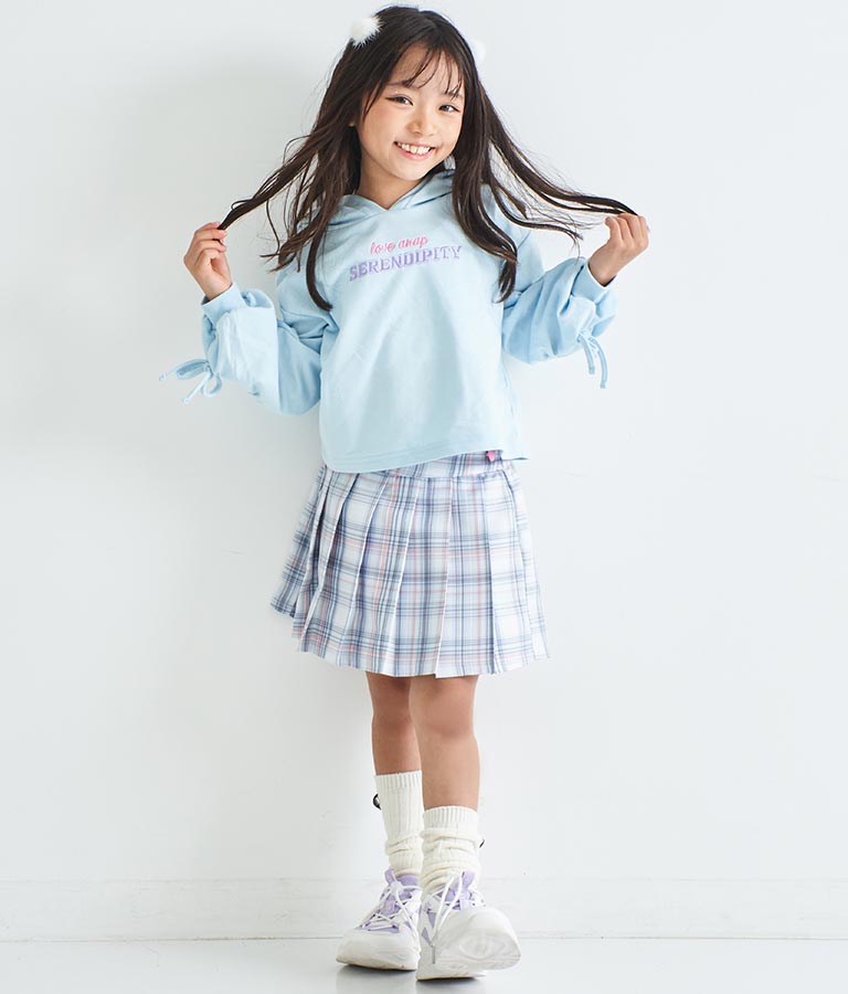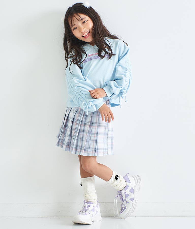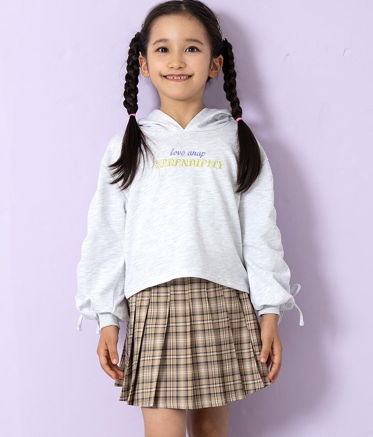 カジュアルコーデの定番フーディも袖のシャーリング+フロントに施した可愛い配色の刺繍でキュートかつおしゃれな装いに☆