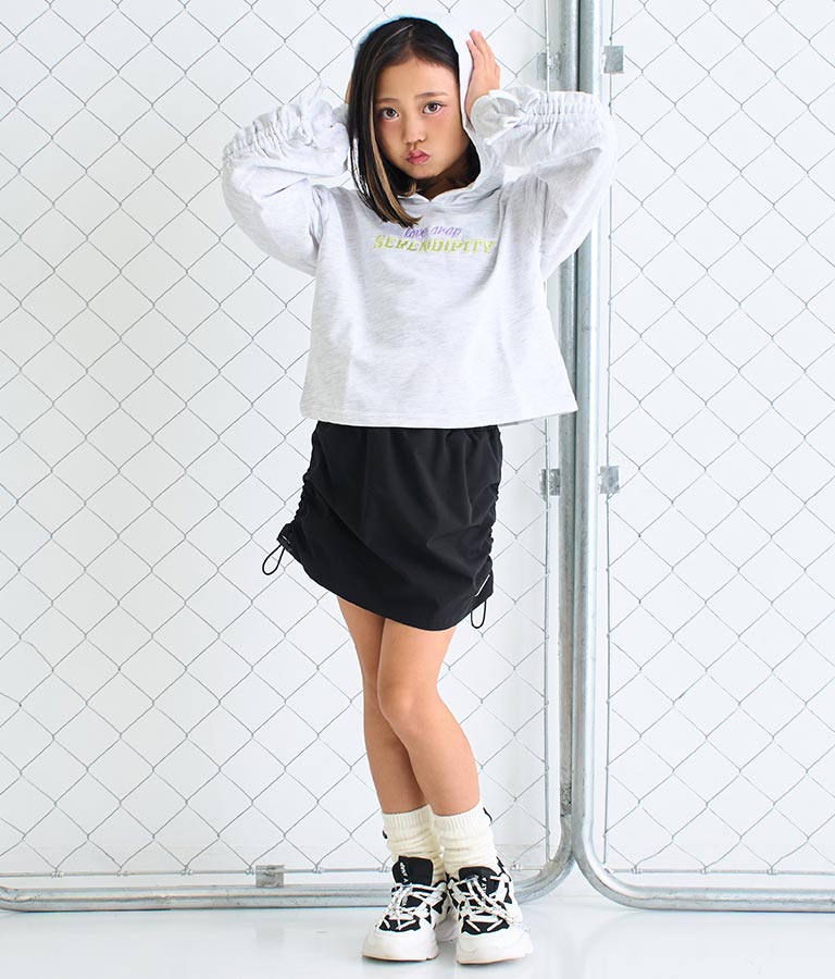 裾のシャーリングがとってもキュートなミニ裏毛フーディ♪