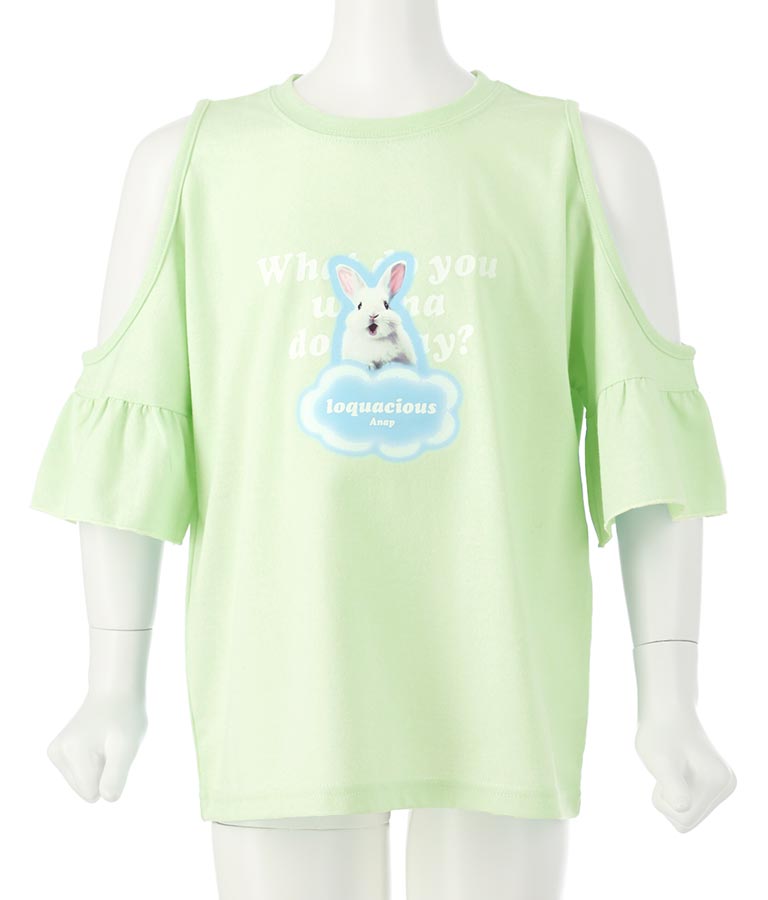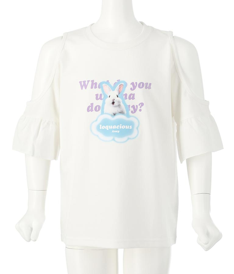 うさぎ プリント 肩あき トップス Tシャツ 423-3303