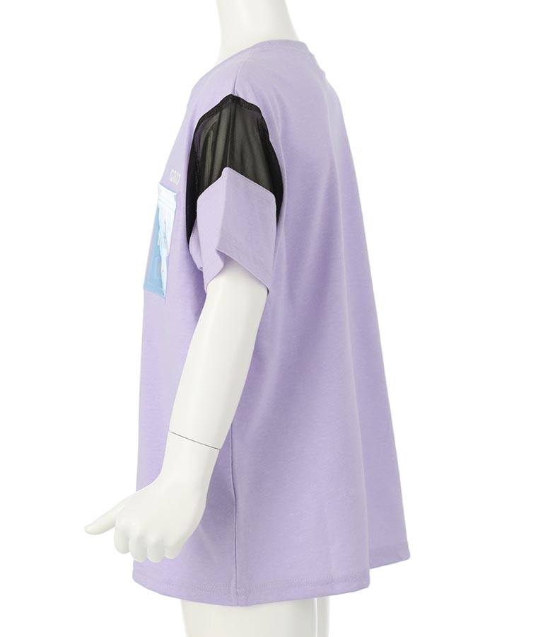 クリア ポケット付 メッシュ 切替 ビッグ Tシャツ -