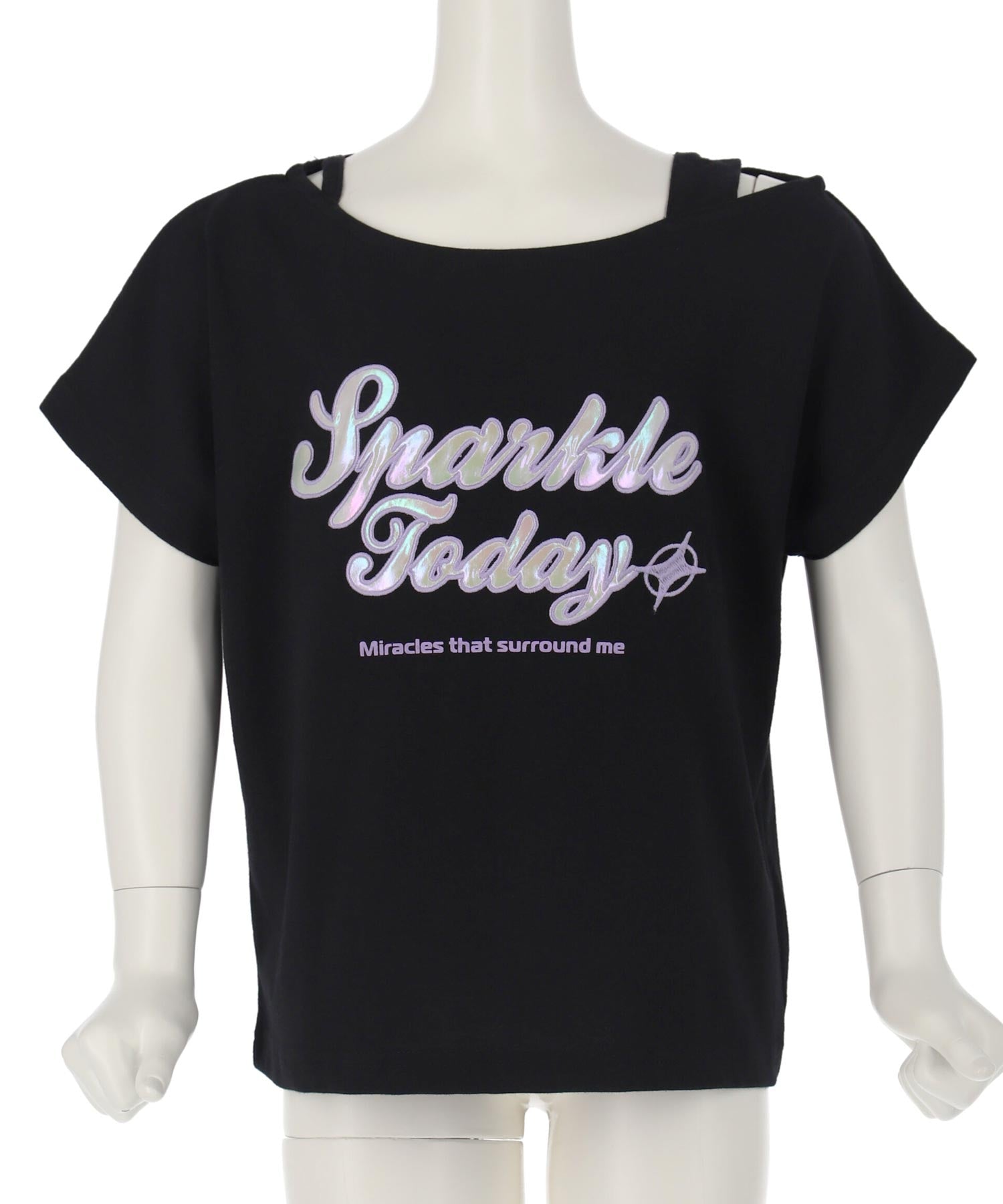 アシンメトリー 肩アキ オーロラ ワッペン Tシャツ トップス 【ジュニアお揃い】 423-3397