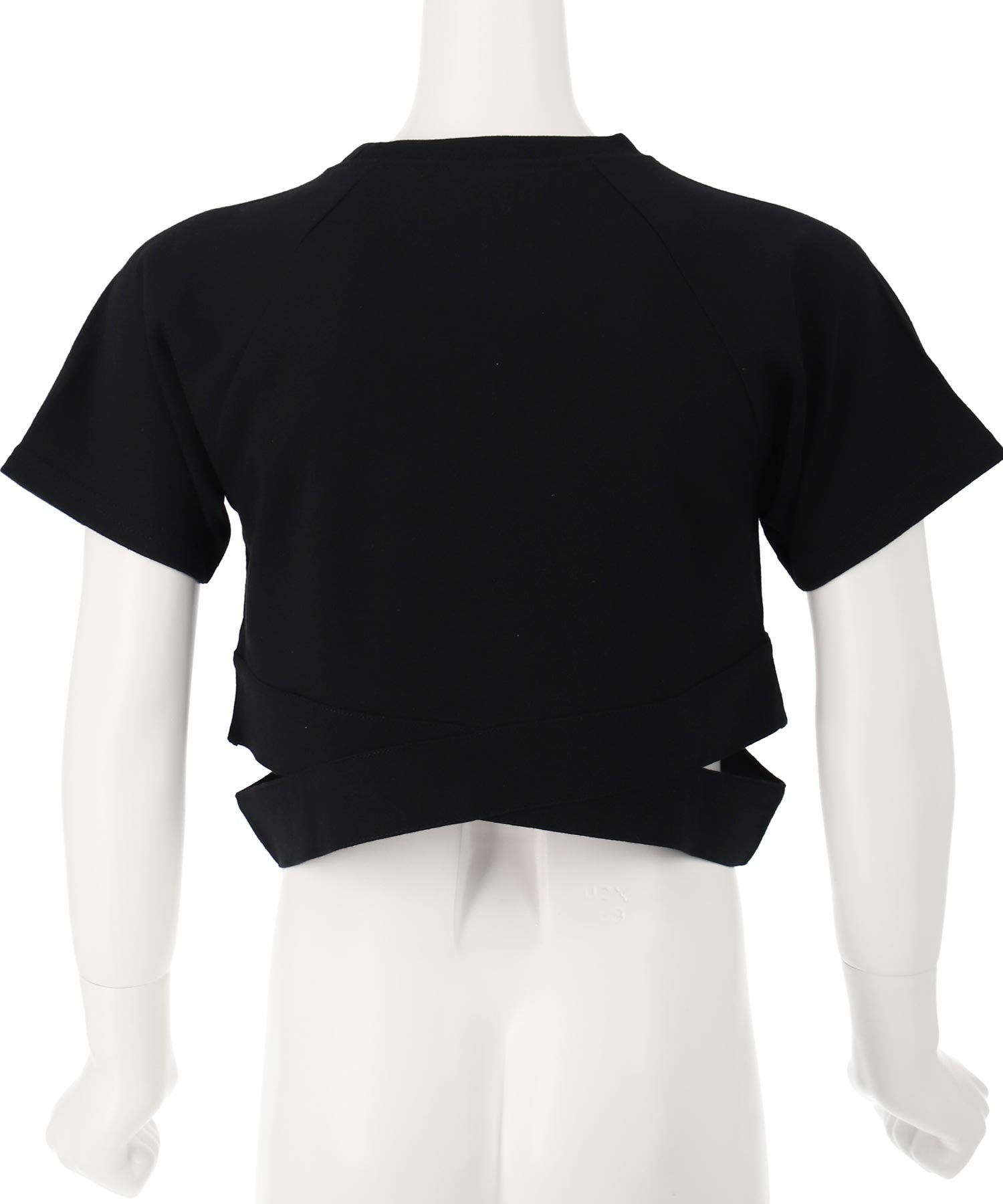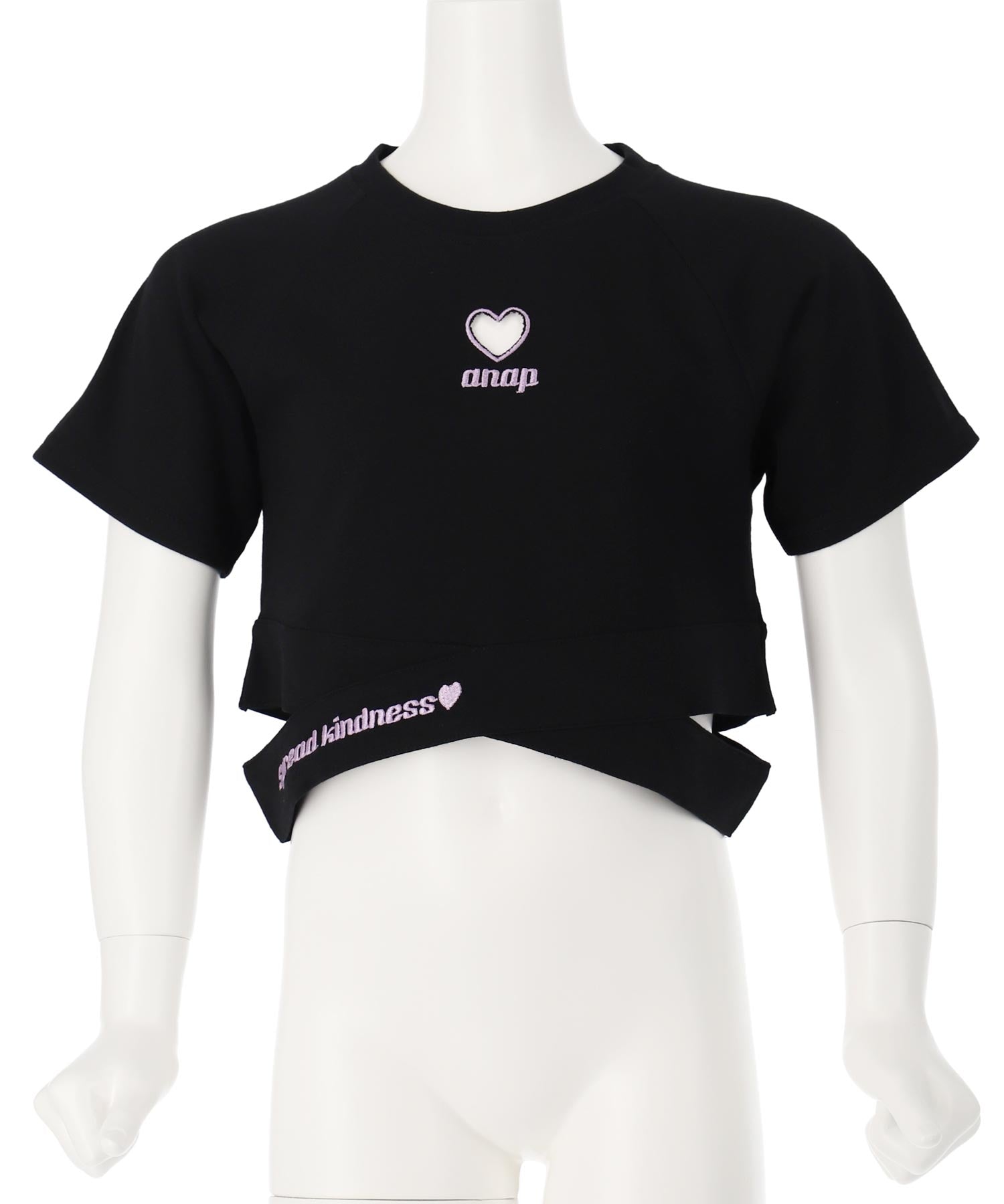 胸元にあしらったハートカットがポイントのコンパクトトップス。裾にはクロスさせた生地の重なりを取り入れ、遊び心のある立体感を演出。ストレッチの効いた素材感でアクティブに過ごす日も快適な着心地です。メッセージロゴのアクセントでシンプルながらも表情のある仕上がりに。