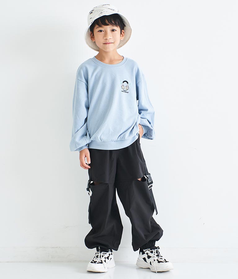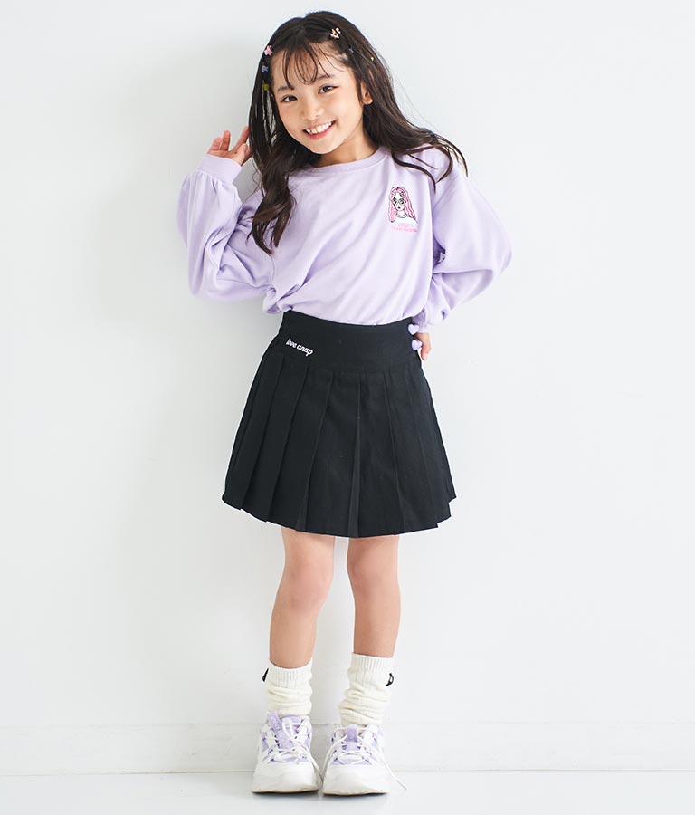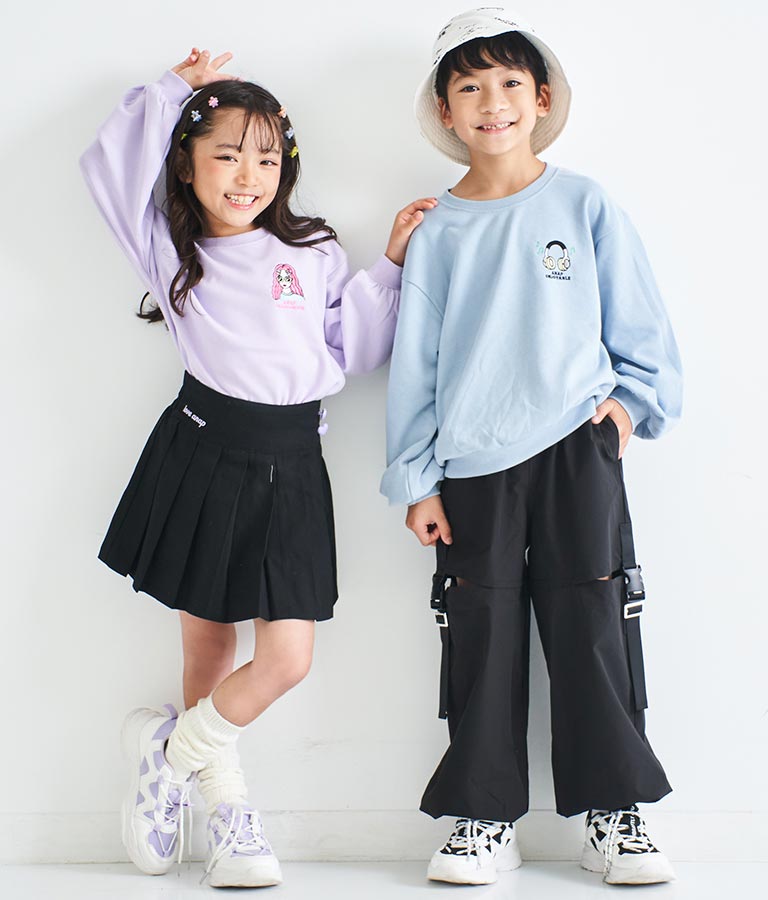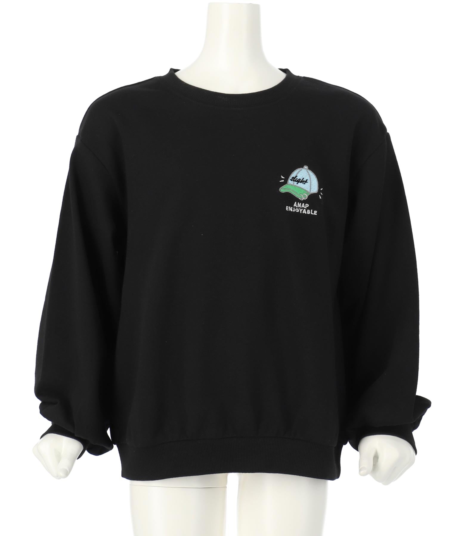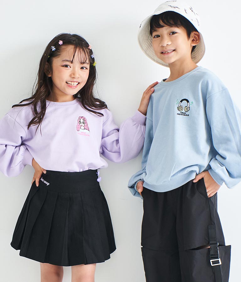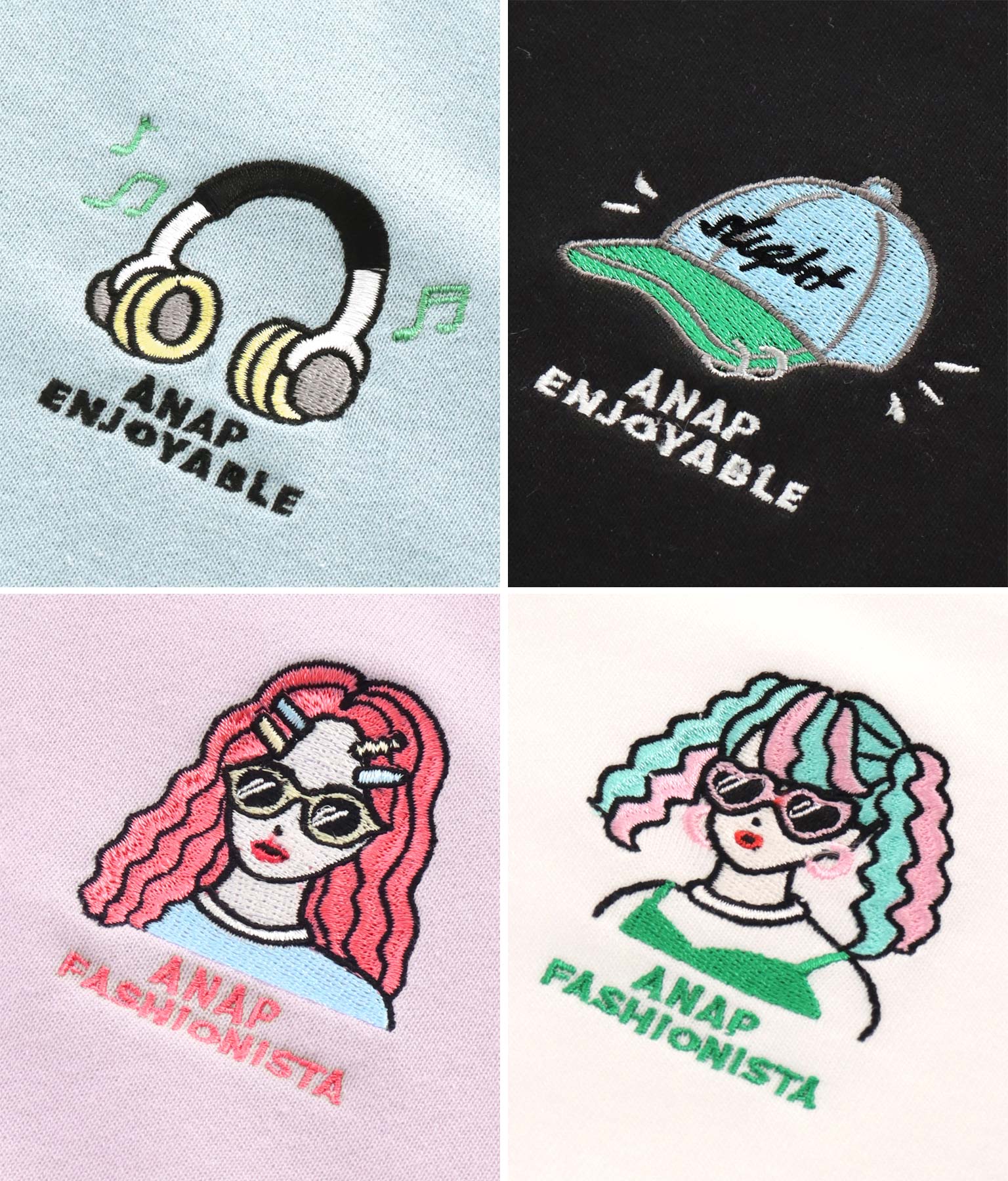 ファッショニスタやキャップなど興味を引くモチーフ刺しゅうをあしらったミニ裏毛トレーナー♪