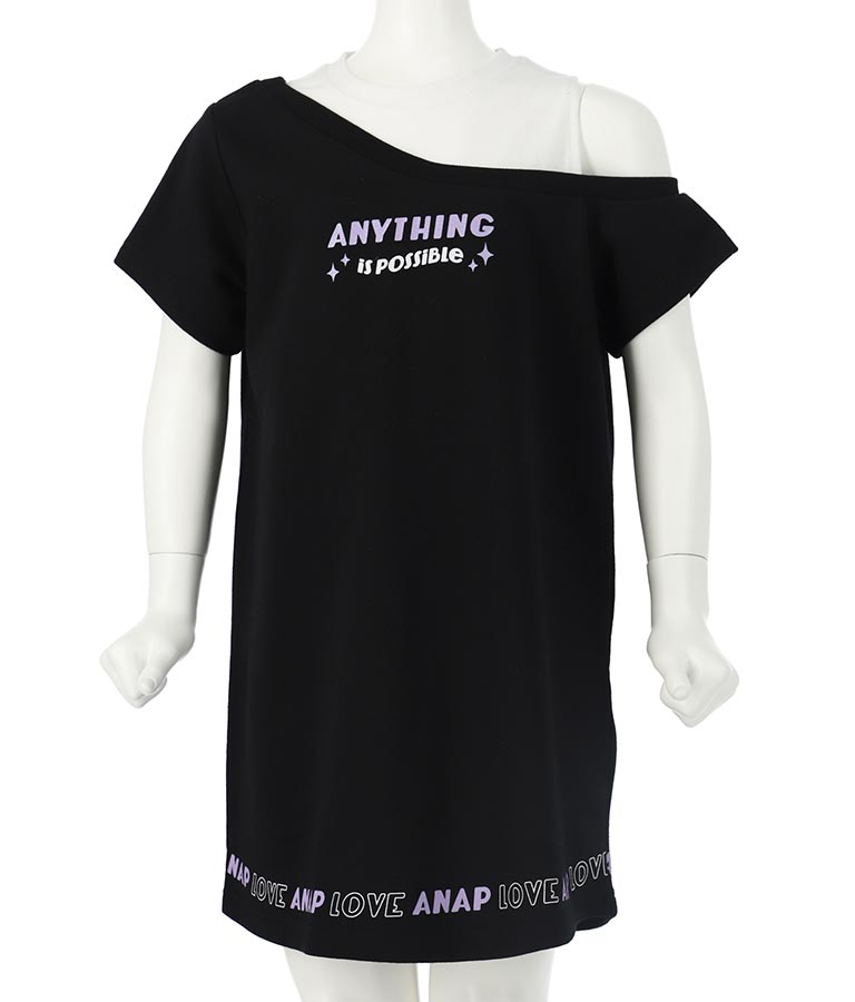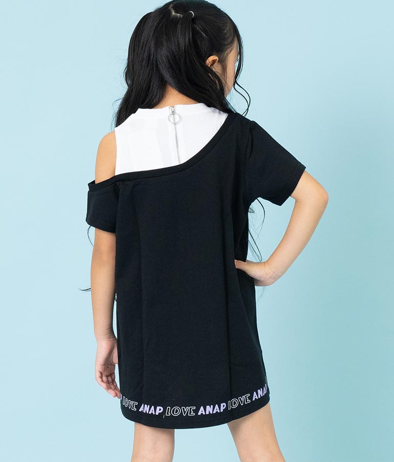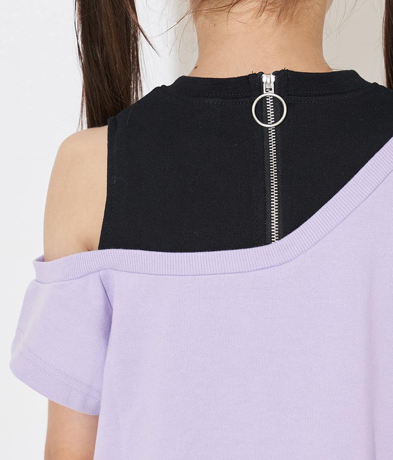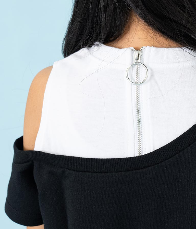 アシンメトリー オフショルダー バックジップ ワンピース -
