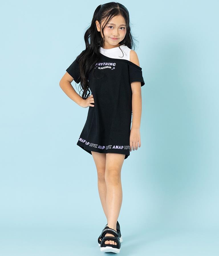アシンメトリー オフショルダー バックジップ ワンピース 427-3278