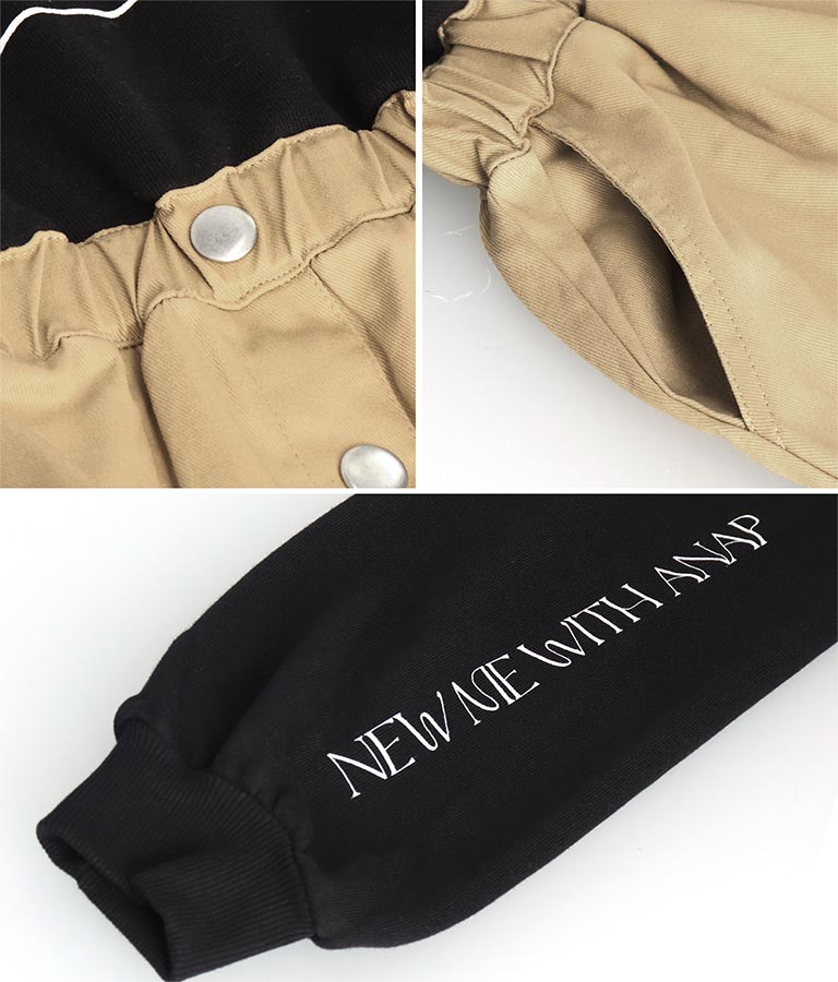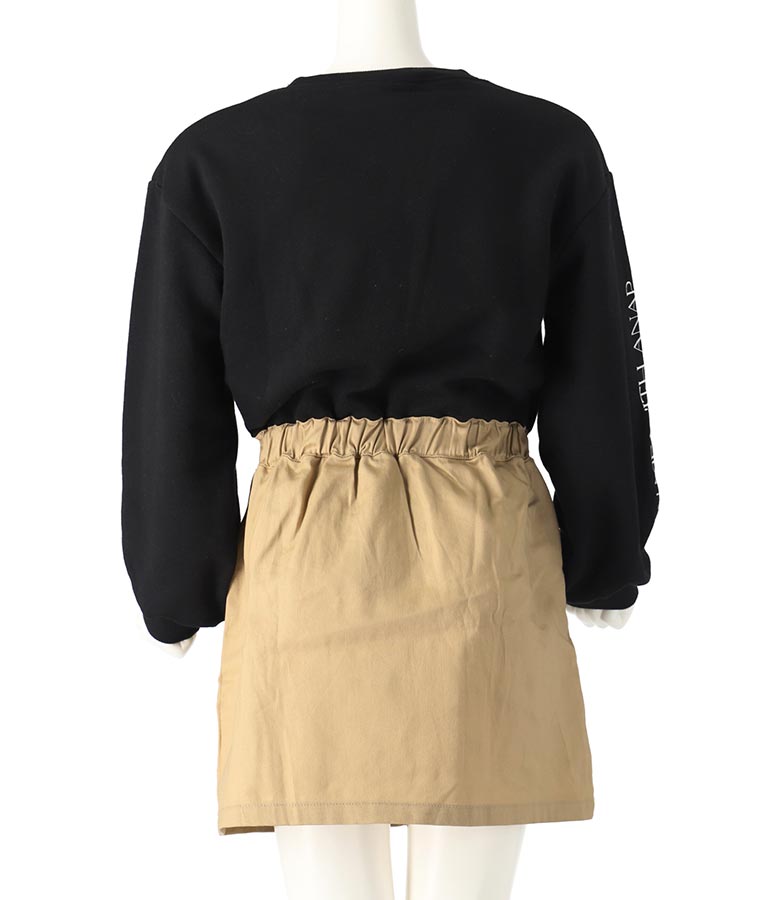 チャーム付 ツイル ドッキング 裏毛 スウェット 長袖 ワンピース -
