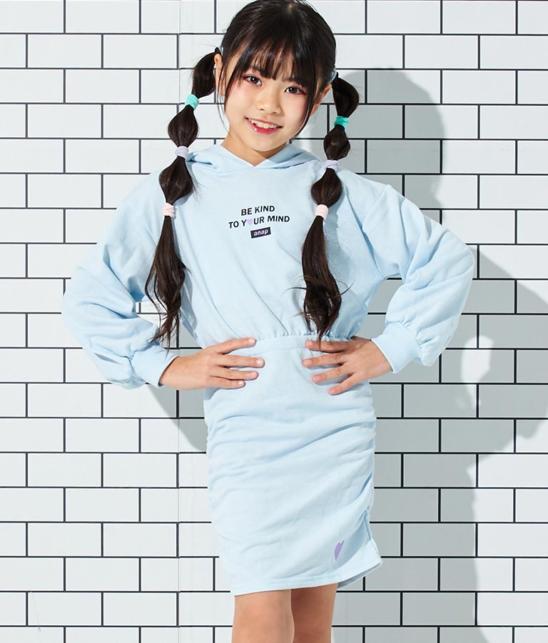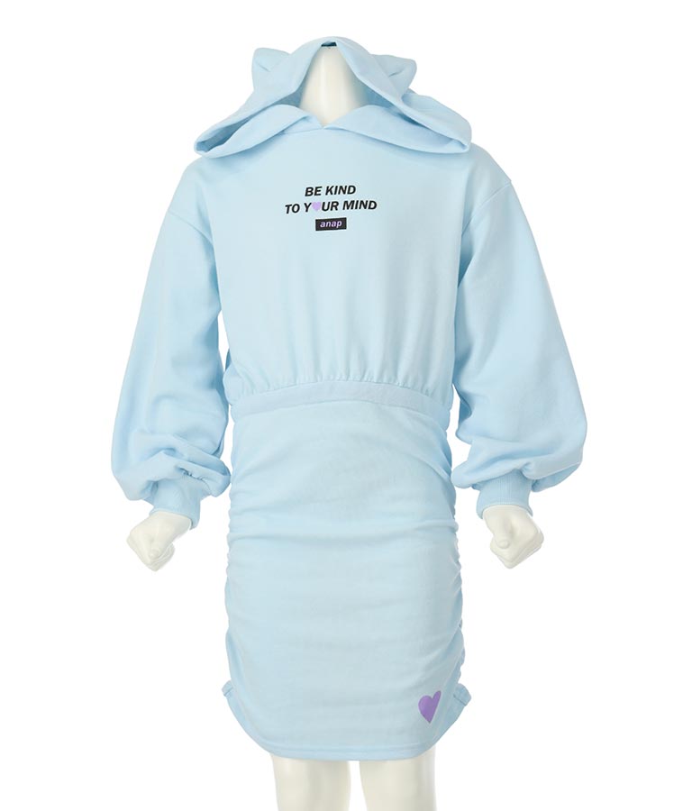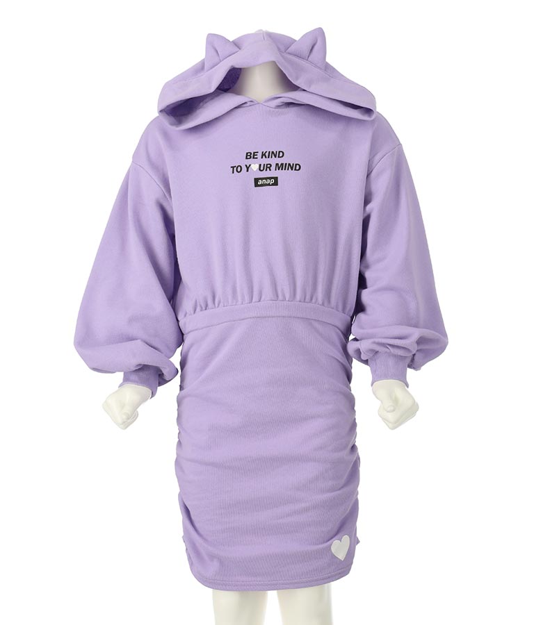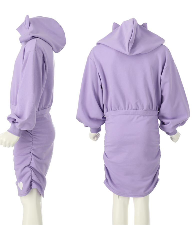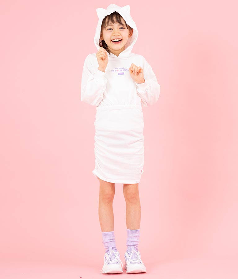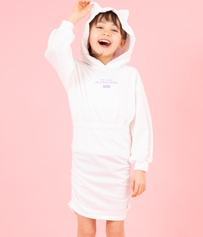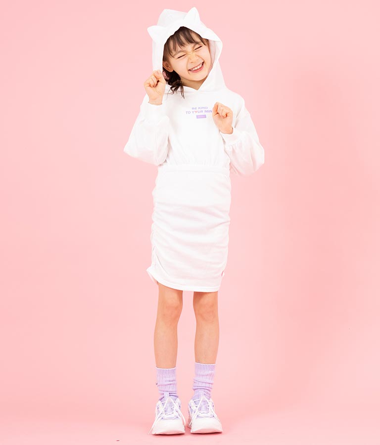 ねこ耳 フード 付き ミニ 裏毛 ワンピース 427-3223