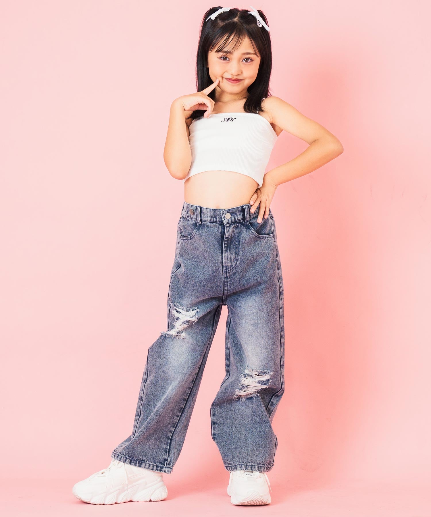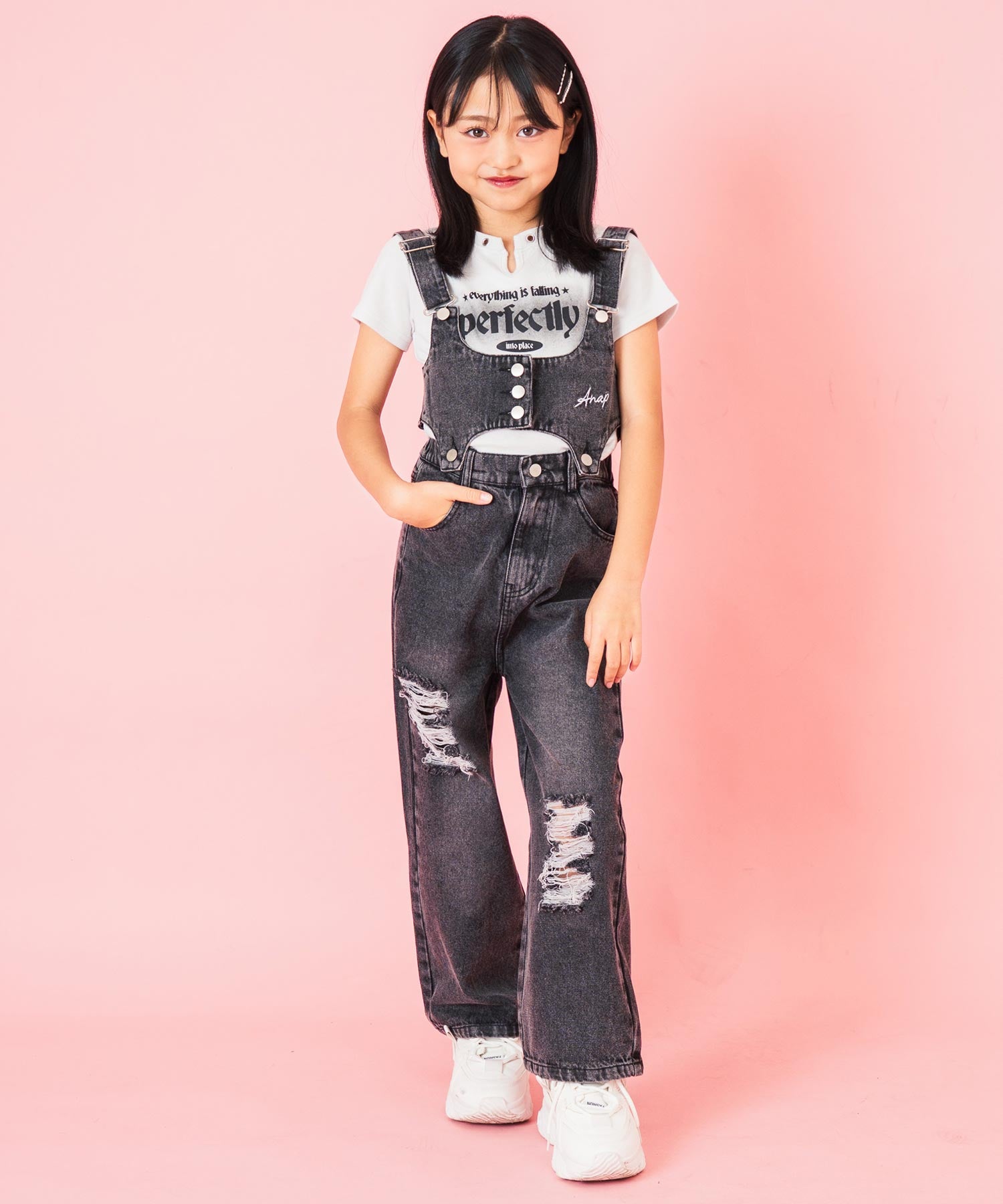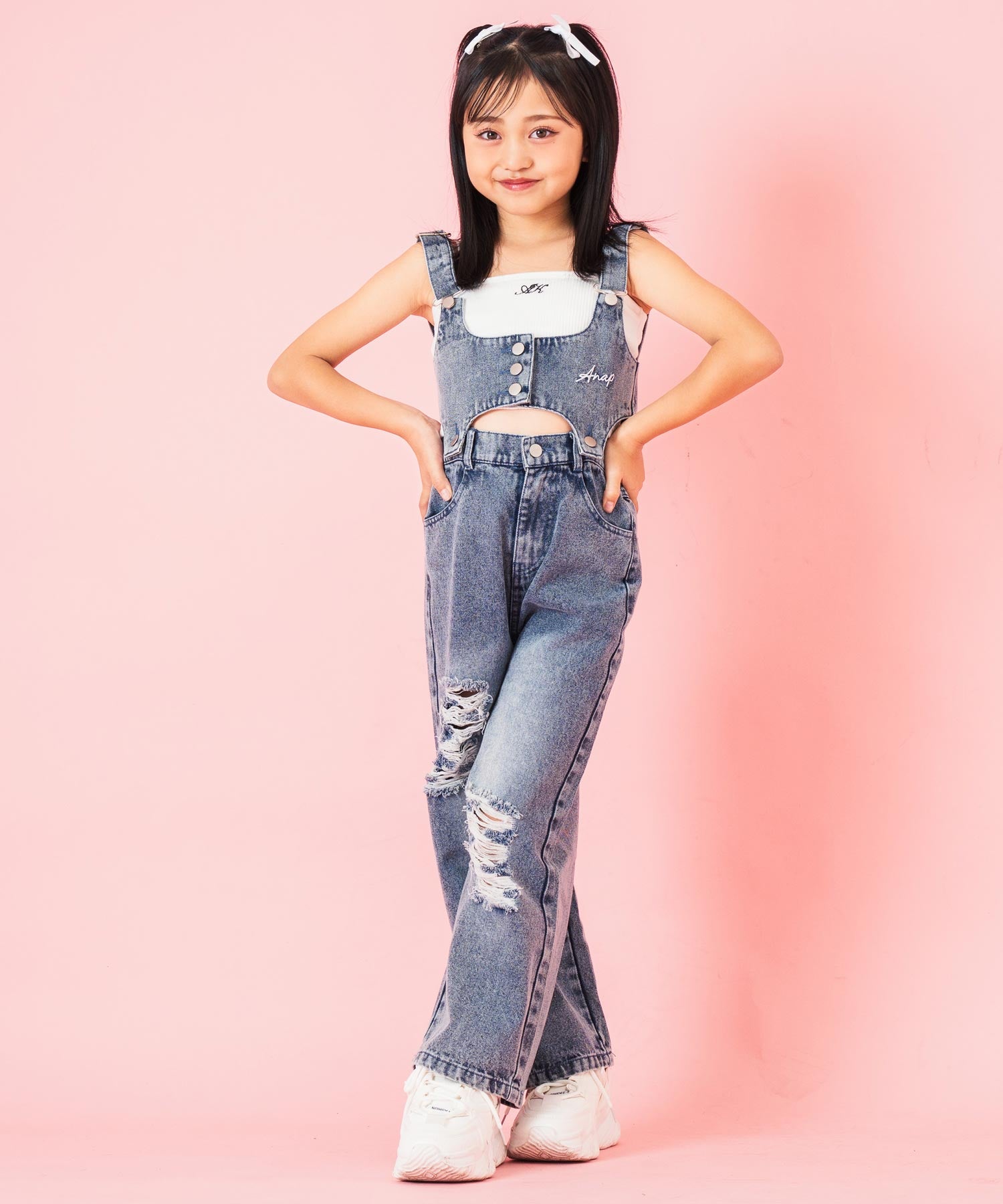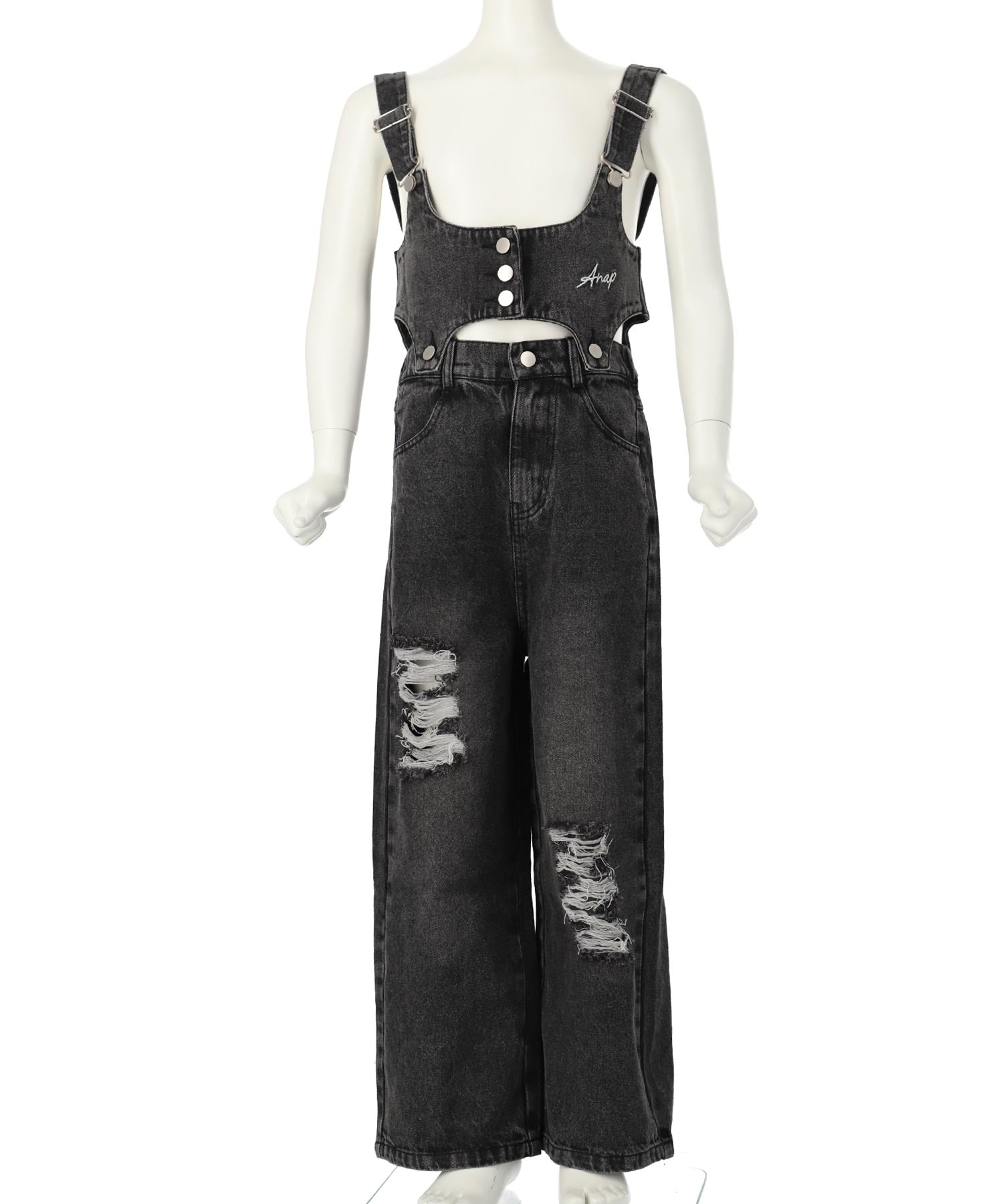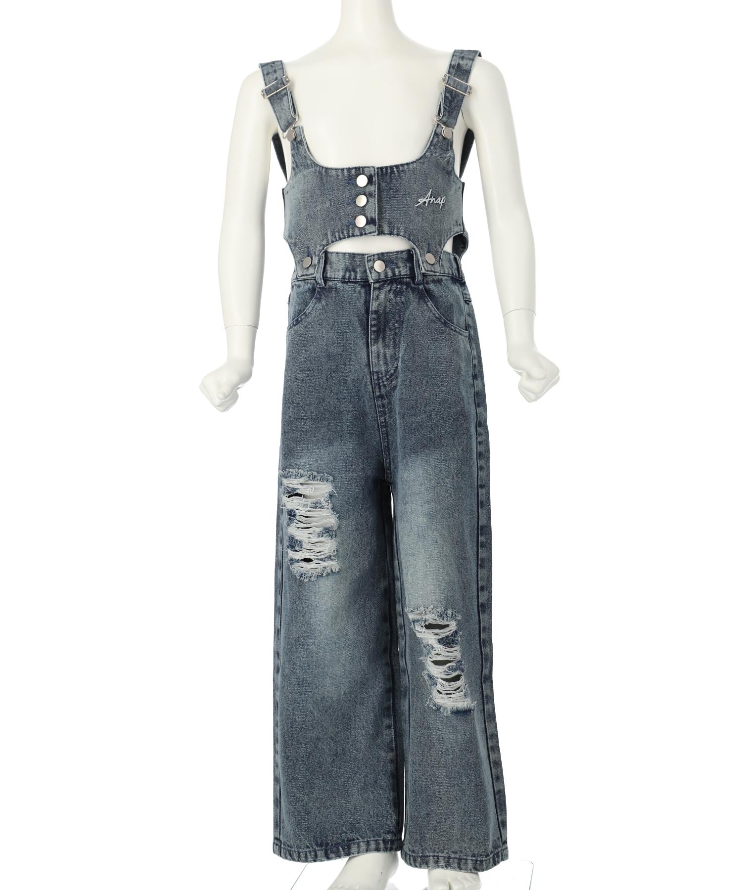 クラッシュデニム マルチWAY サロペット【ジュニアお揃い】 427-3416