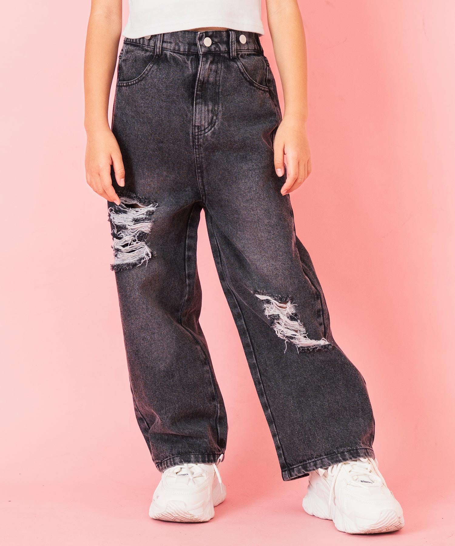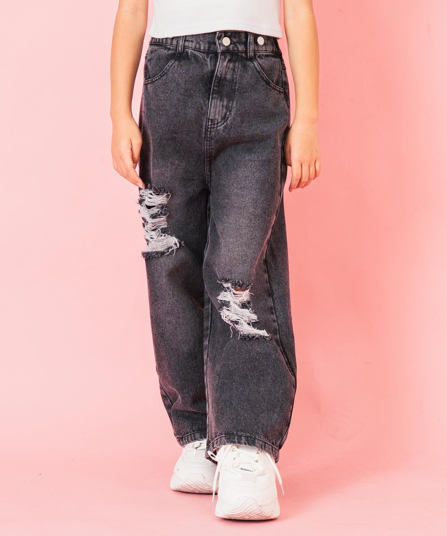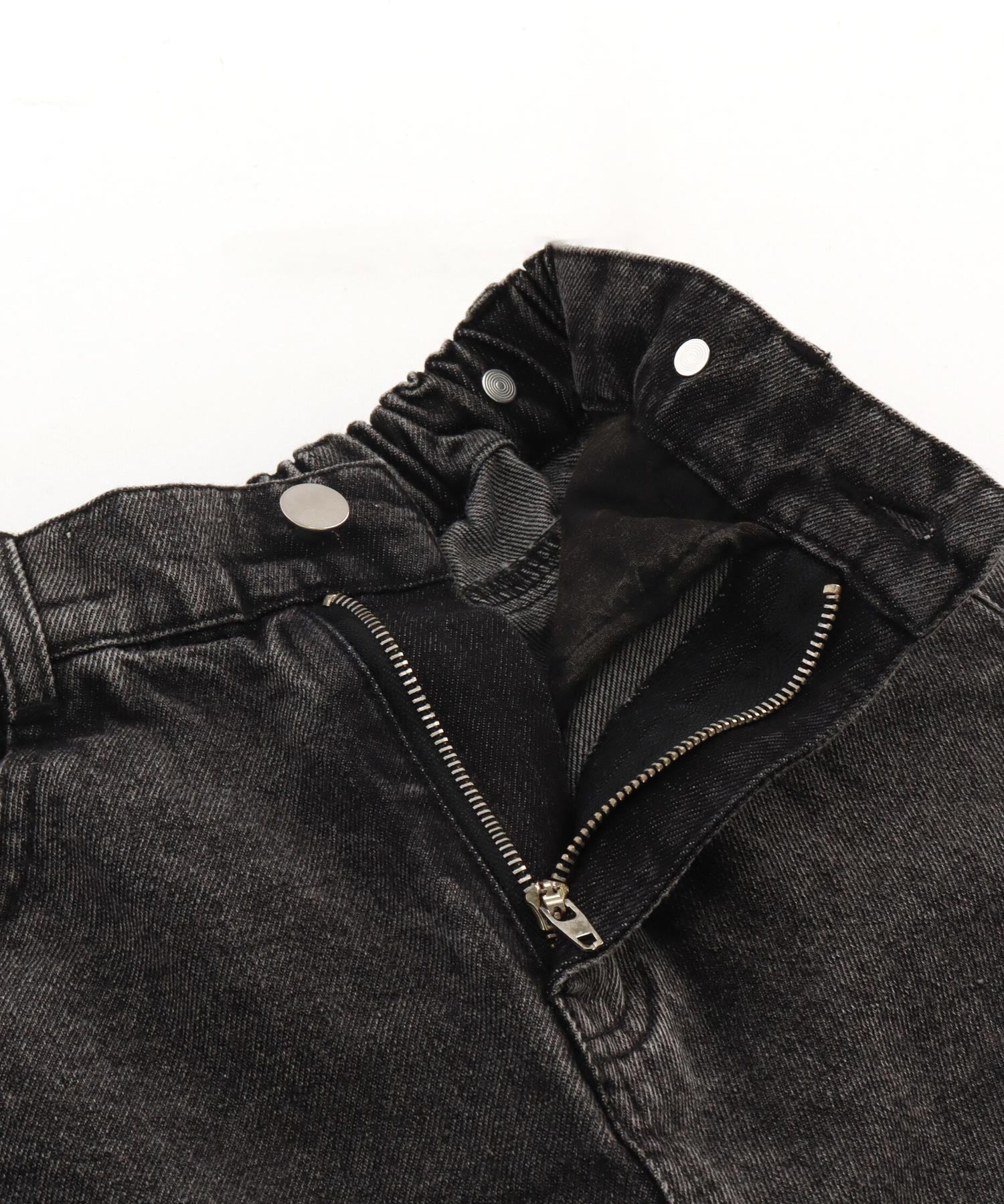 クラッシュ加工がアクセントとなり、シンプルなトップスと合わせるだけでおしゃれが完成します。