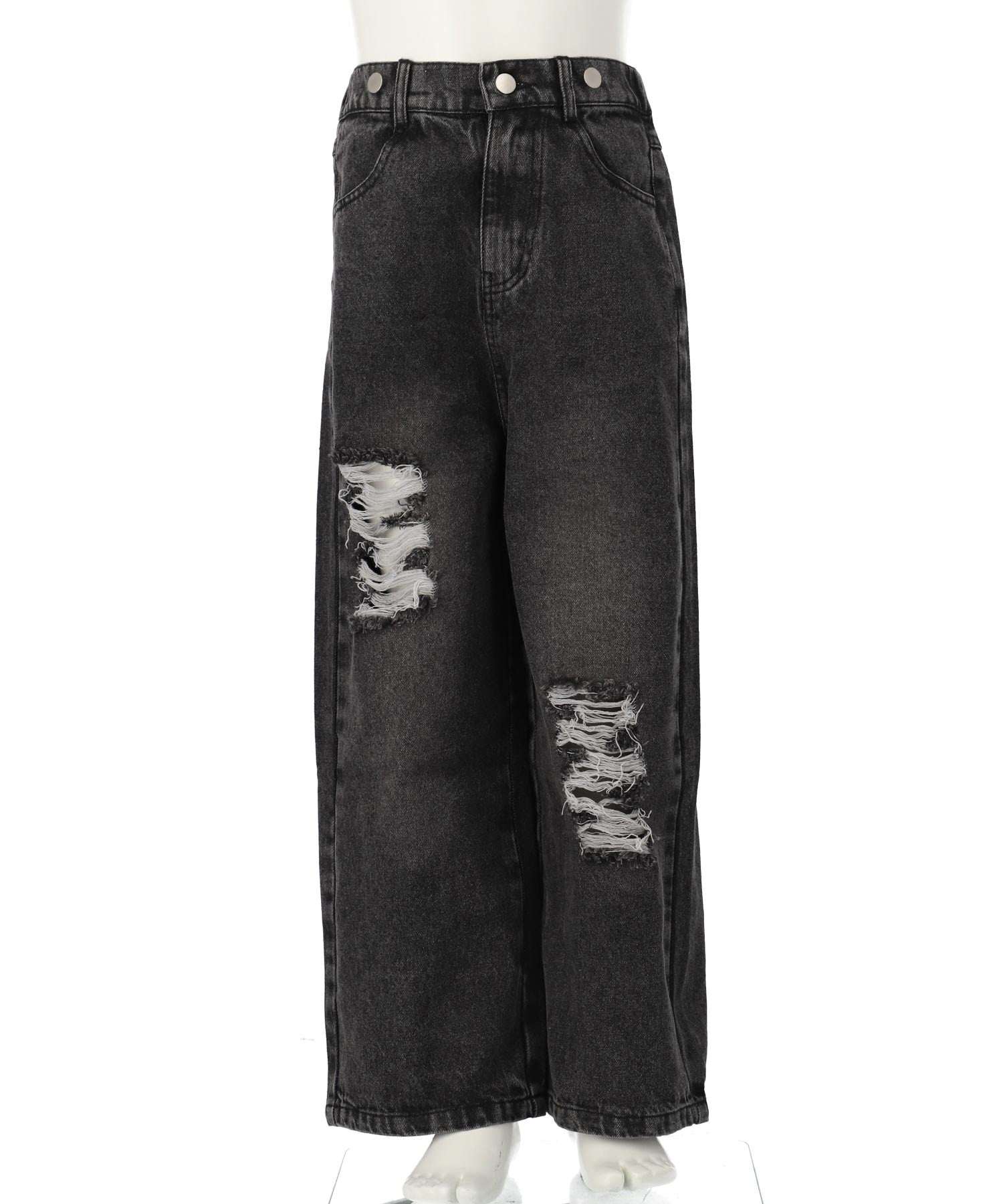 ※デニムの為、一点一点風合いやダメージの配置が画像と多少異なる場合がございます。予めご了承ください。