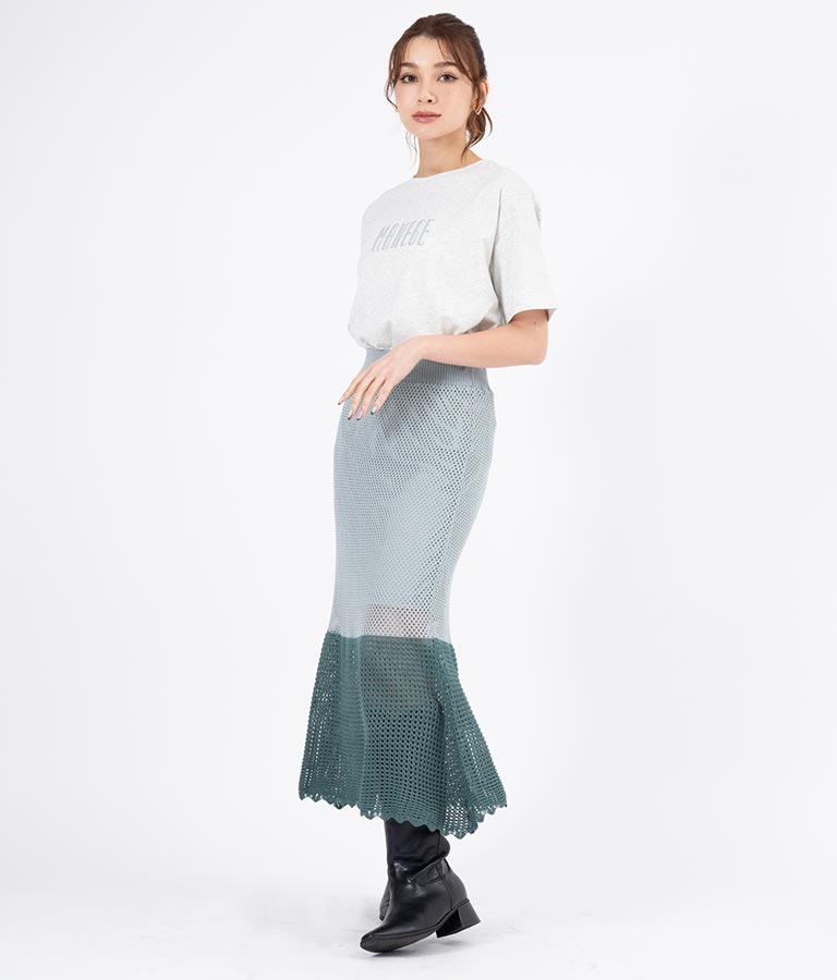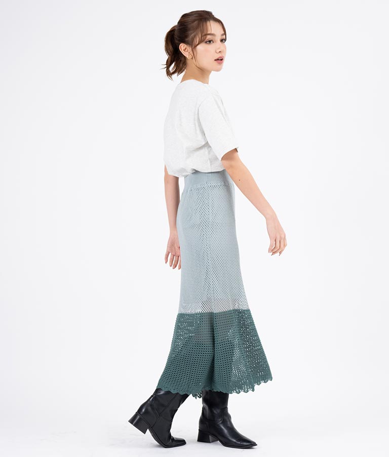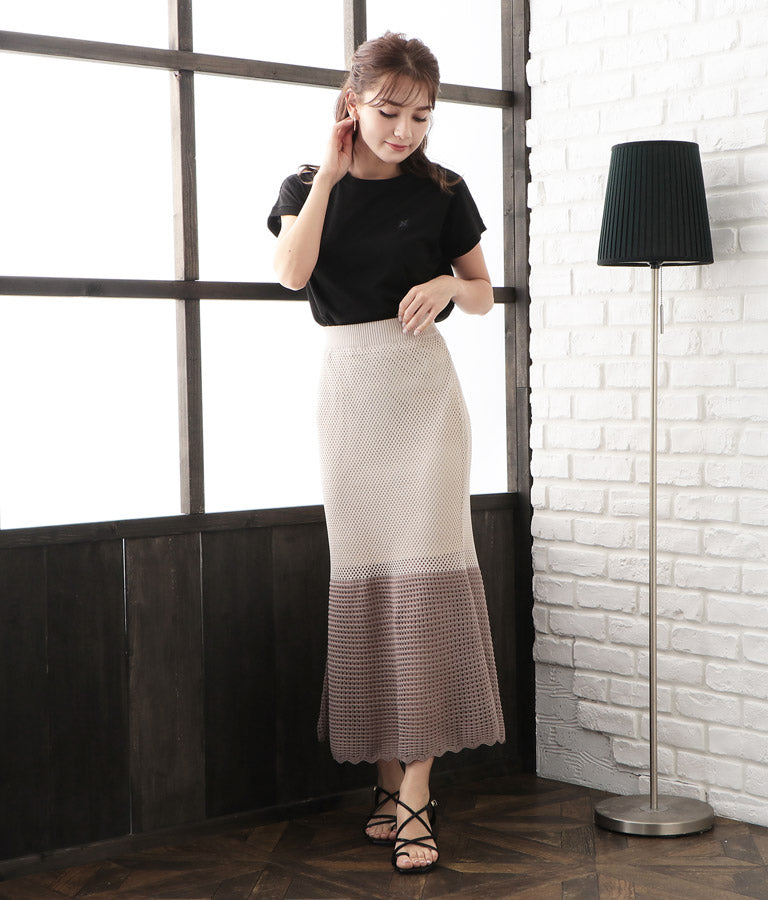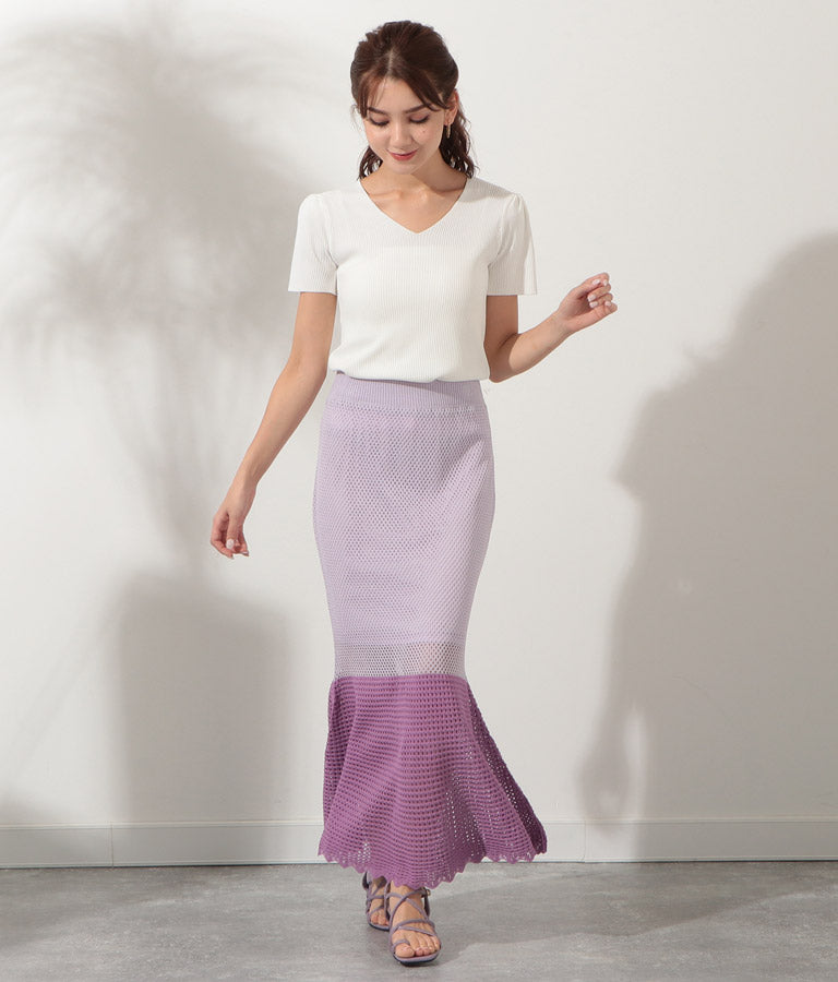 通気性抜群のサマーニットで暑い日も涼しく着用できるスカート。
