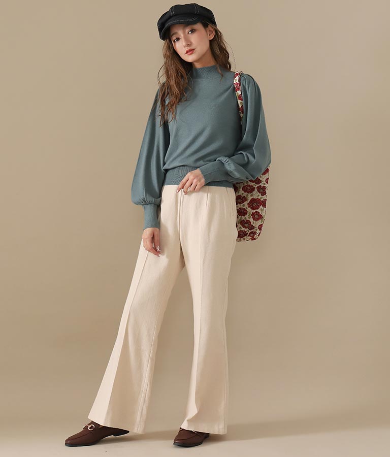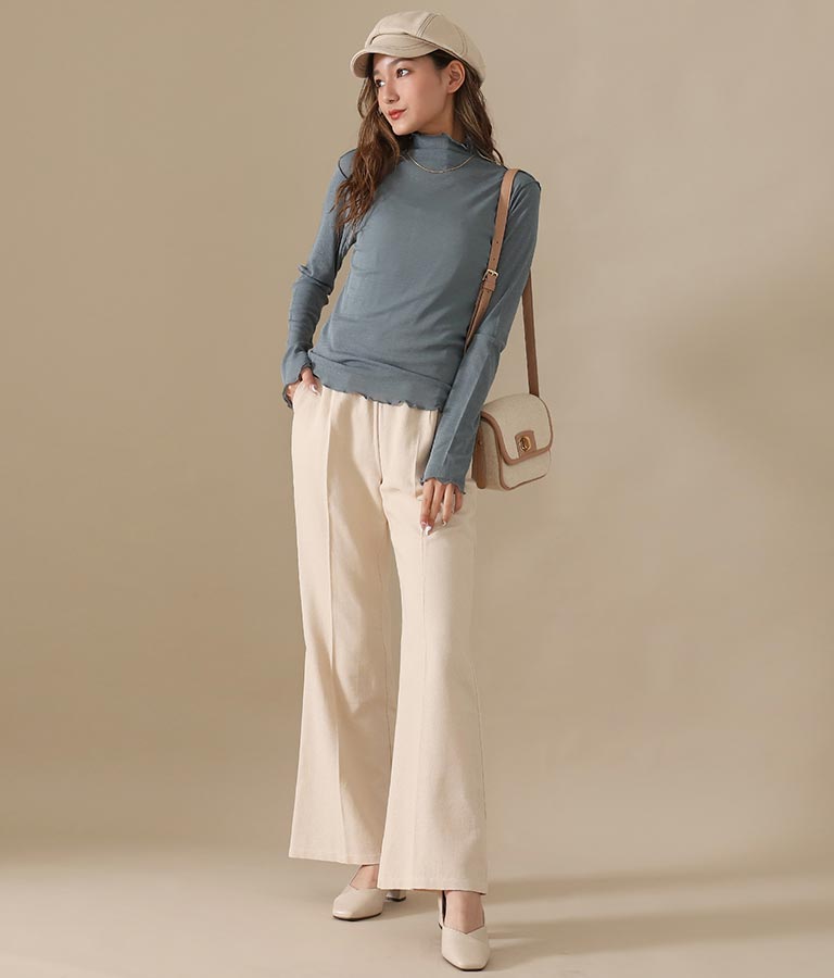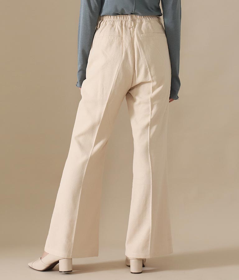 ウエストには後ろのみゴム入れをして、トップスイン時の裾をしっかりとホールド。